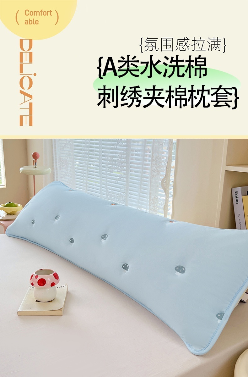 商品名称:(总)梦舒羽 2025新款水洗棉刺绣双人夹棉枕套加厚学生情侣1.5m枕头套1.8米枕芯套