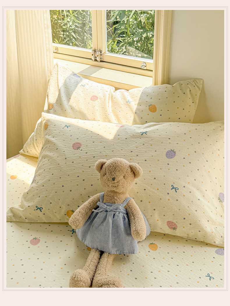 商品名称:多品家纺 2025新款超柔云感双层纱单枕套 五彩草莓