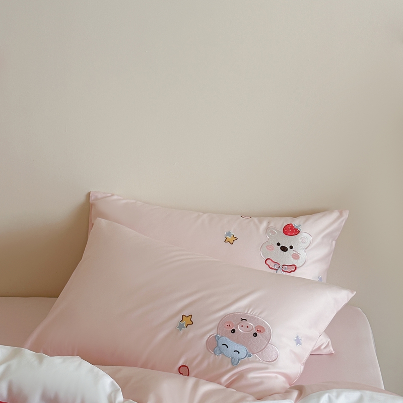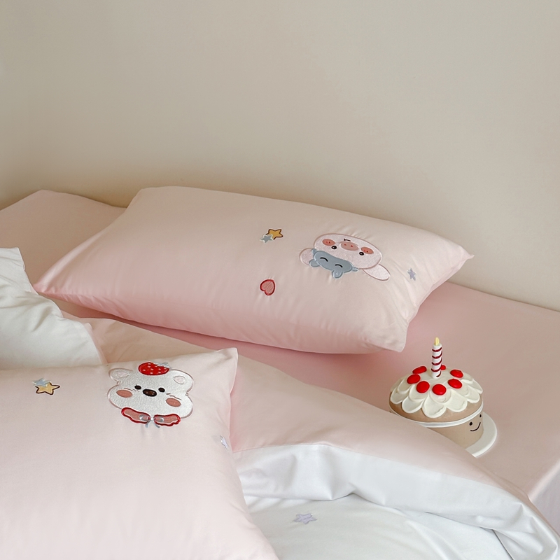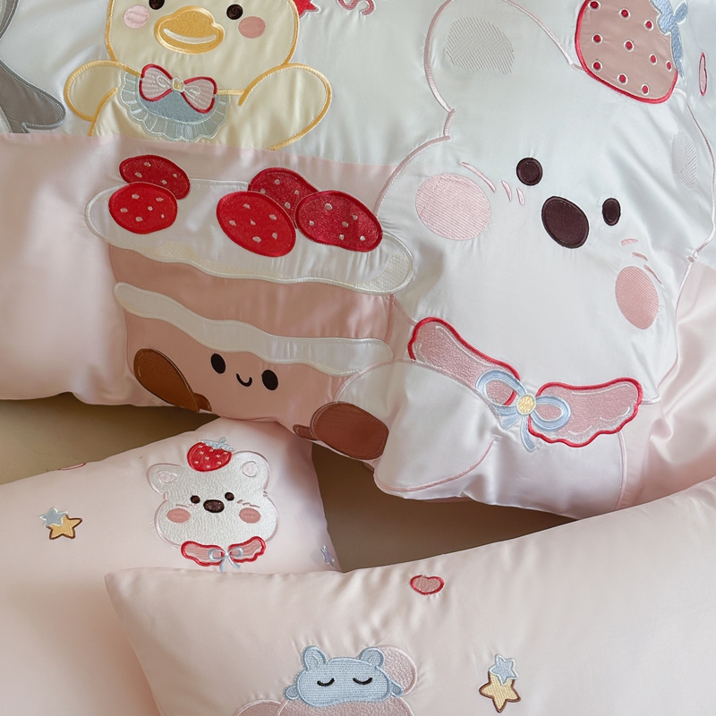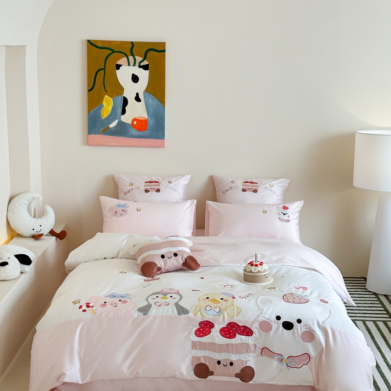 (总)紫桐2025新款长绒棉贴布绣四件套,黄油小熊 海盐蓝,黄油小熊 奶油黄,黄油小熊 芝芝粉