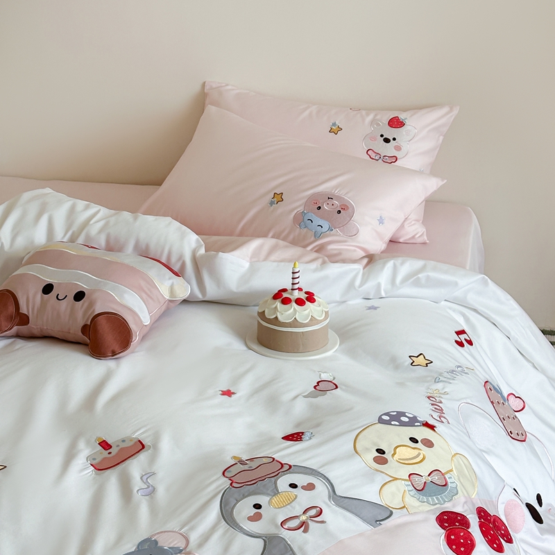 (总)紫桐 Lila lndus 2025新款双层纱贴布绣四件套,小考拉,小雪人,小熊,小企鹅,小鳄鱼,小狐狸
