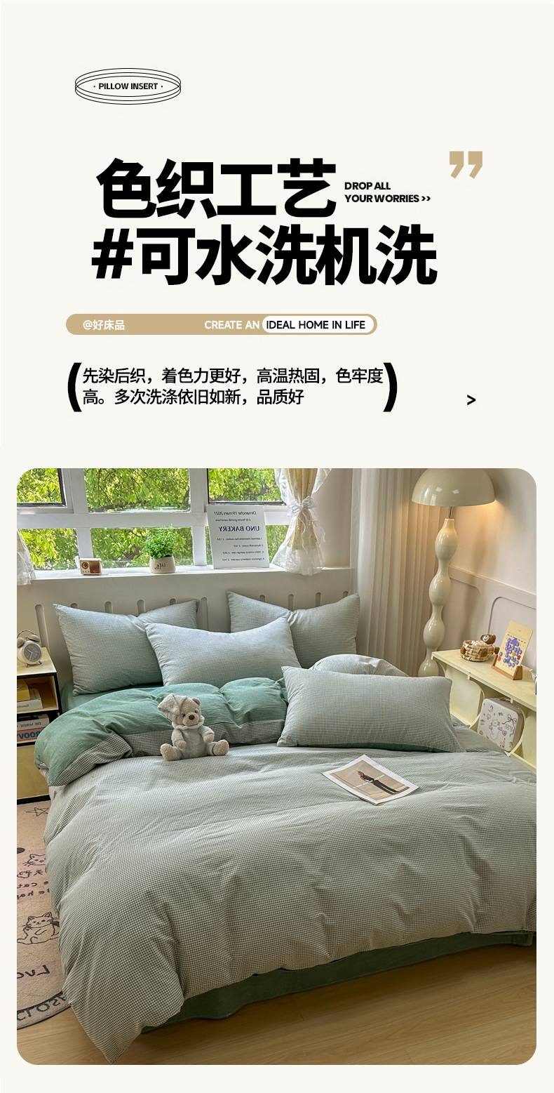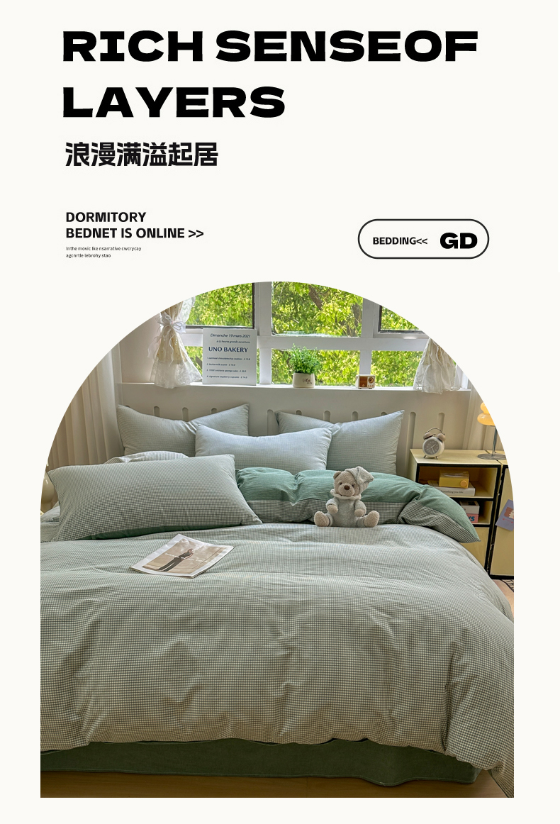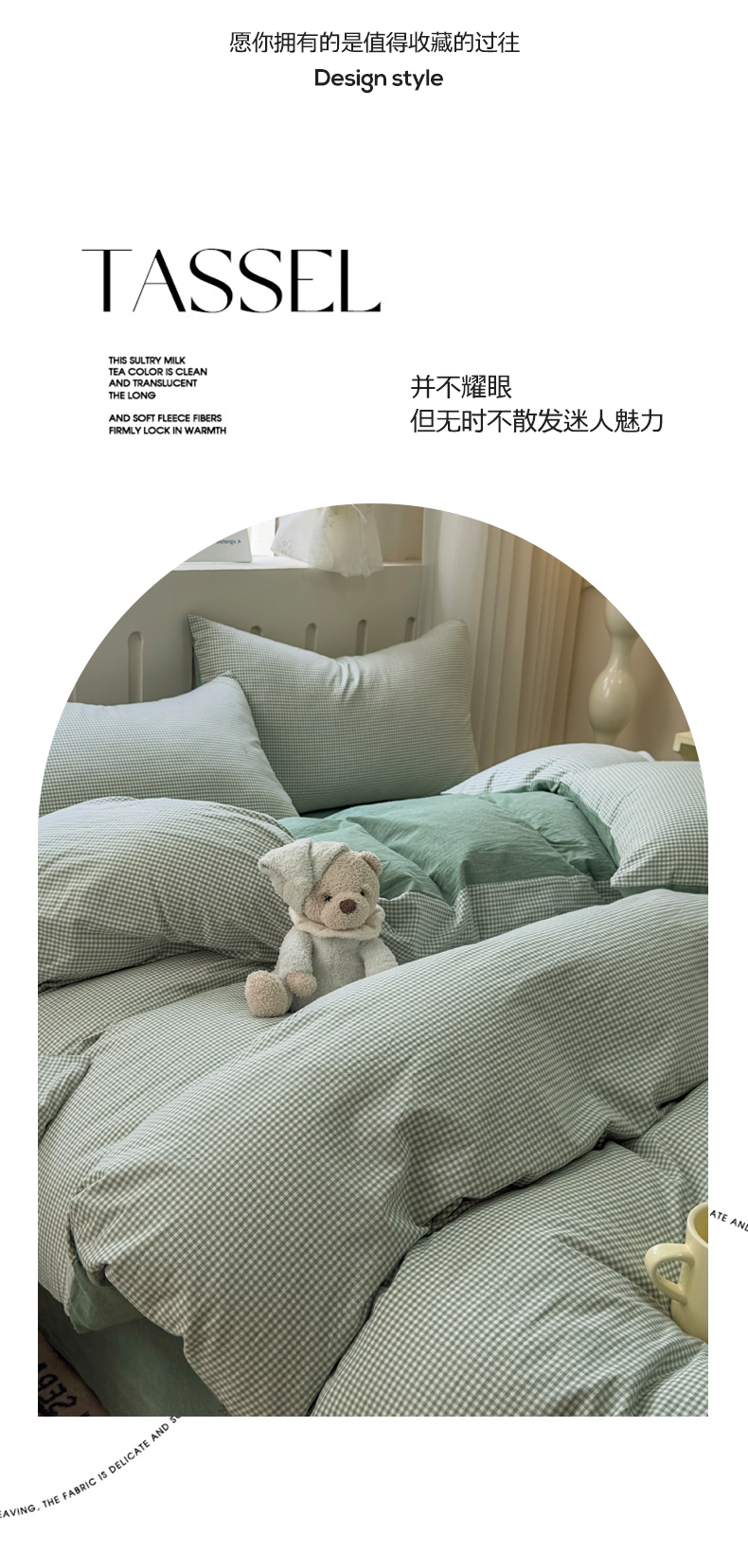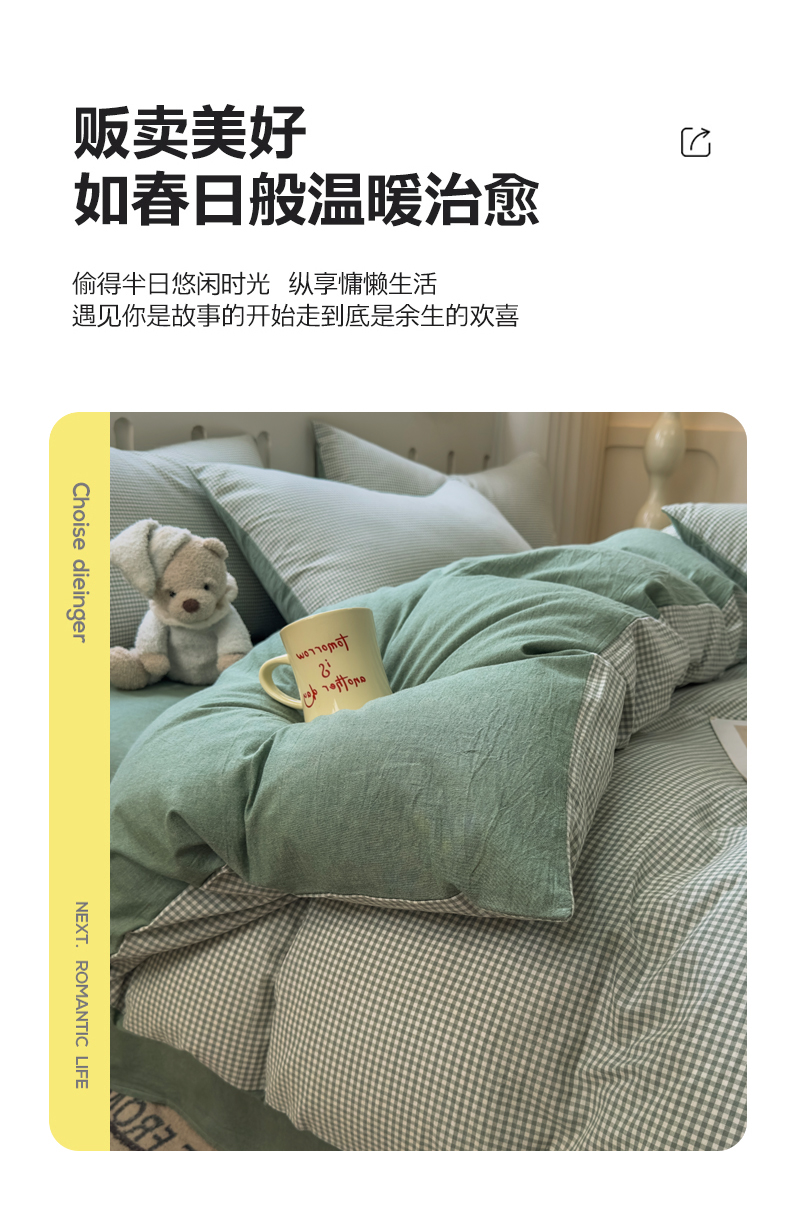 当前位置: 91家纺网 > 商品网购 > 床品套件 > 四件套 > 水洗棉四件套 > 晚依家纺 2025新款A类全棉色织水洗棉四件套纯棉格子纯色被套学生宿舍三件套定制定做 密格-草绿