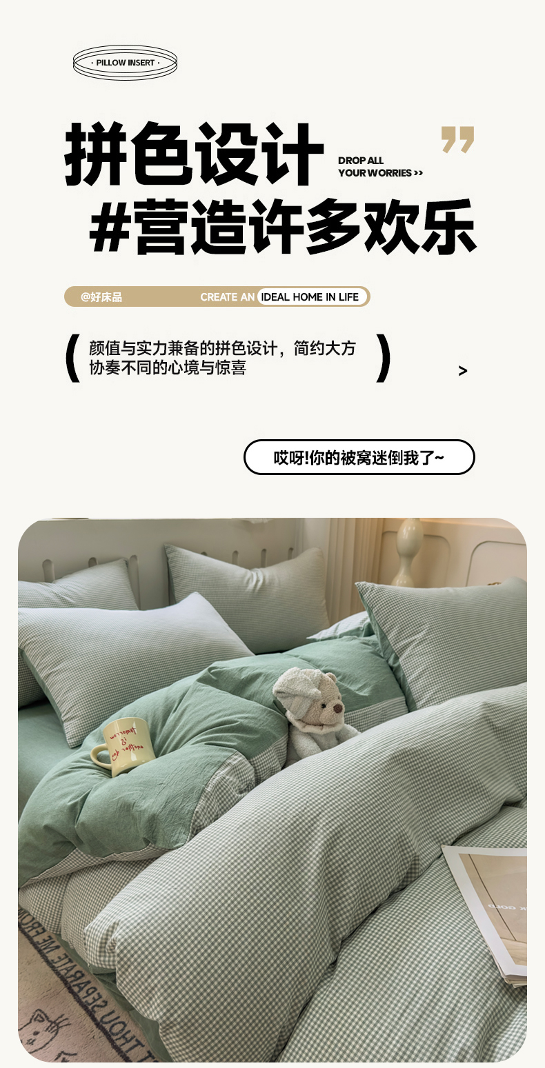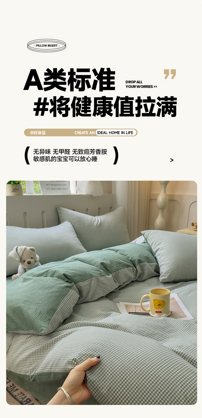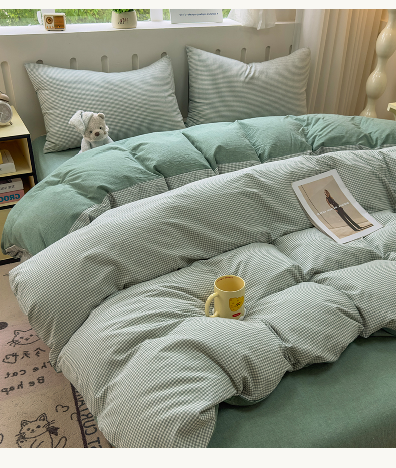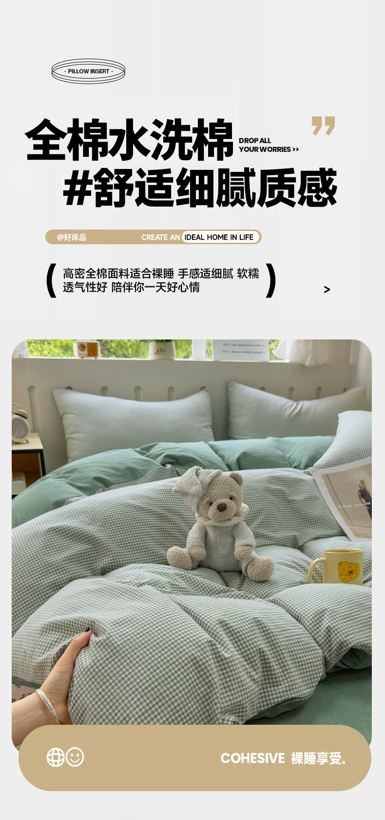 当前位置: 91家纺网 > 商品网购 > 床品套件 > 四件套 > 水洗棉四件套 > 晚依家纺 2025新款A类全棉色织水洗棉四件套纯棉格子纯色被套学生宿舍三件套定制定做 密格-草绿