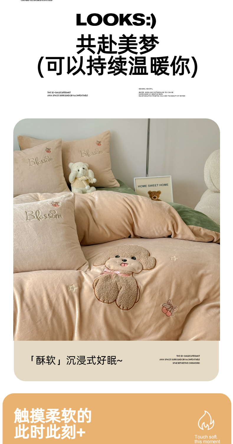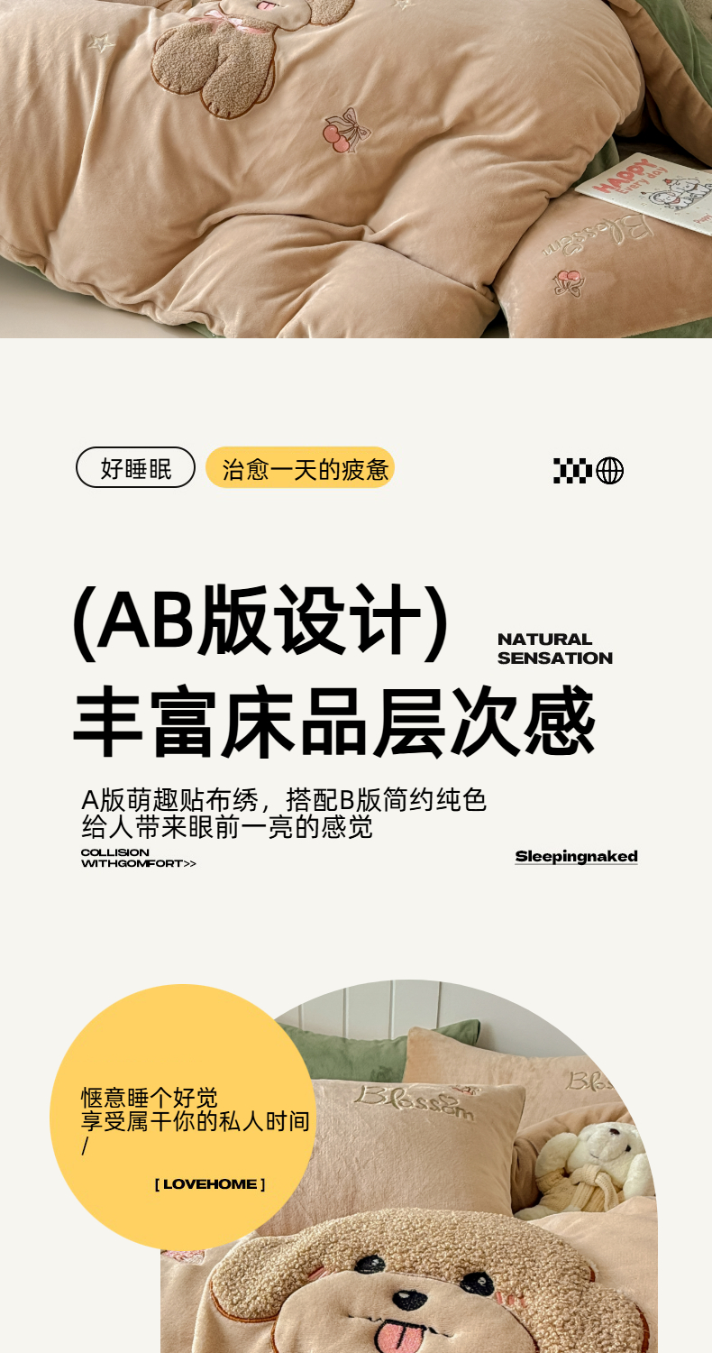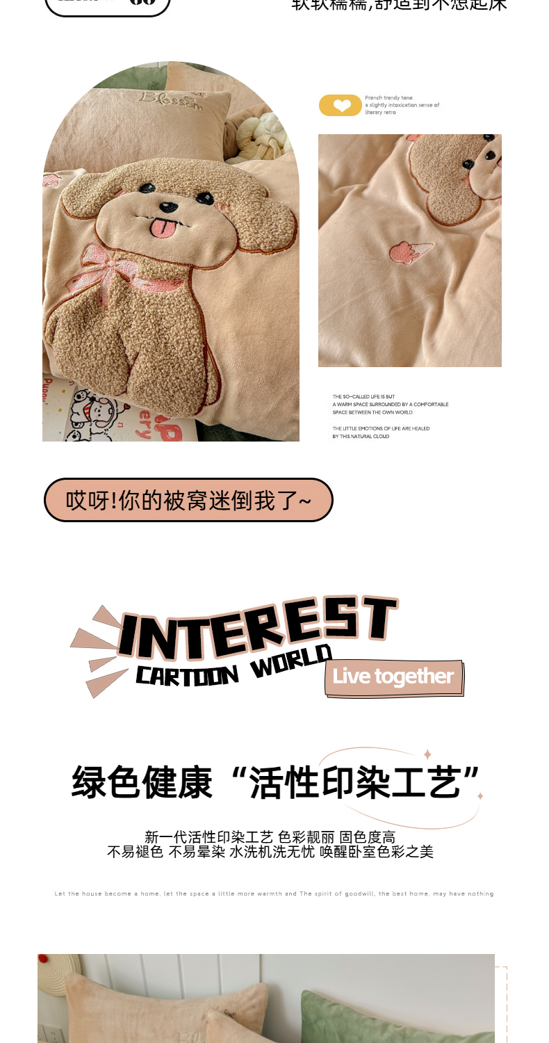 (总)莱凯家纺 2025新款贴布绣牛奶绒四件套,开心狗(白+橘),开心狗(卡其+绿),猫咪乐园(粉),猫咪乐园(灰),晚安羊驼(橘+卡其),晚安羊驼(绿+灰)