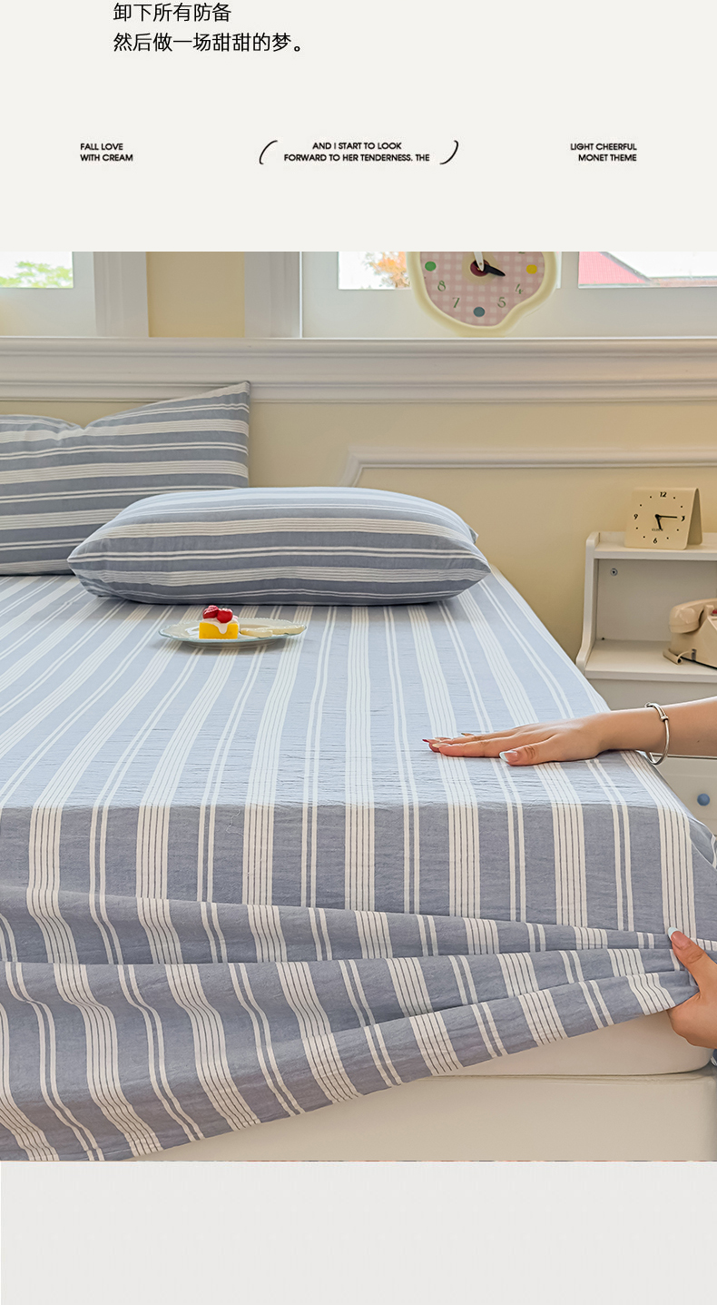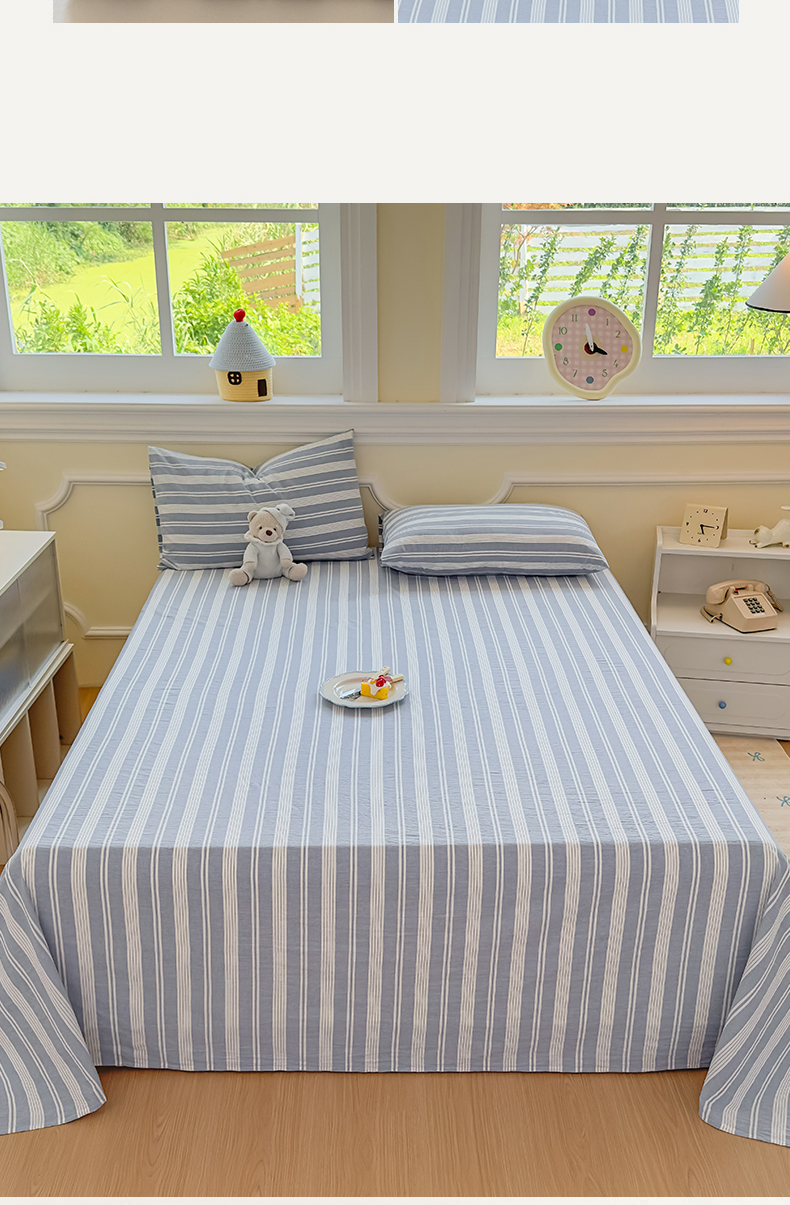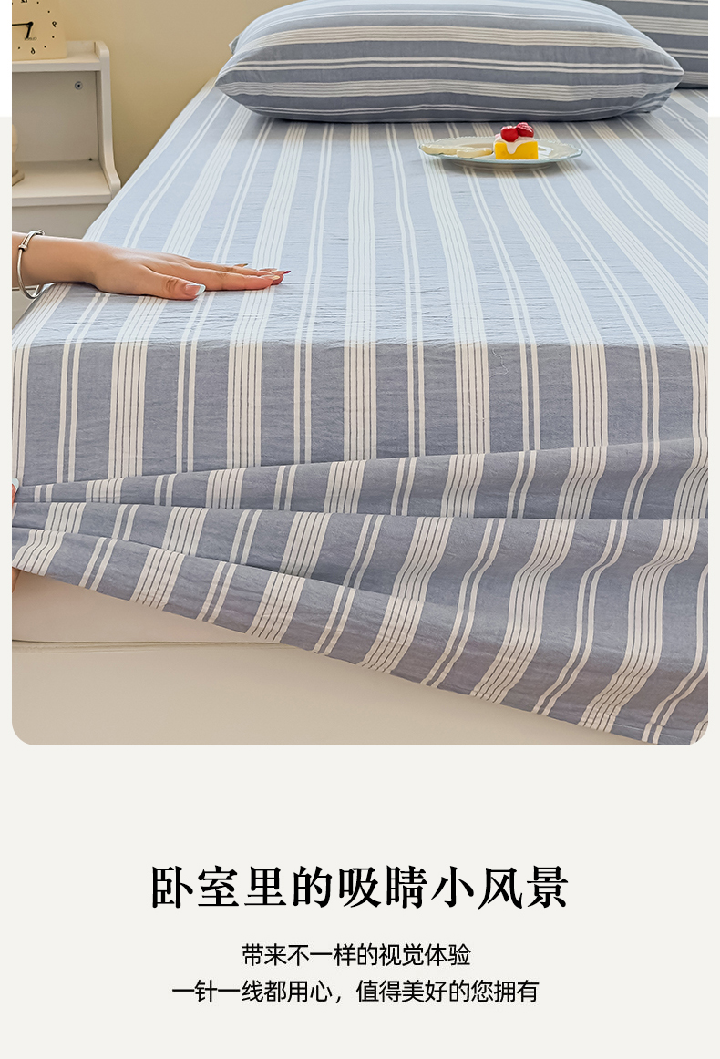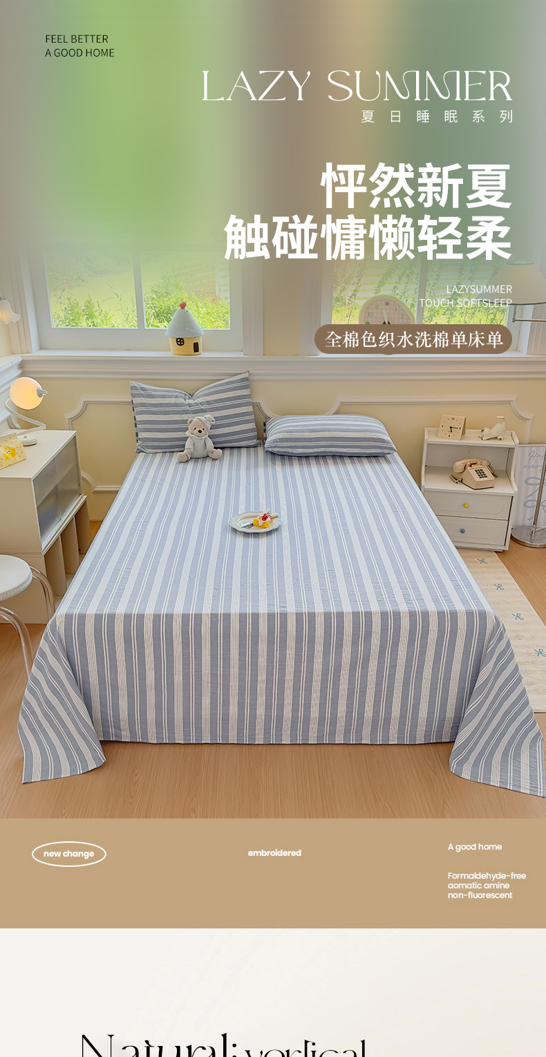 菡宝 2025新款全棉纯棉色织水洗棉单床单 海盐蓝条