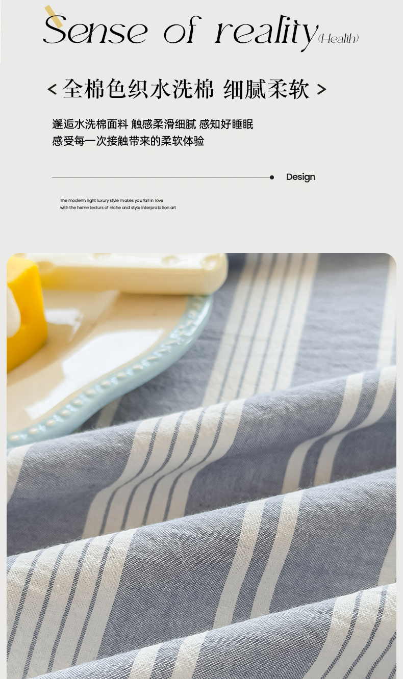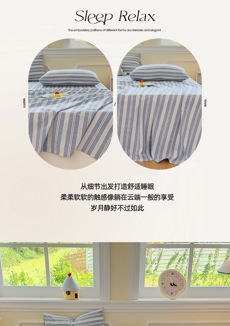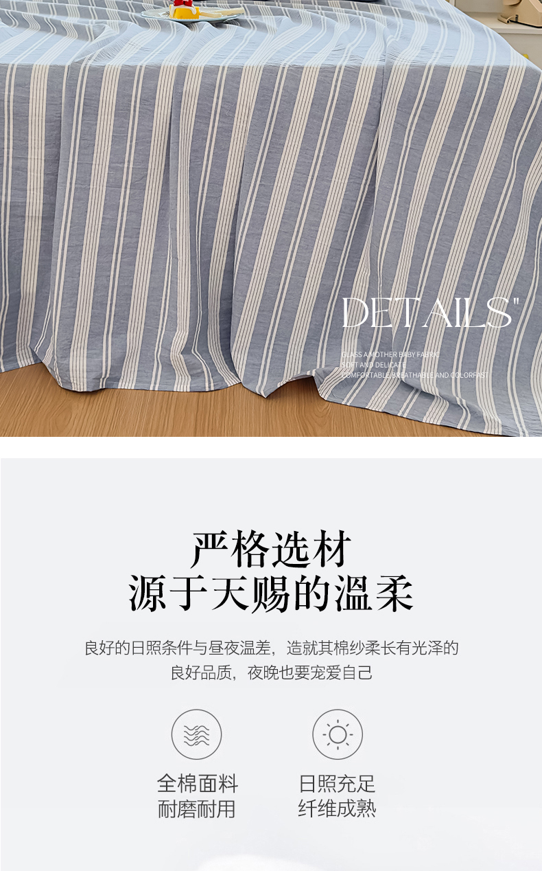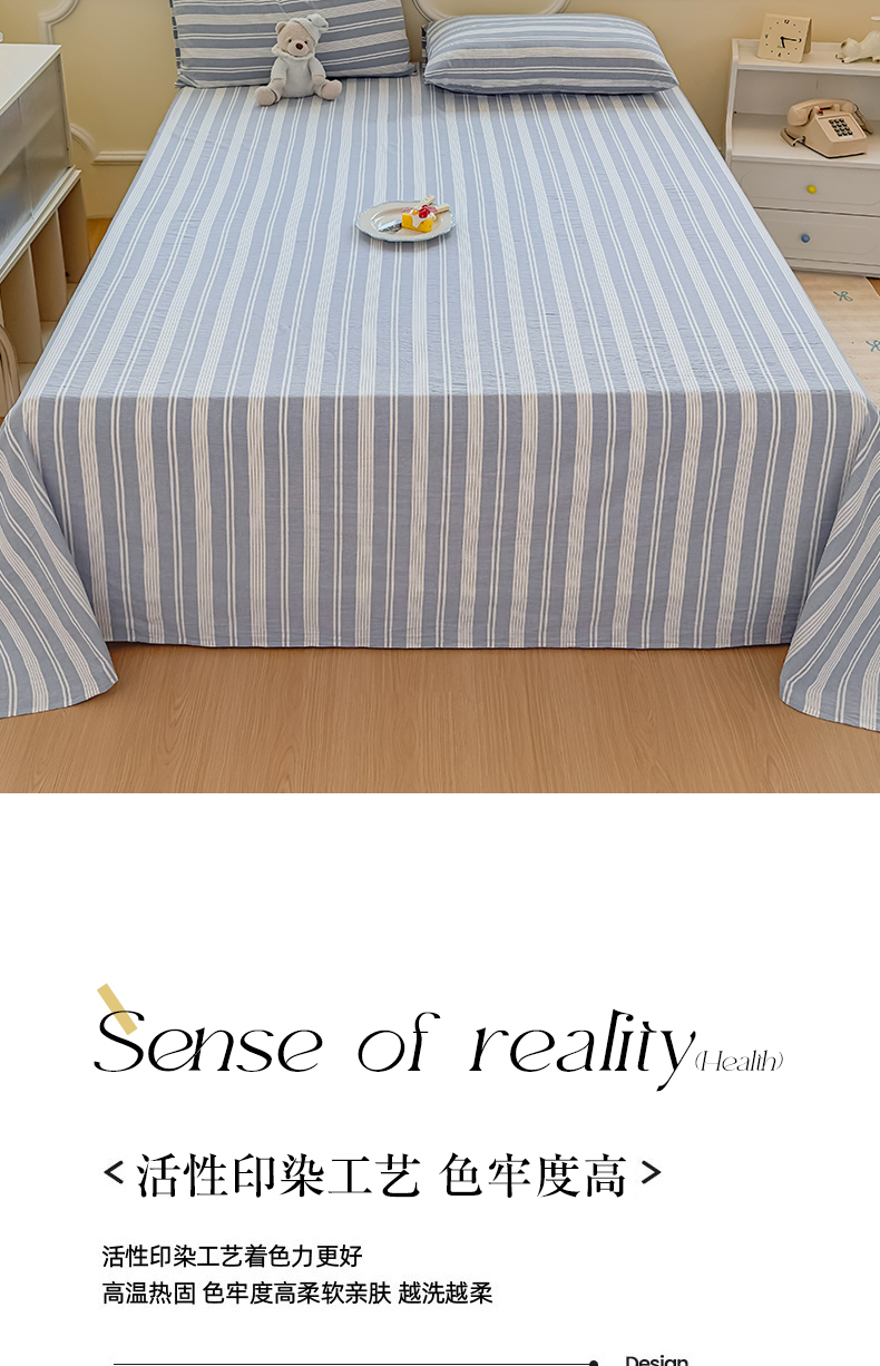 商品名称:菡宝 2025新款全棉纯棉色织水洗棉单床单 海盐蓝条