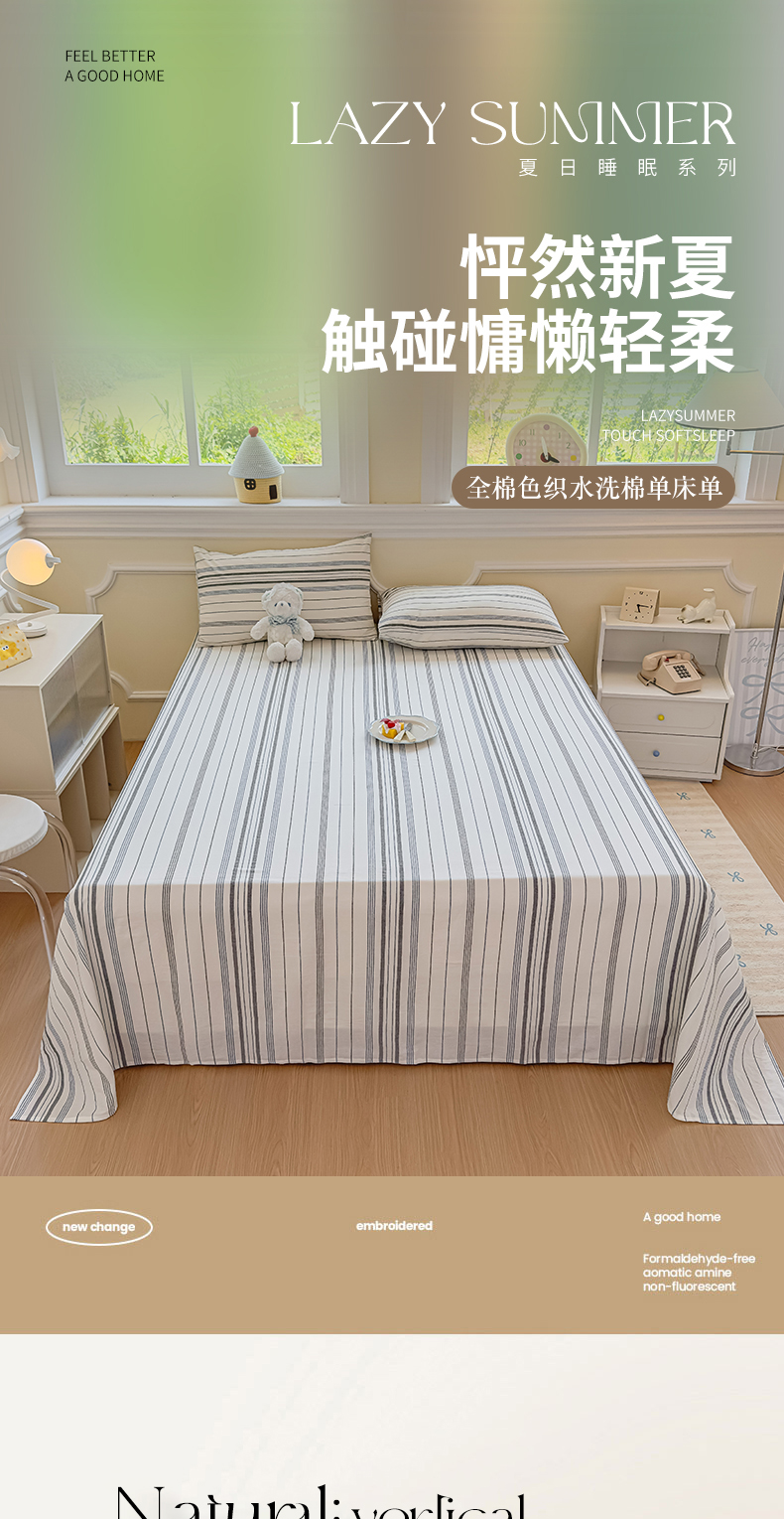 菡宝 2025新款全棉纯棉色织水洗棉单床单 漫幽灰蓝条