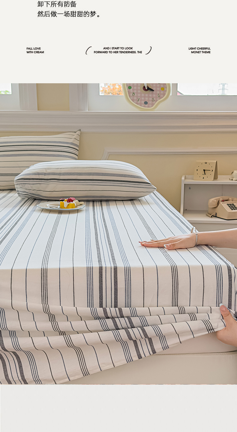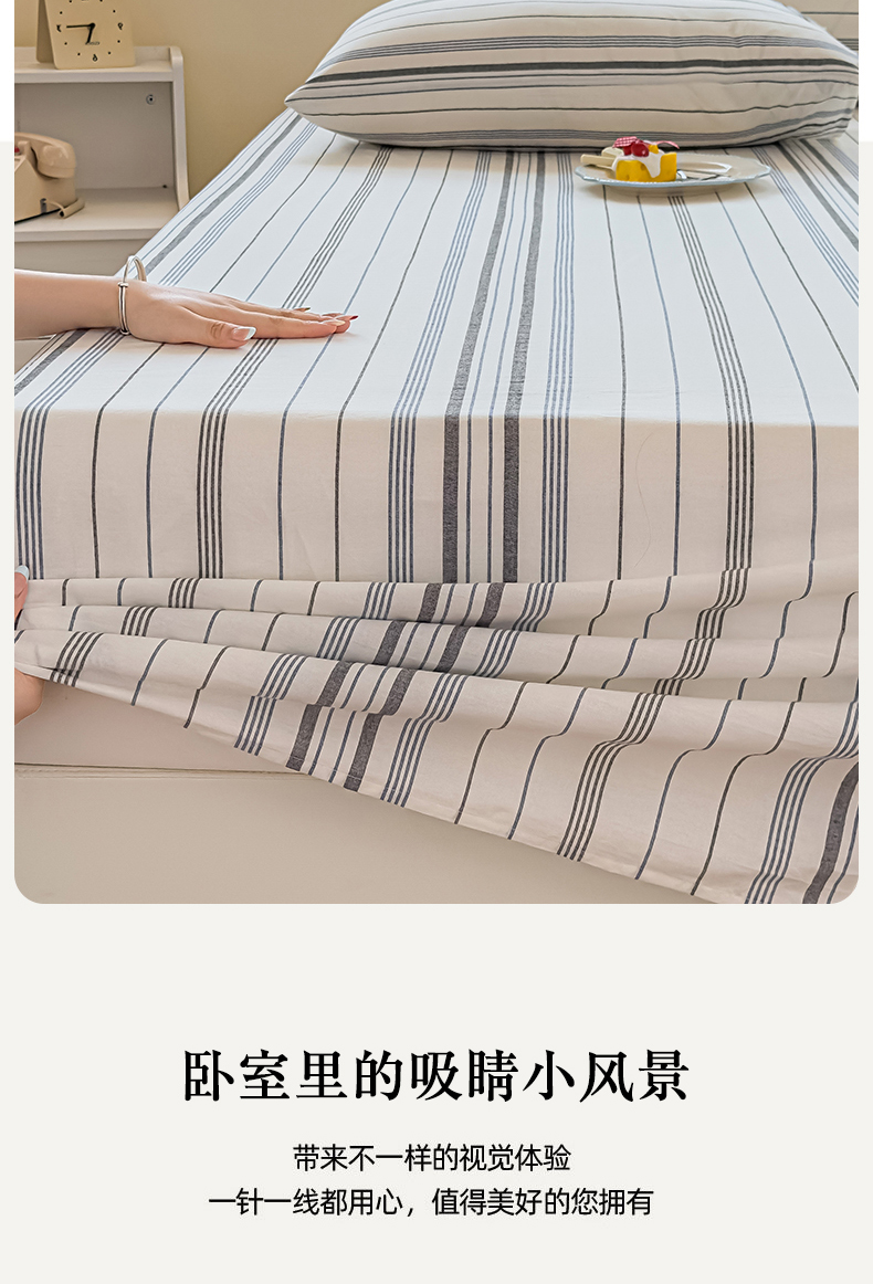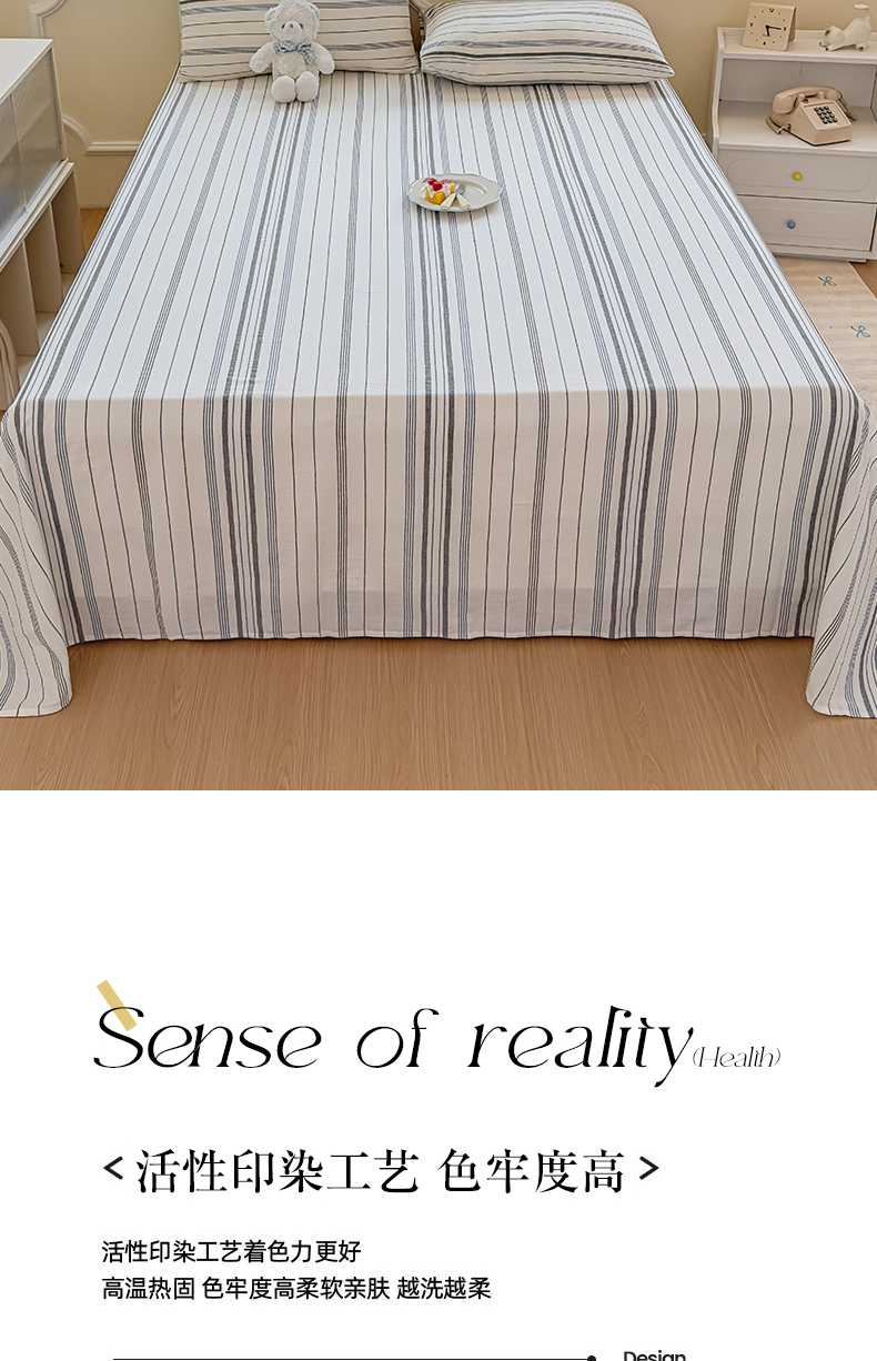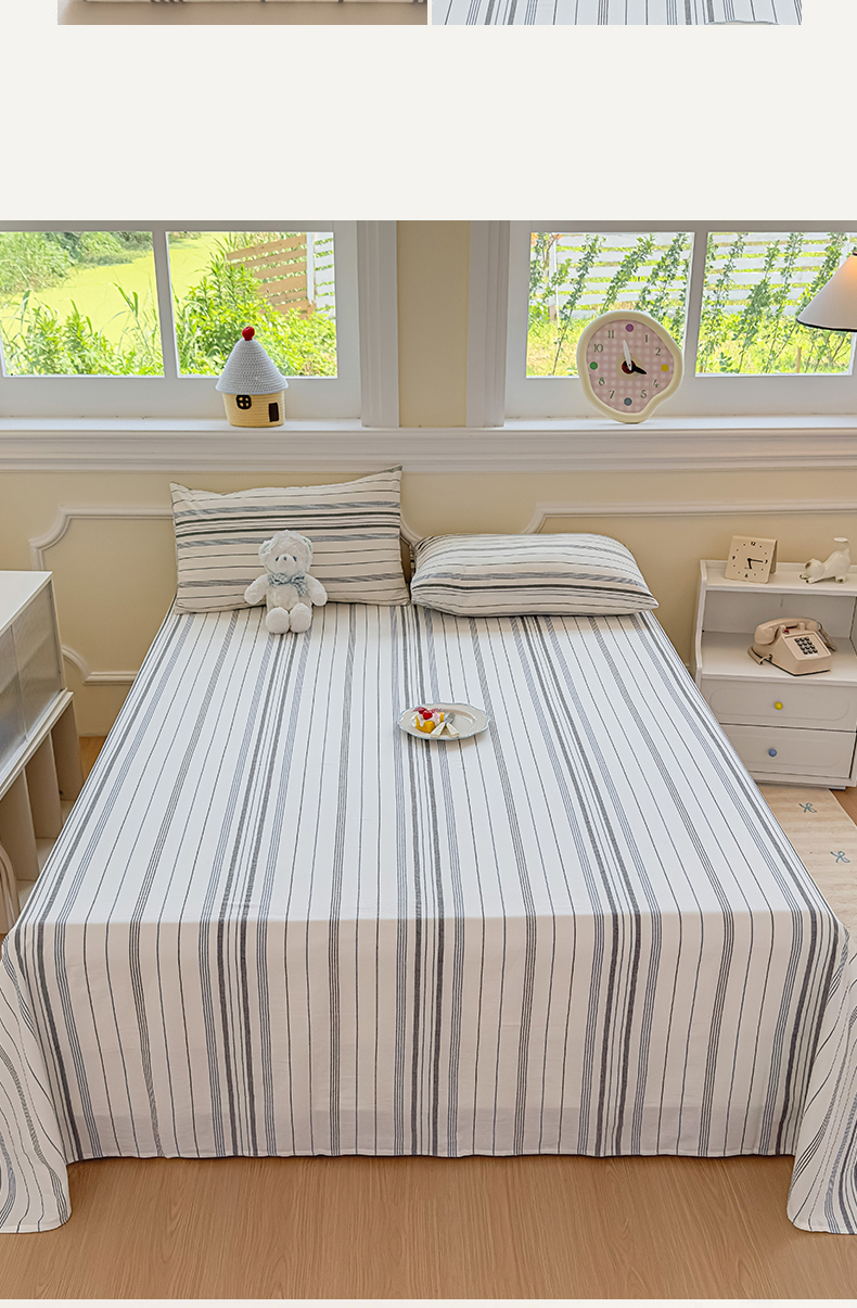 商品名称:菡宝 2025新款全棉纯棉色织水洗棉单床单 漫幽灰蓝条