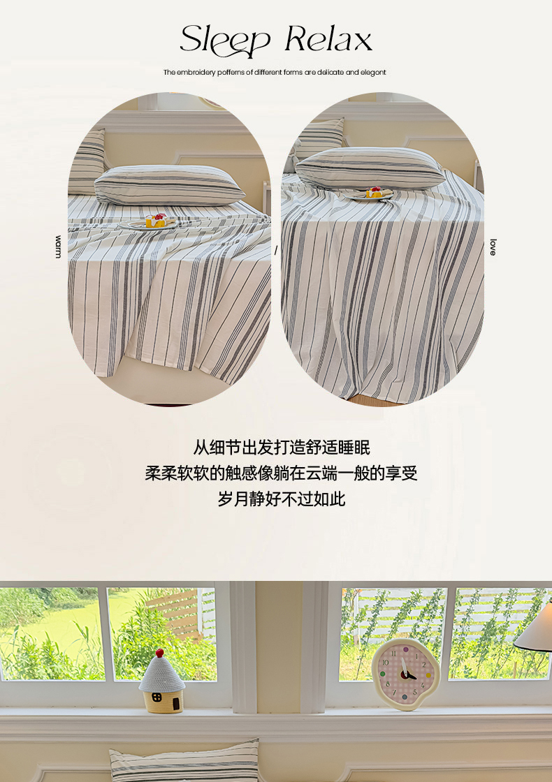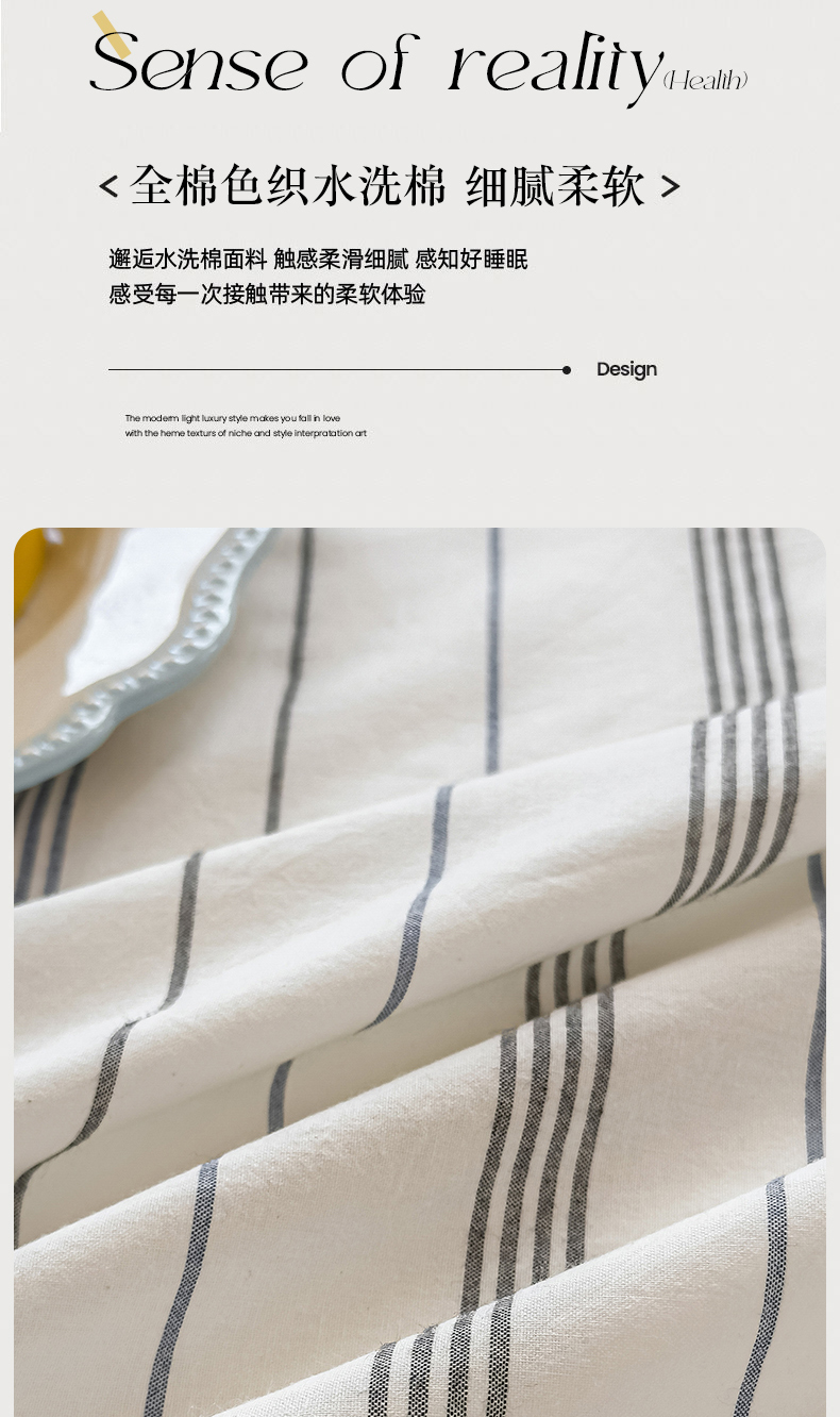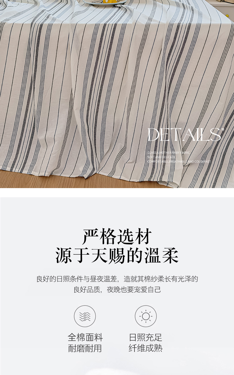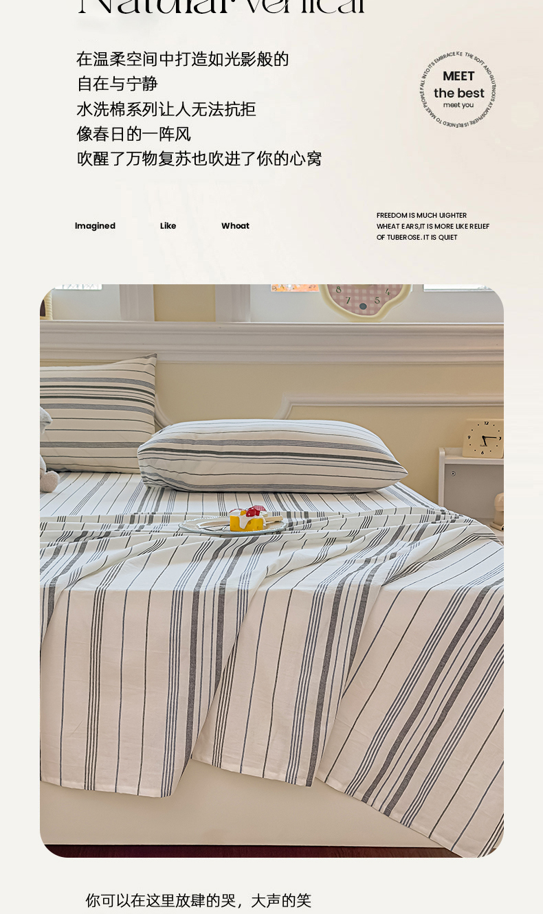 商品名称:菡宝 2025新款全棉纯棉色织水洗棉单床单 漫幽灰蓝条