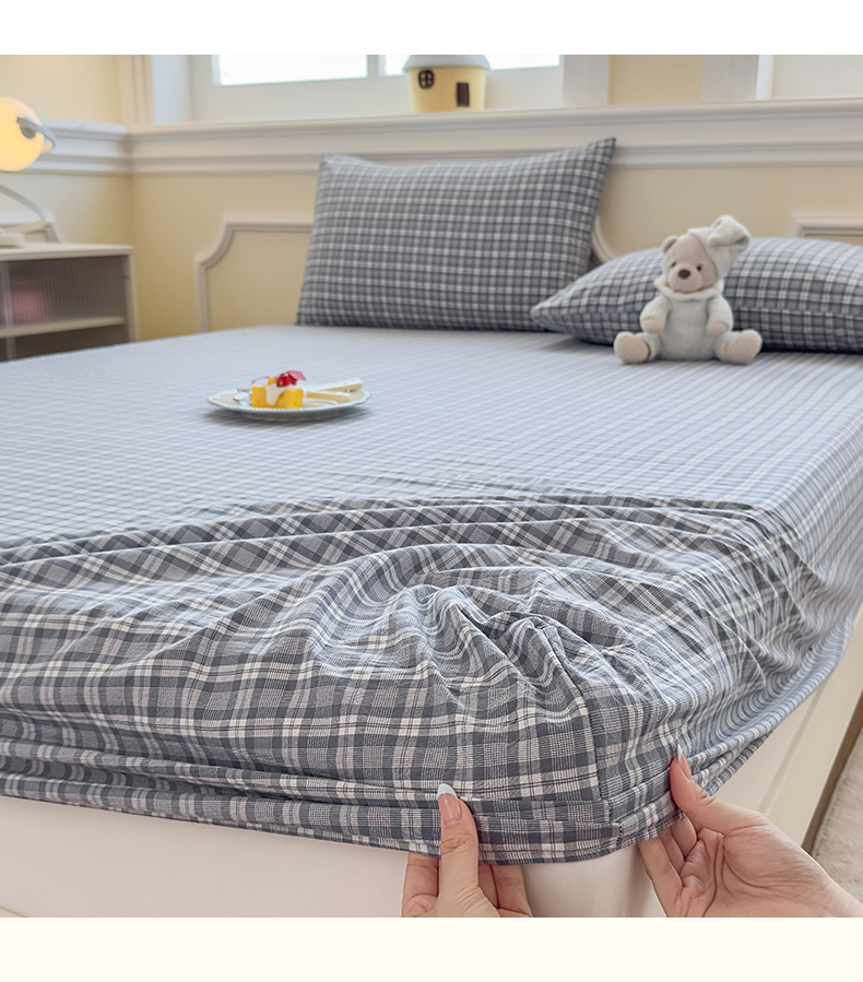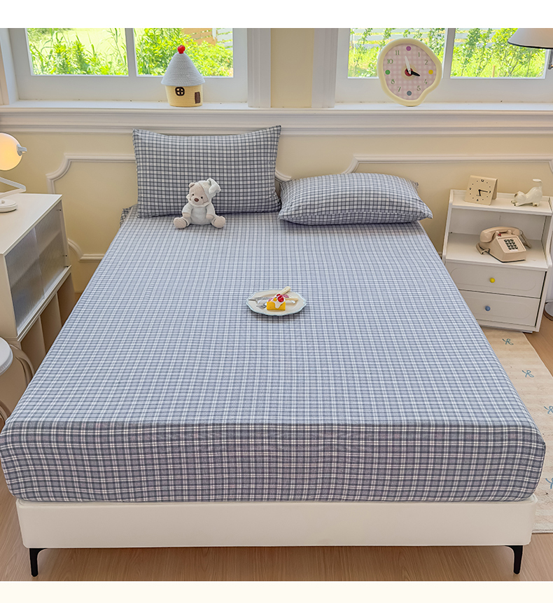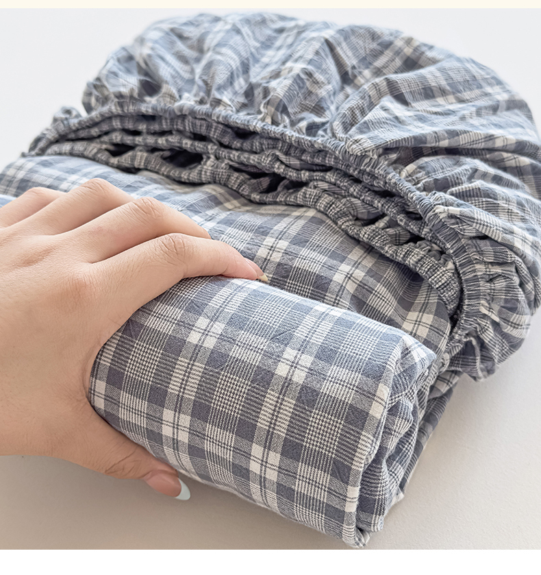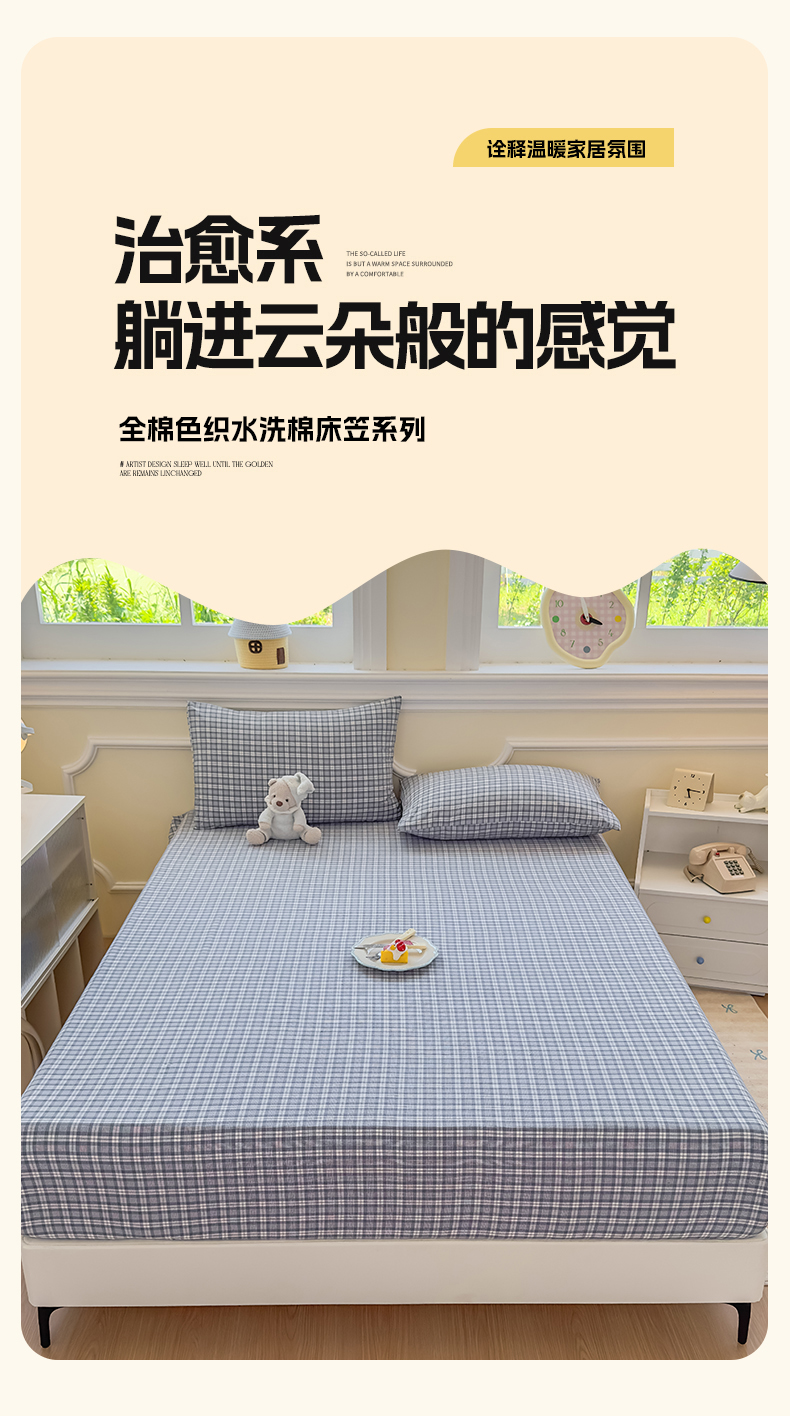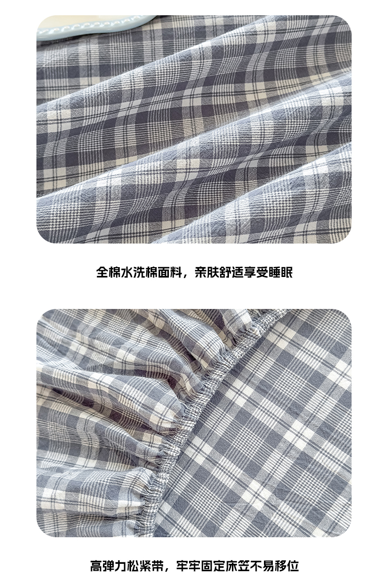 菡宝 2025新款全棉纯棉色织水洗棉单单床笠 蓝格调