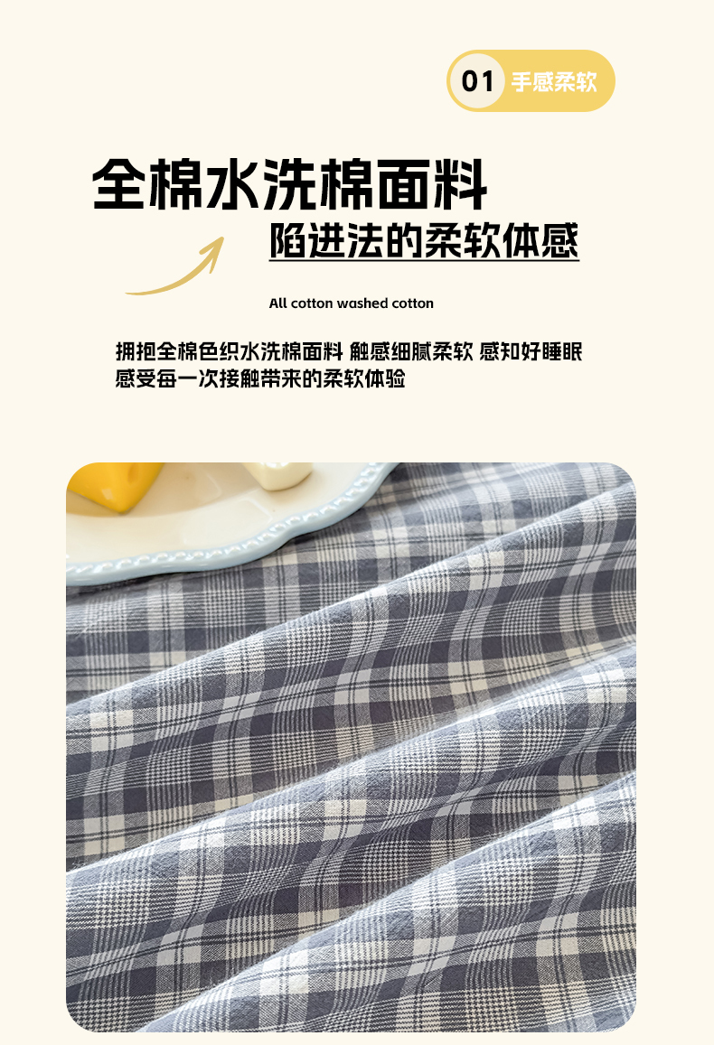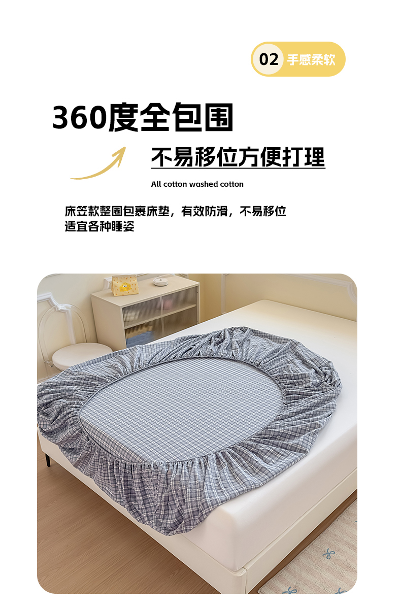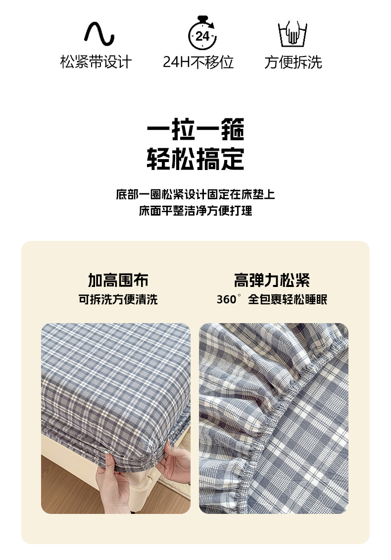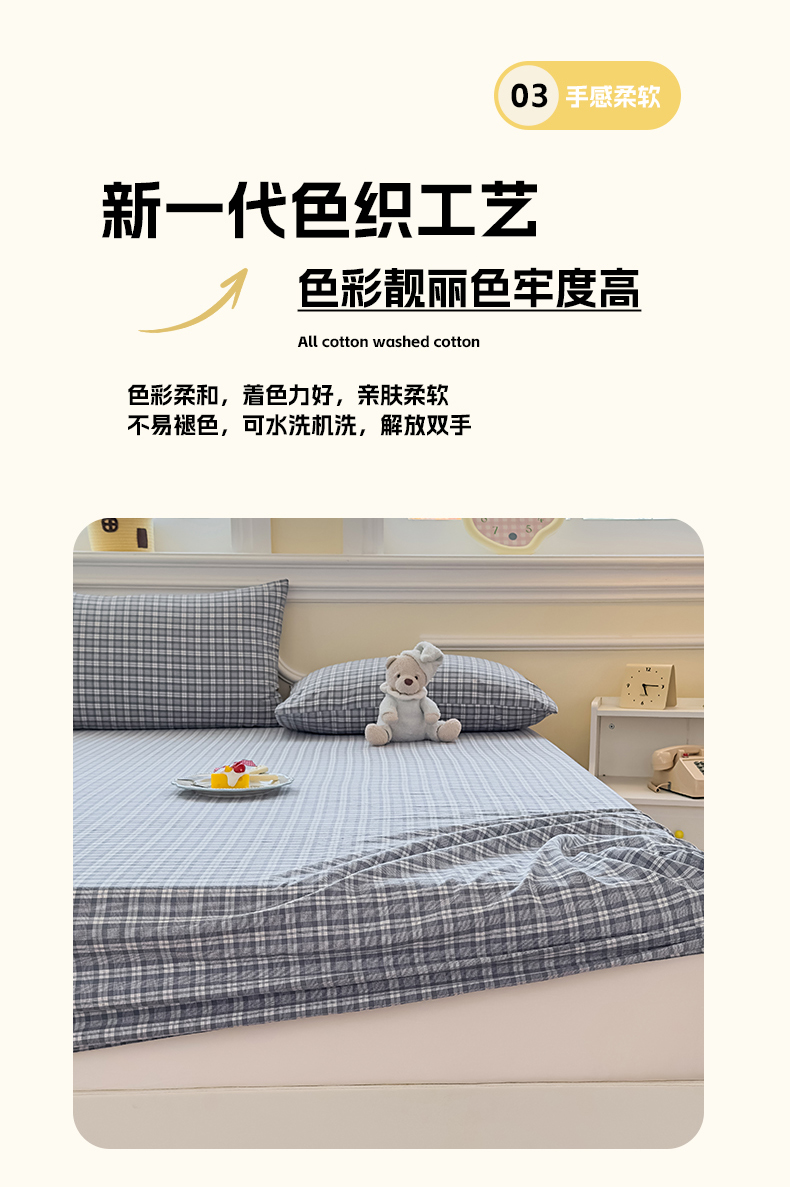 • 91家纺网 家纺一手货源 找家纺 菡宝 2025新款全棉纯棉色织水洗棉单单床笠 蓝格调