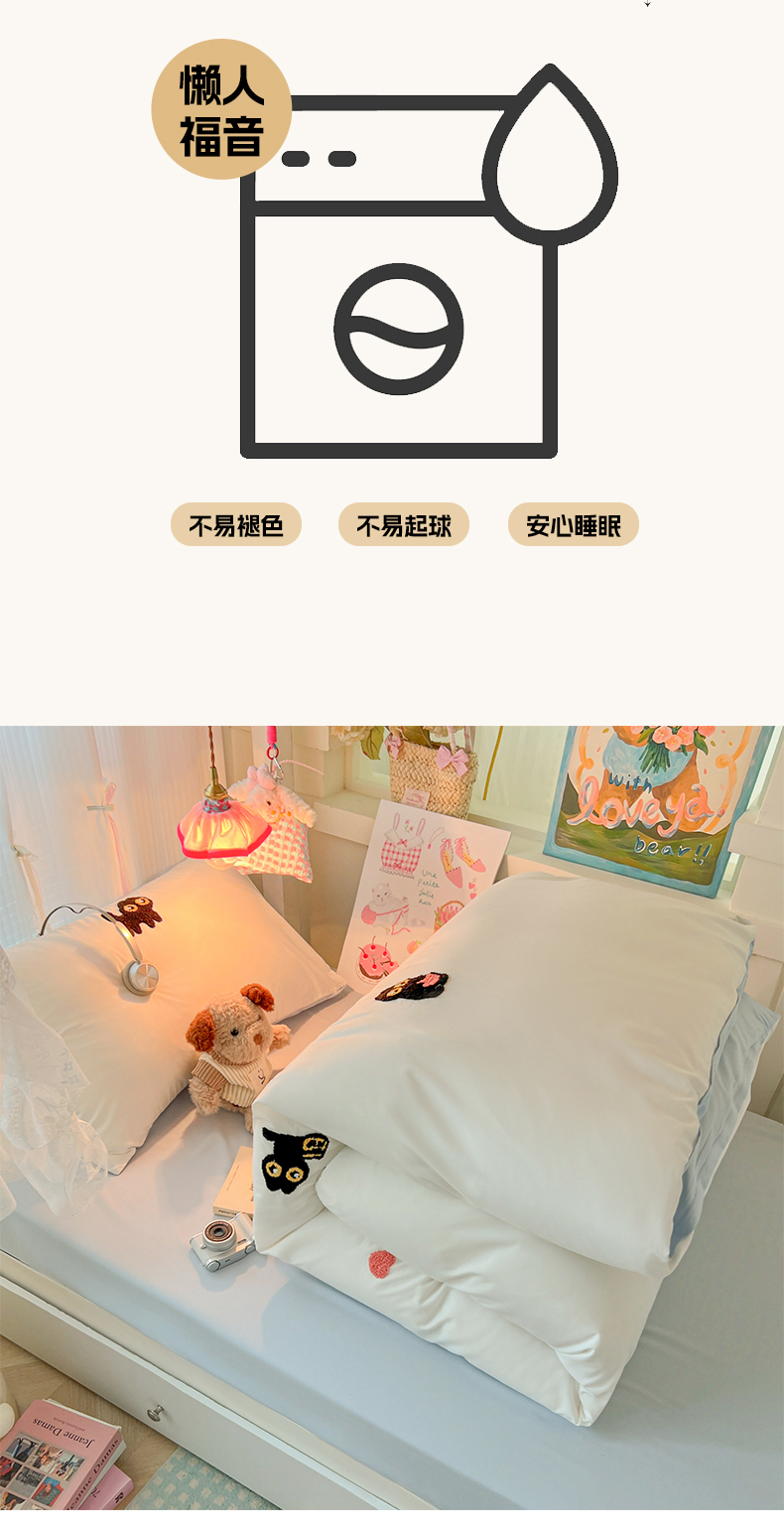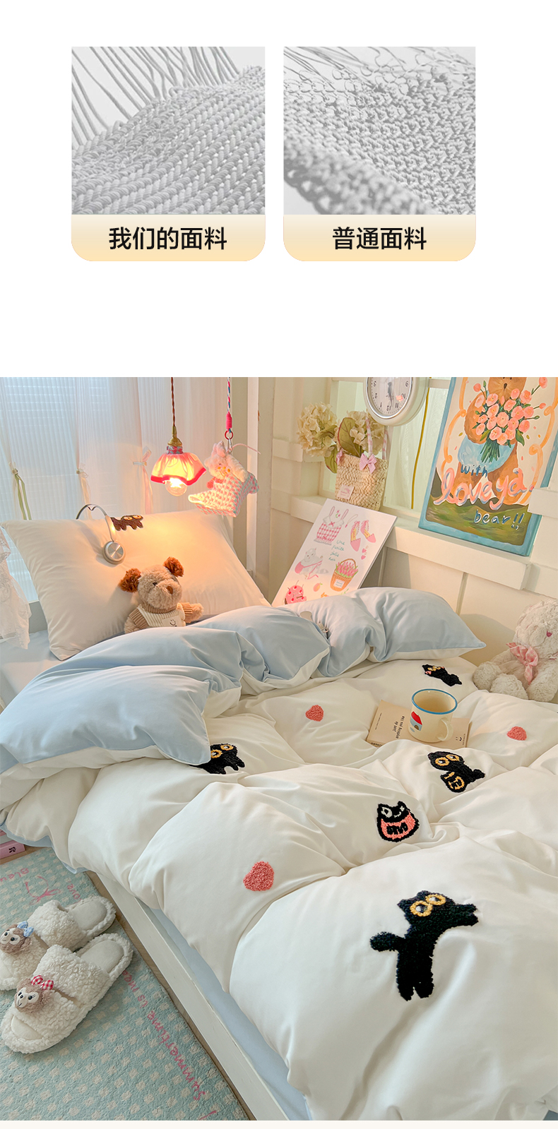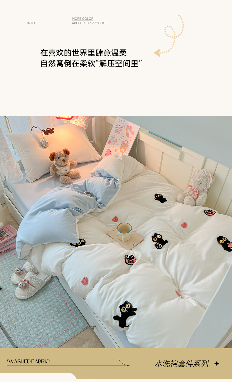 当前位置: 91家纺网 > 商品网购 > 床品套件 > 四件套 > 水洗棉四件套 > 韩巢家纺 2025新款学生宿舍寝室上下铺水洗棉毛巾绣被套床单三四件套-幸运猫 幸运猫白蓝