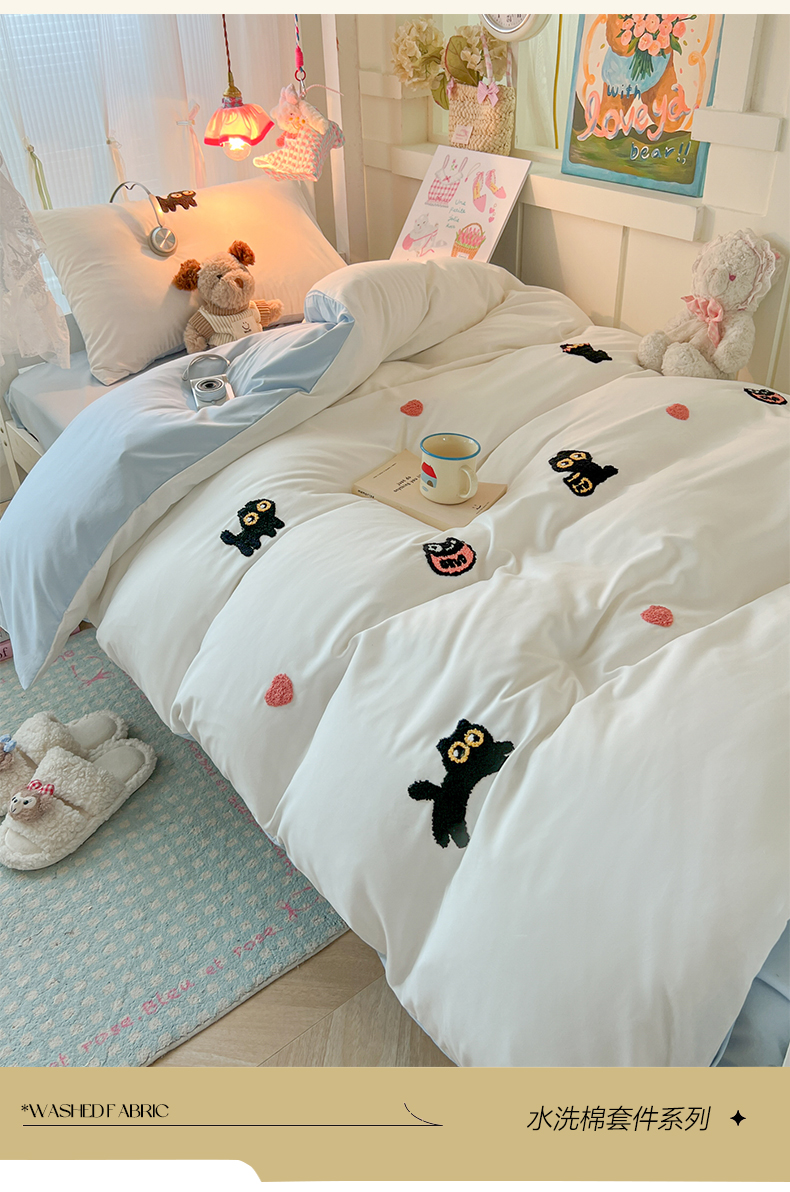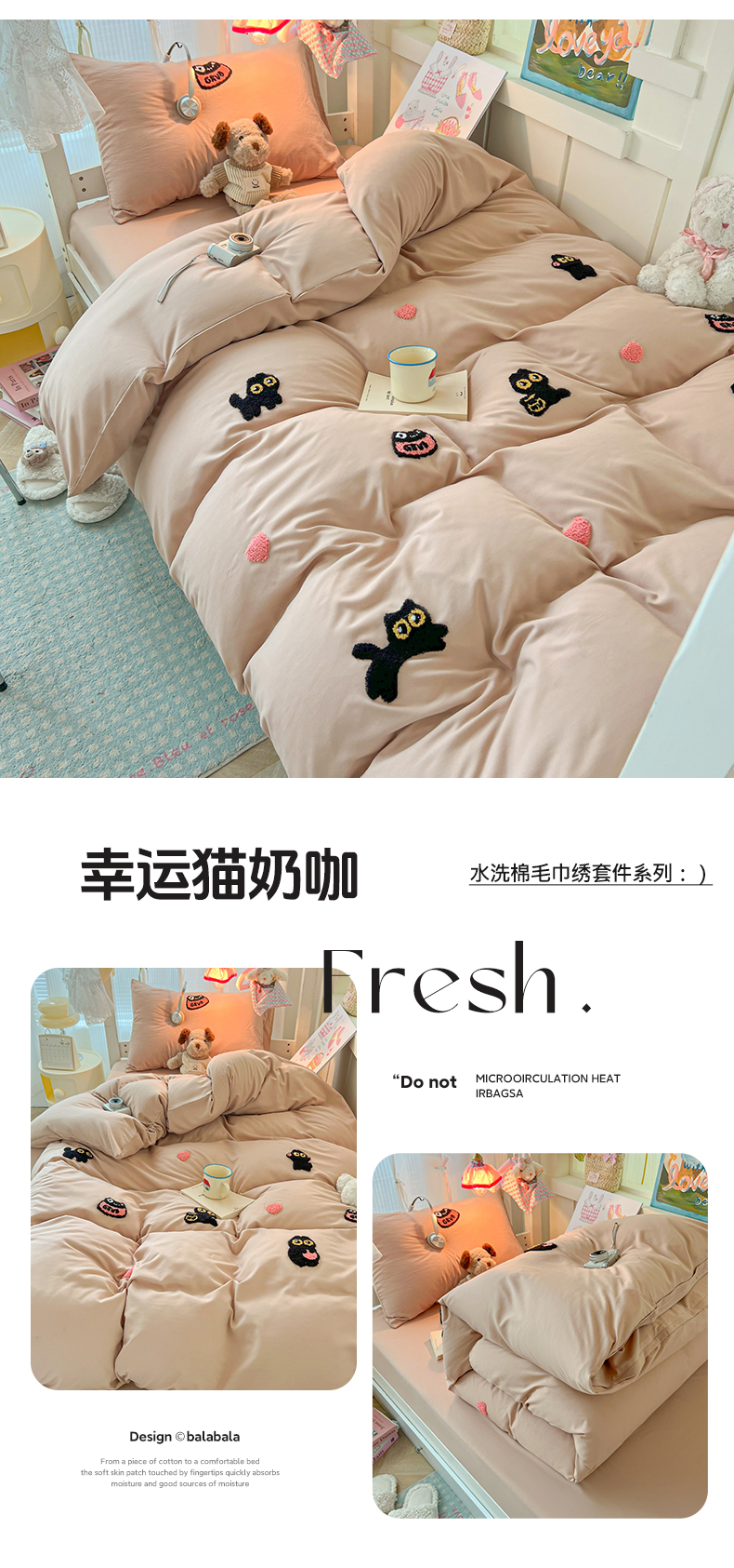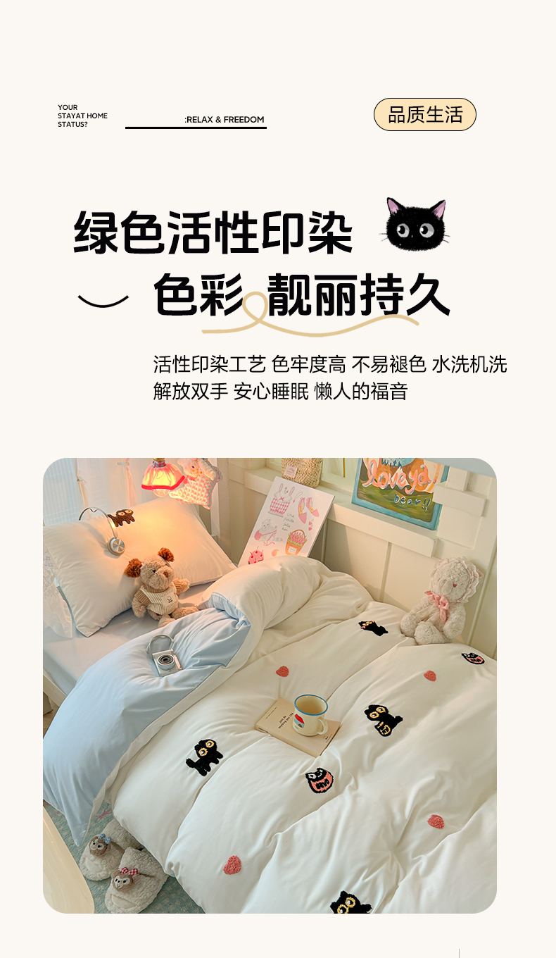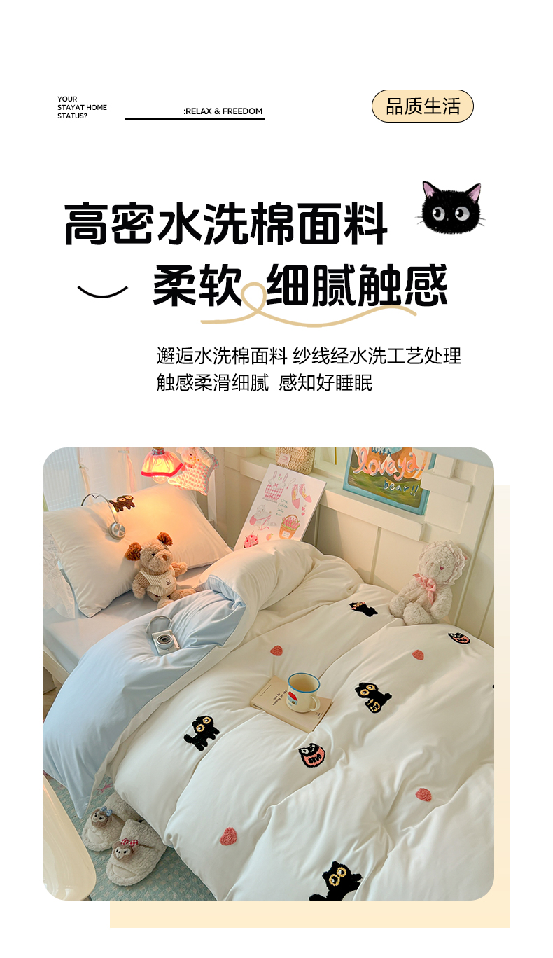 当前位置: 91家纺网 > 商品网购 > 床品套件 > 四件套 > 水洗棉四件套 > 韩巢家纺 2025新款学生宿舍寝室上下铺水洗棉毛巾绣被套床单三四件套-幸运猫 幸运猫白蓝