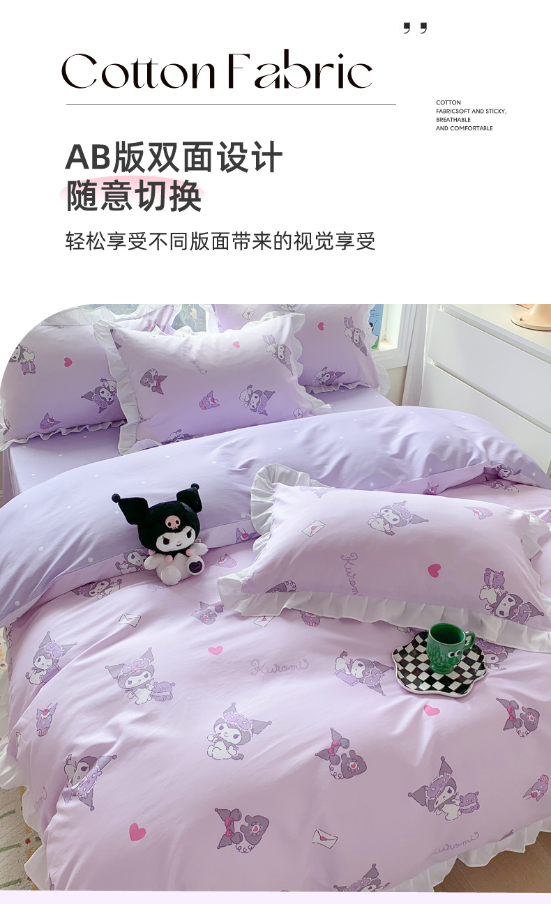 当前位置: 91家纺网 > 商品网购 > 床品套件 > 四件套 > 全棉普通四件套 > 玉元坊2025新款三丽鸥系列 全棉床单纯棉床裙三四件套 库洛米宝贝【花边款】