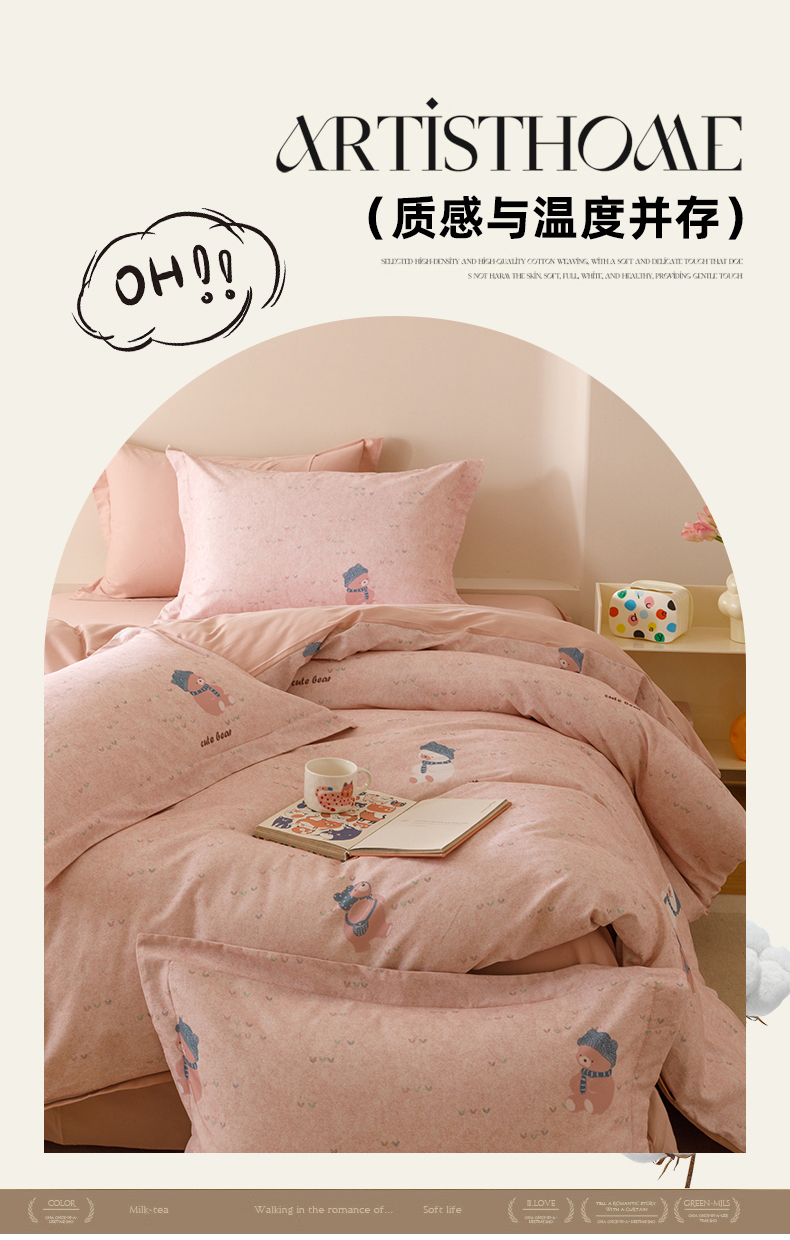 当前位置: 91家纺网 > 商品网购 > 床品套件 > 四件套 > 全棉普通四件套 > 爱思佳 2025新款加厚全棉纯棉磨毛数码印花四件套 幸福熊