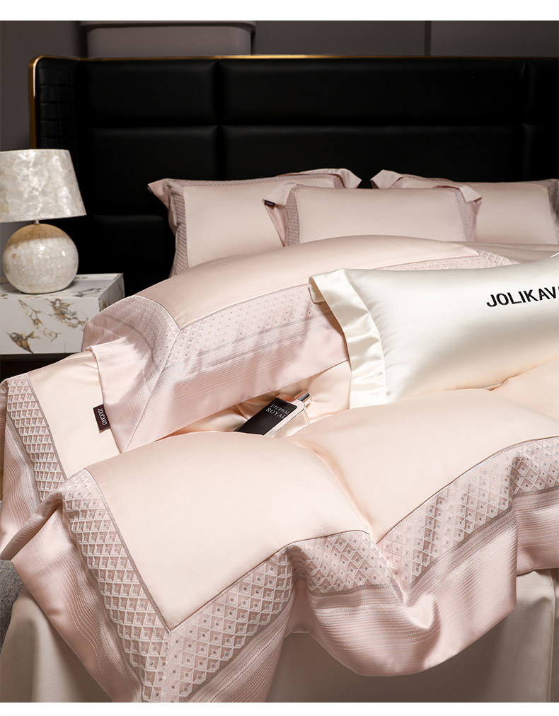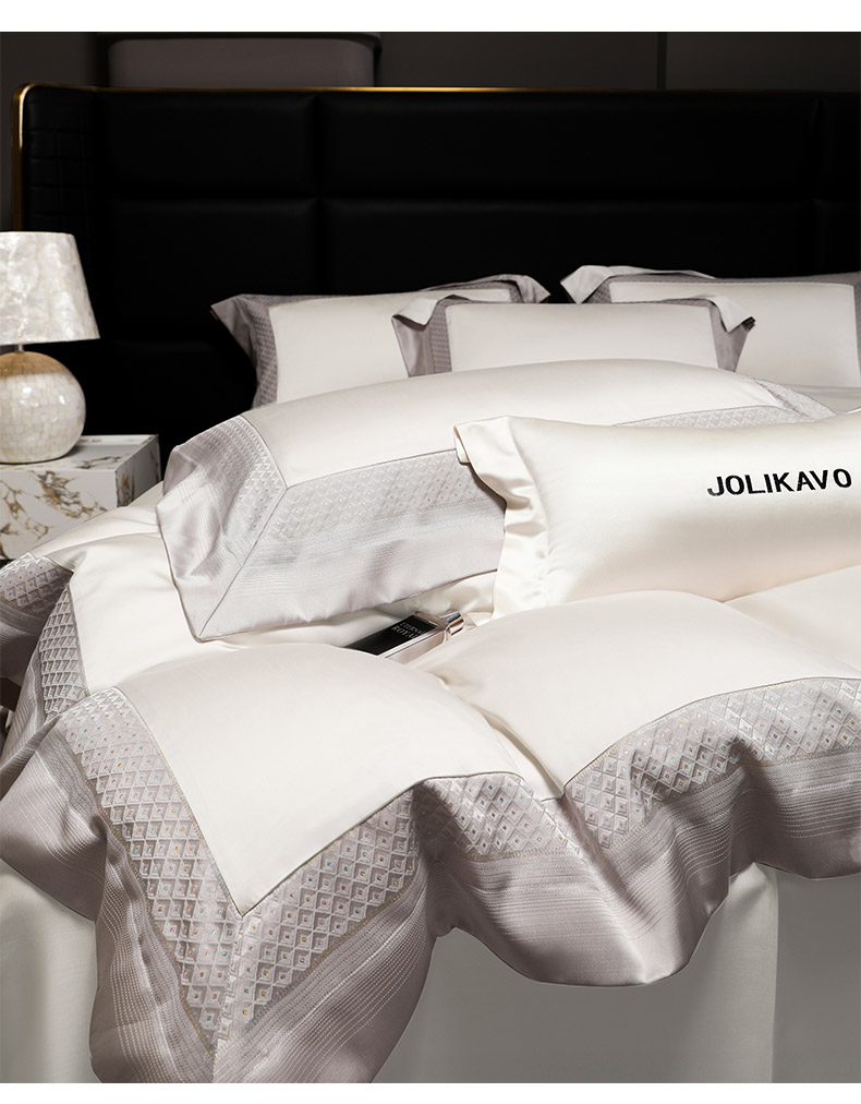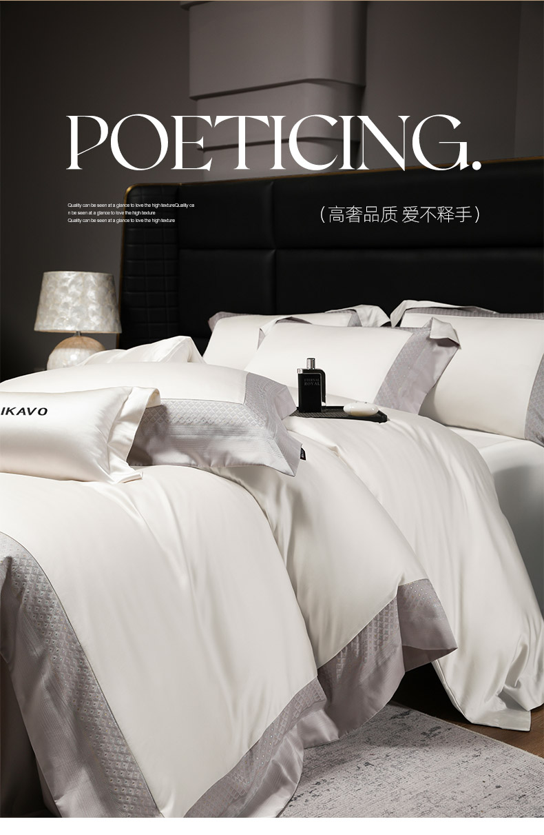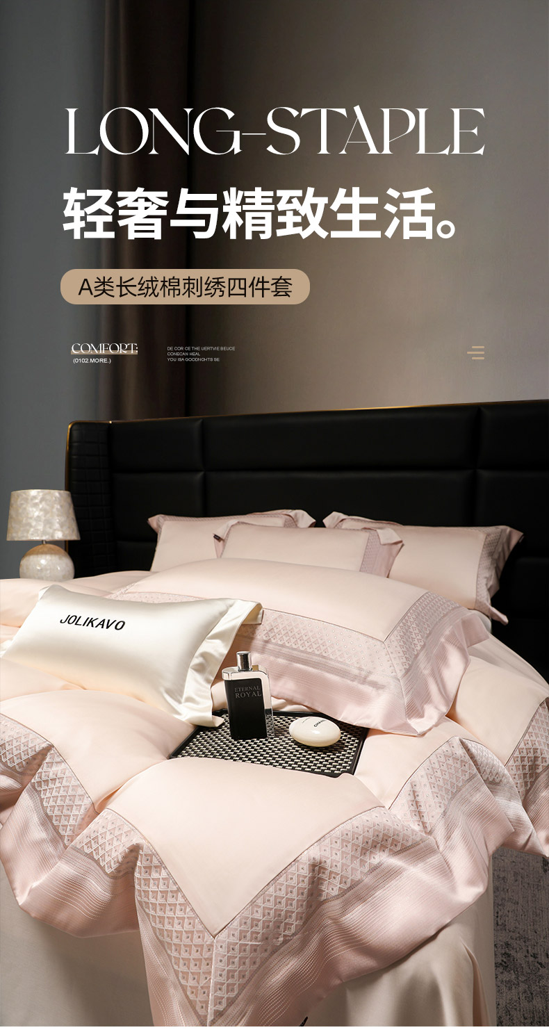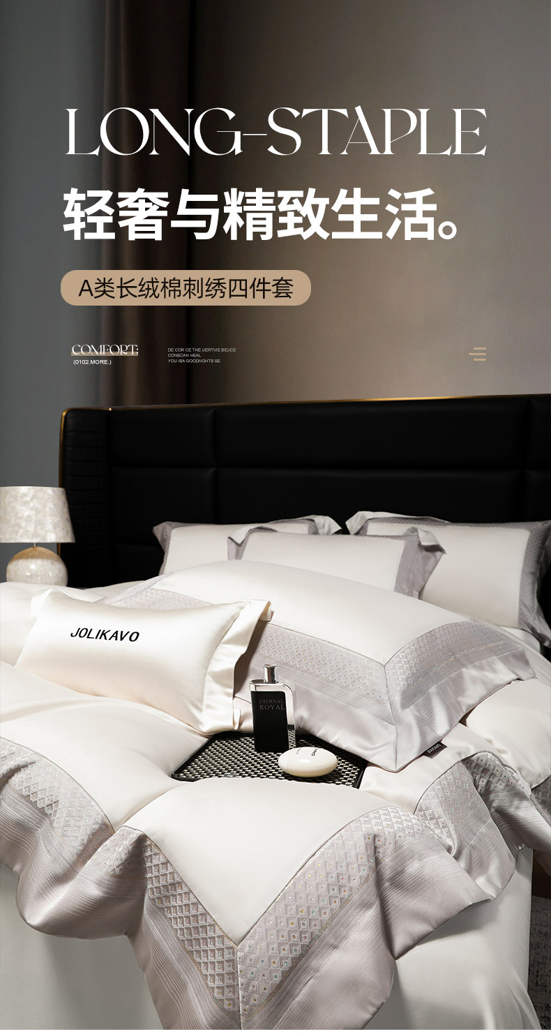 当前位置: 91家纺网 > 商品网购 > 床品套件 > 四件套 > 长绒棉四件套 > (总)2025新款轻奢风A类贡缎长绒棉四件套全棉纯棉重工刺绣拼接被套纯色床单床笠高端床上用品