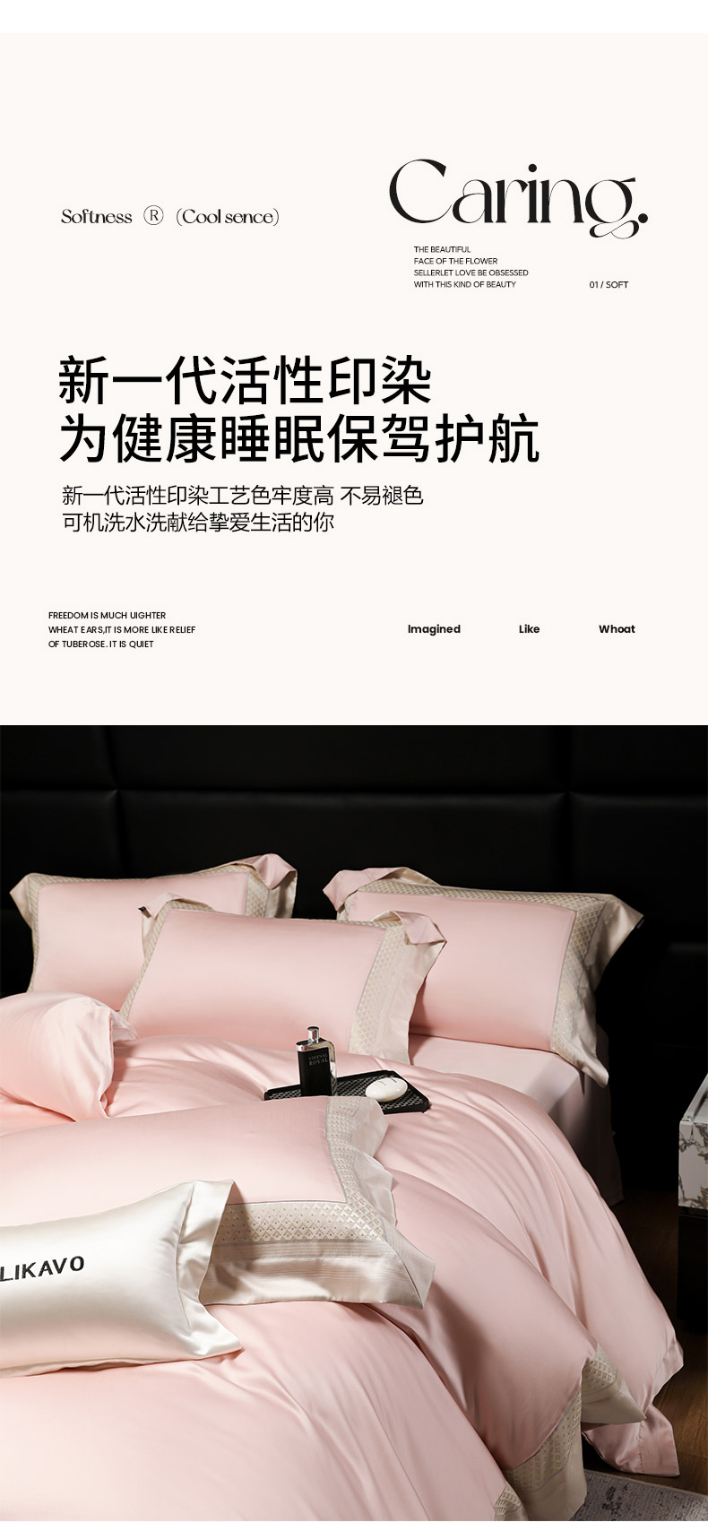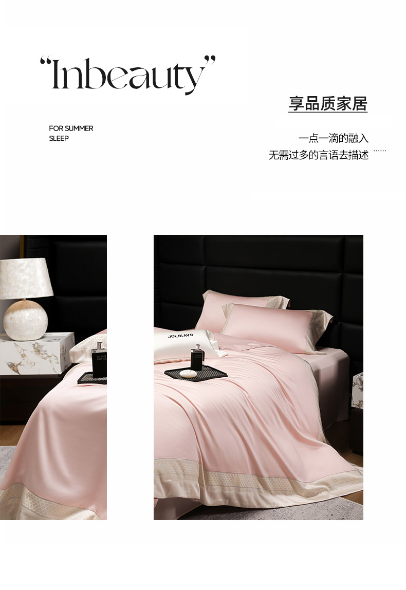商品名称:2025新款轻奢风A类贡缎长绒棉四件套全棉纯棉重工刺绣拼接被套纯色床单床笠高端床上用品 余音-慕斯粉
