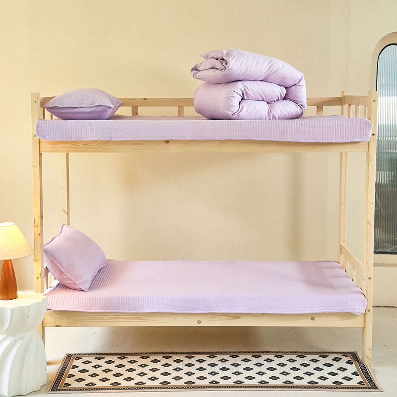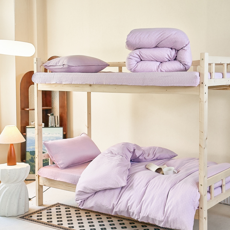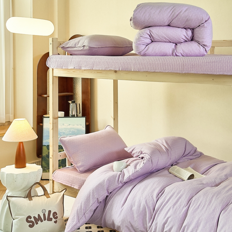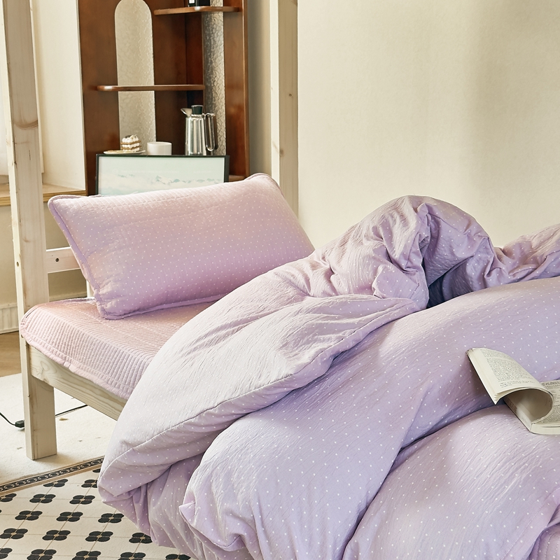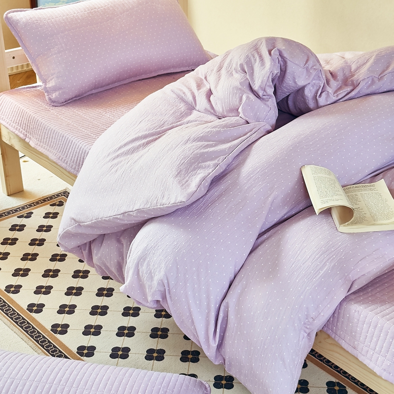 梦莱斯2025新款皱皱棉学生款床盖三件套 波点紫