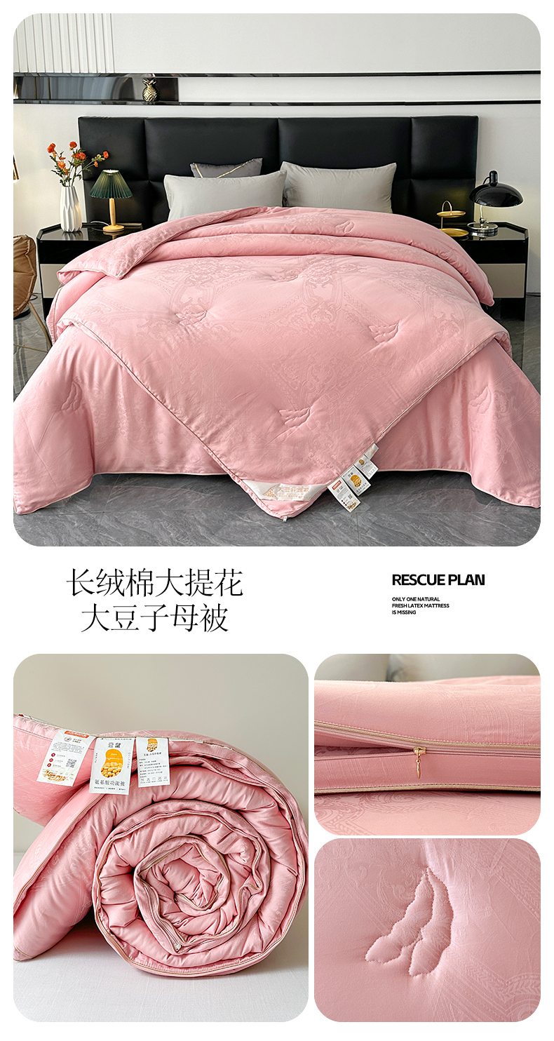 商品名称:欧夏家纺 2025秋冬新款长绒棉提花大豆被子母被拉链款二合一被子被芯 胭脂粉