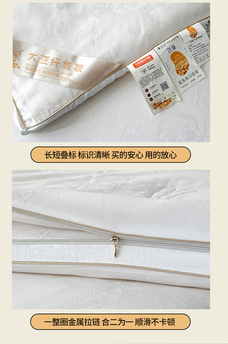 (总)欧夏家纺 2025秋冬新款长绒棉提花大豆被子母被拉链款二合一被子被芯,爵士白,香槟色,胭脂粉