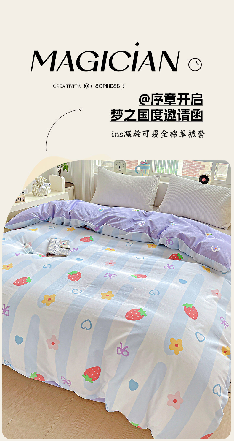 (总)2024新款ins风全棉印花单品被套,爱心小熊,安心宝贝,盎然春色,白桃公主,北极星,波波熊,布朗熊,草莓小恐龙,宠物派对,出水芙蓉,冬日嘉年华,豆蔻年华,多米熊咖,法风小香,国宝联盟,嗨皮熊,海底派对,海底世界,花都丽影,花香馥郁,花语嫣然,皇家学院 灰,几何旋律,橘色心情,可比乐园,蓝色心情,玛格丽,漫步时光,玫瑰佳人,萌萌兔,梦人花香,喵喵派对,莫兰迪,皮皮狗,浅浅花漾粉,浅浅花漾蓝,思维空间,天真小熊,心动熊仔,星光条纹,许愿精灵咖,音乐小熊,郁金香兔兔,遇见心情,月下花夕,紫霞,安逸胖哒,斑点小狗,碧城春泥,芳华,菲颂,橘子狗,罗利,米洛,偏爱,清风絮语,小黑猫,摇曳花开,游蝶戏梦,春的色彩