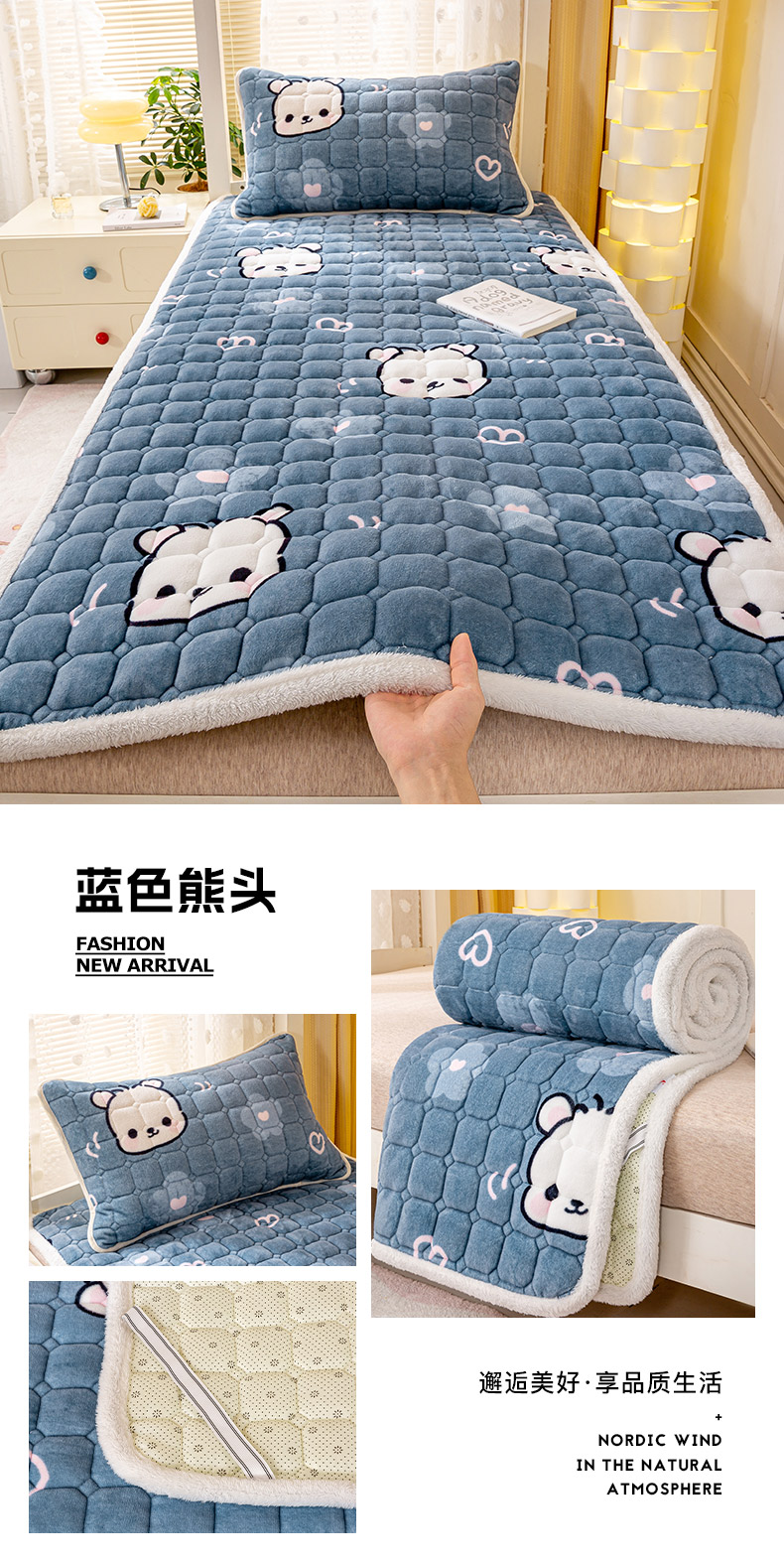 • 91家纺网 家纺一手货源 找家纺 眠势力 2025新款牛奶绒学生床宿舍床垫夹棉加厚床褥子秋冬季保暖床护垫 潮小熊