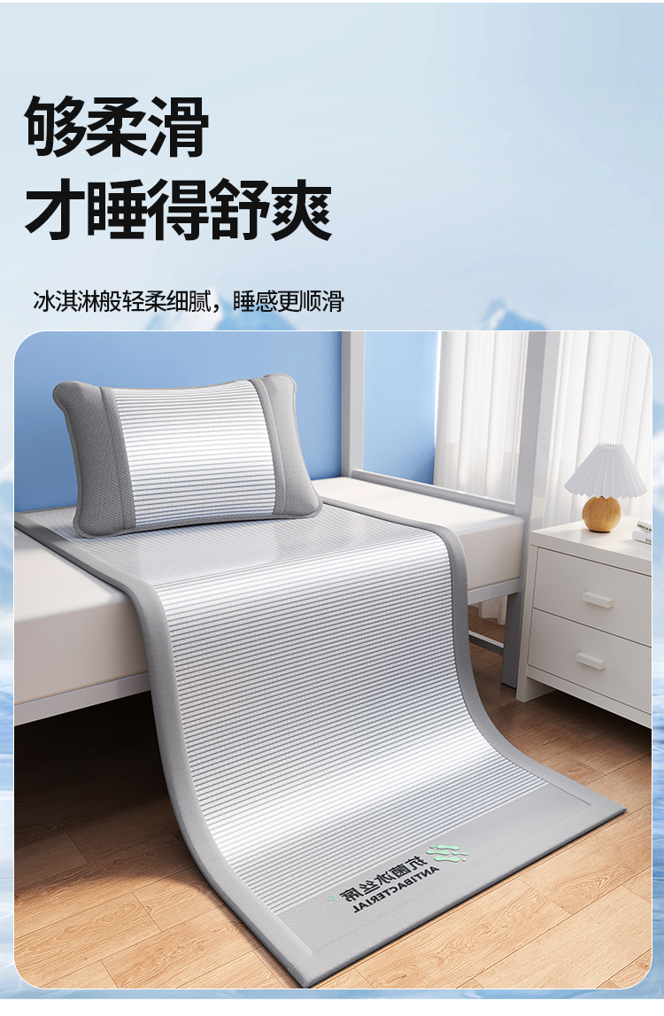 当前位置: 91家纺网 > 商品网购 > 床上用品 > 凉席 > 其他凉席 > (总)缦吉 2025款学生专用抗菌碳光冰丝席凉席-学生款
