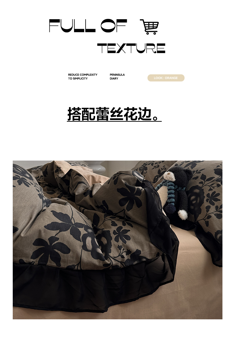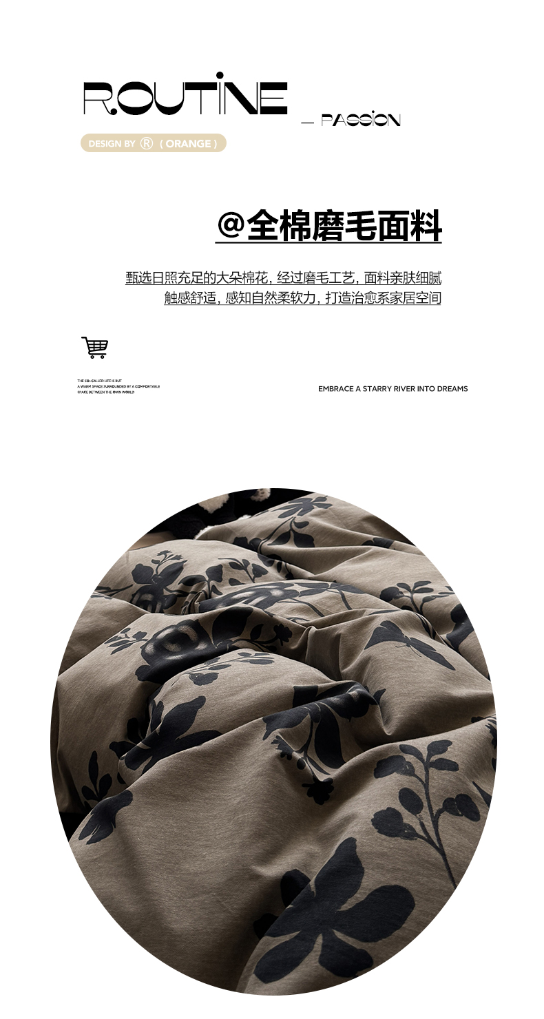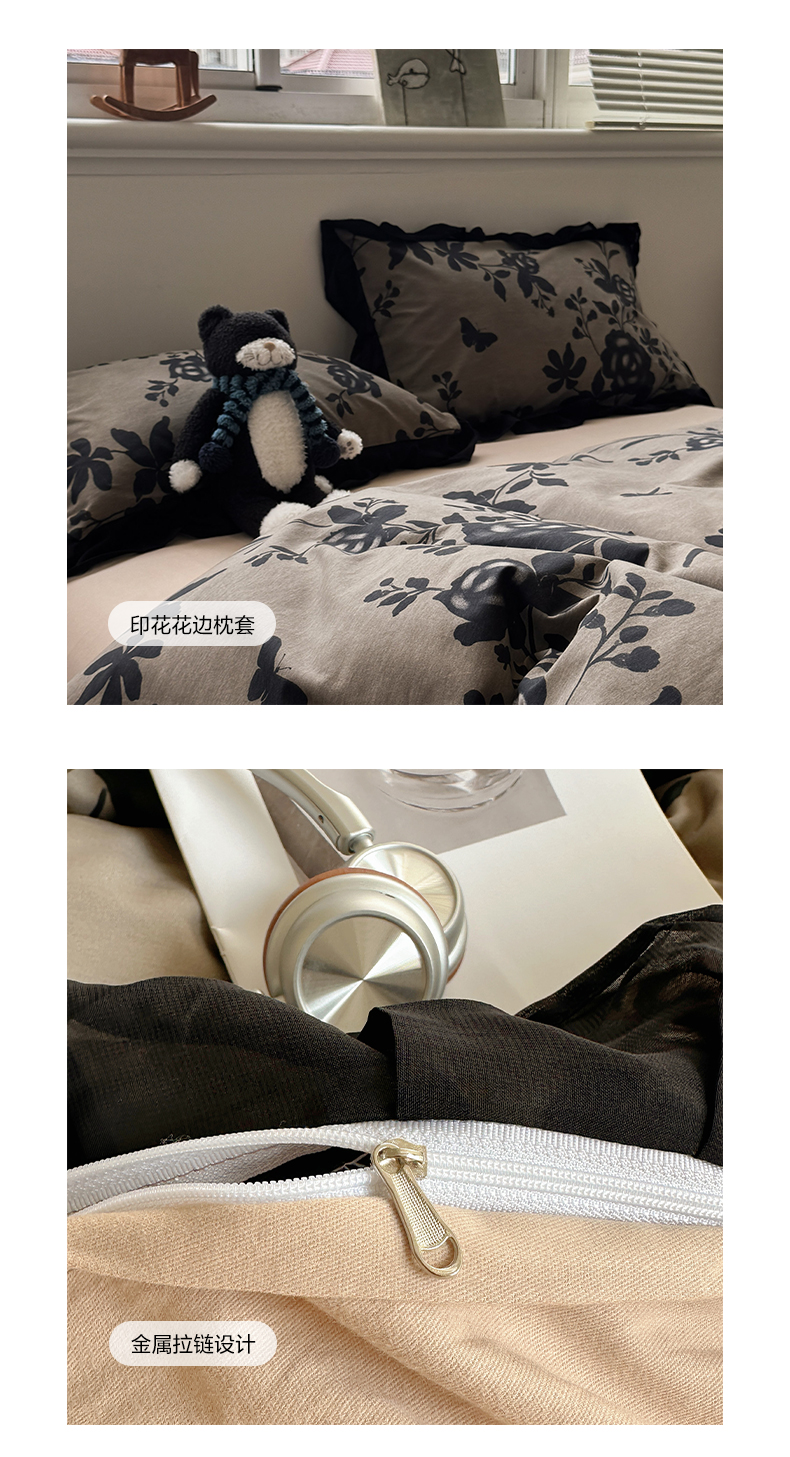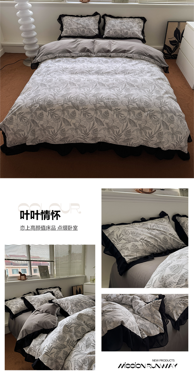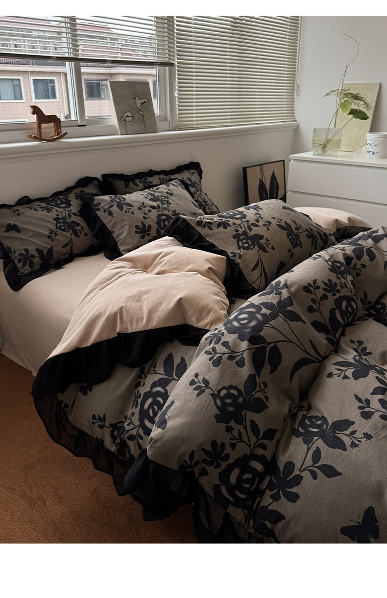 当前位置: 91家纺网 > 商品网购 > 床品套件 > 四件套 > 全棉普通四件套 > 雅居纺家纺 2025新款全棉纯棉赫本风磨毛蕾丝花边四件套-风格二 水墨玫瑰