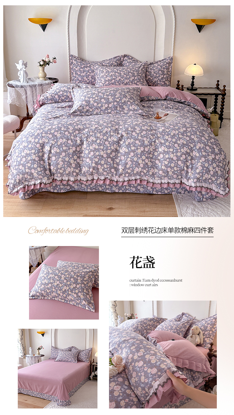 商品名称:韩约家纺 2025秋冬加厚1双层刺绣花边床单款棉麻四件套 如约