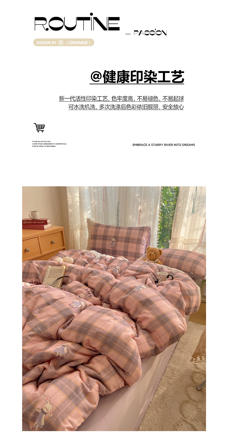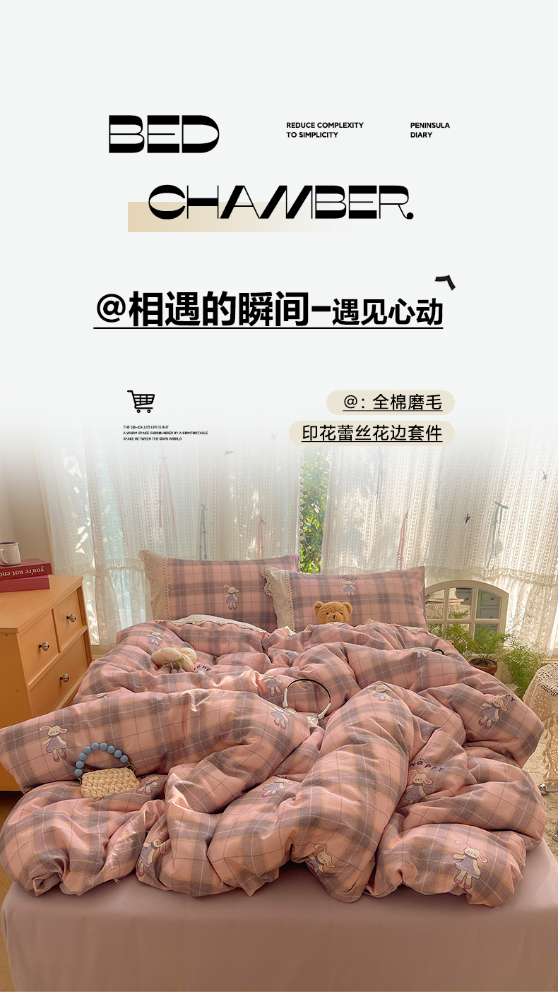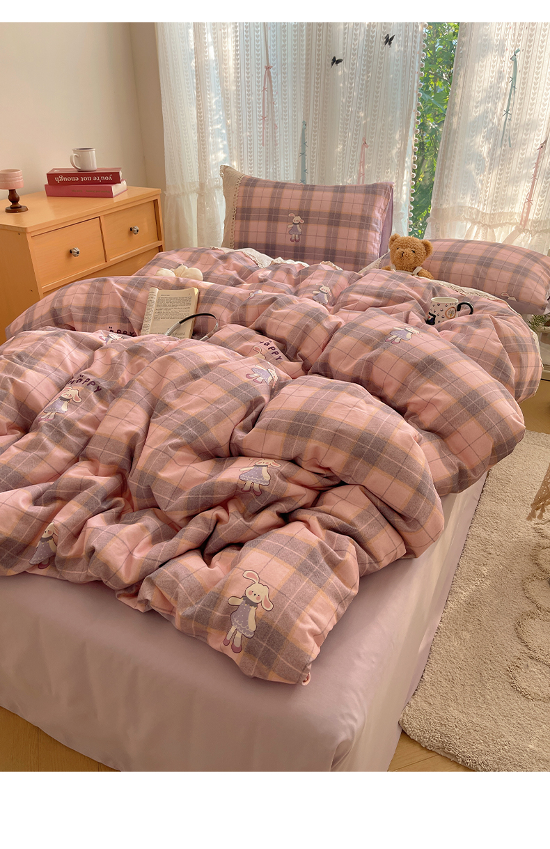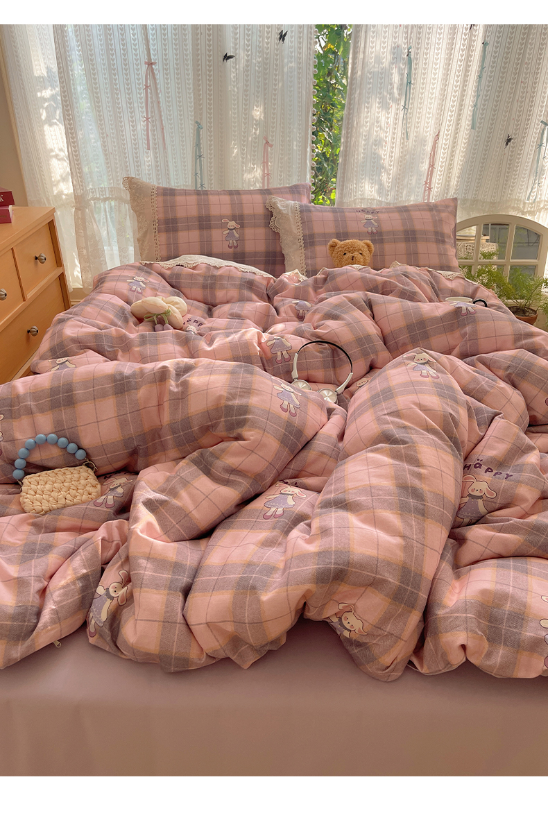 当前位置: 91家纺网 > 商品网购 > 床品套件 > 四件套 > 全棉普通四件套 > 雅居纺家纺 2025新款全棉纯棉韩版花边磨毛四件套 花边紫色小兔子