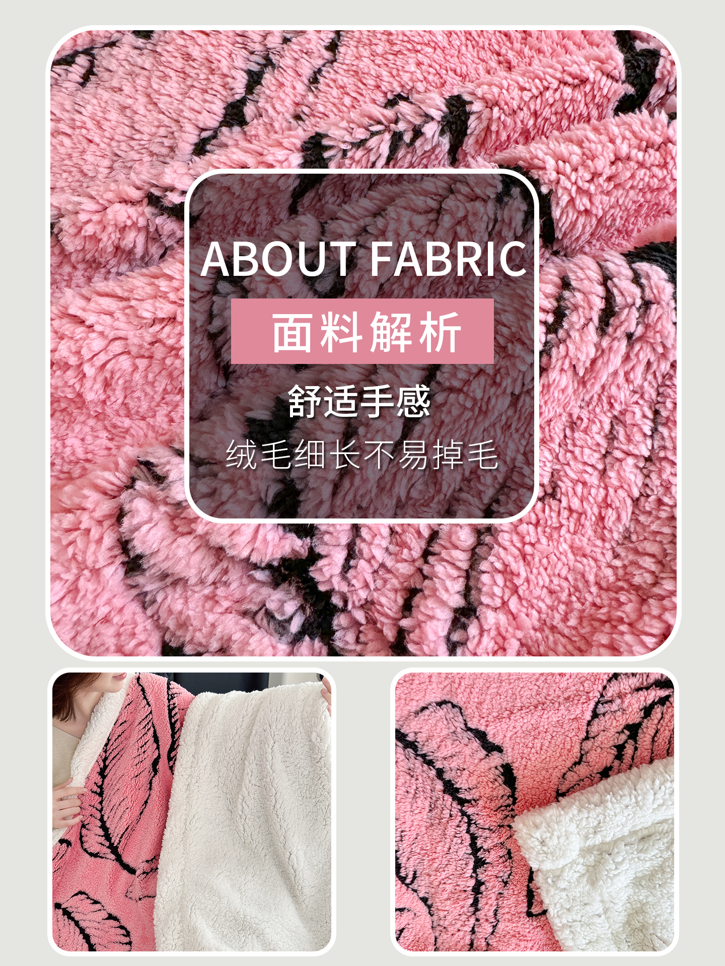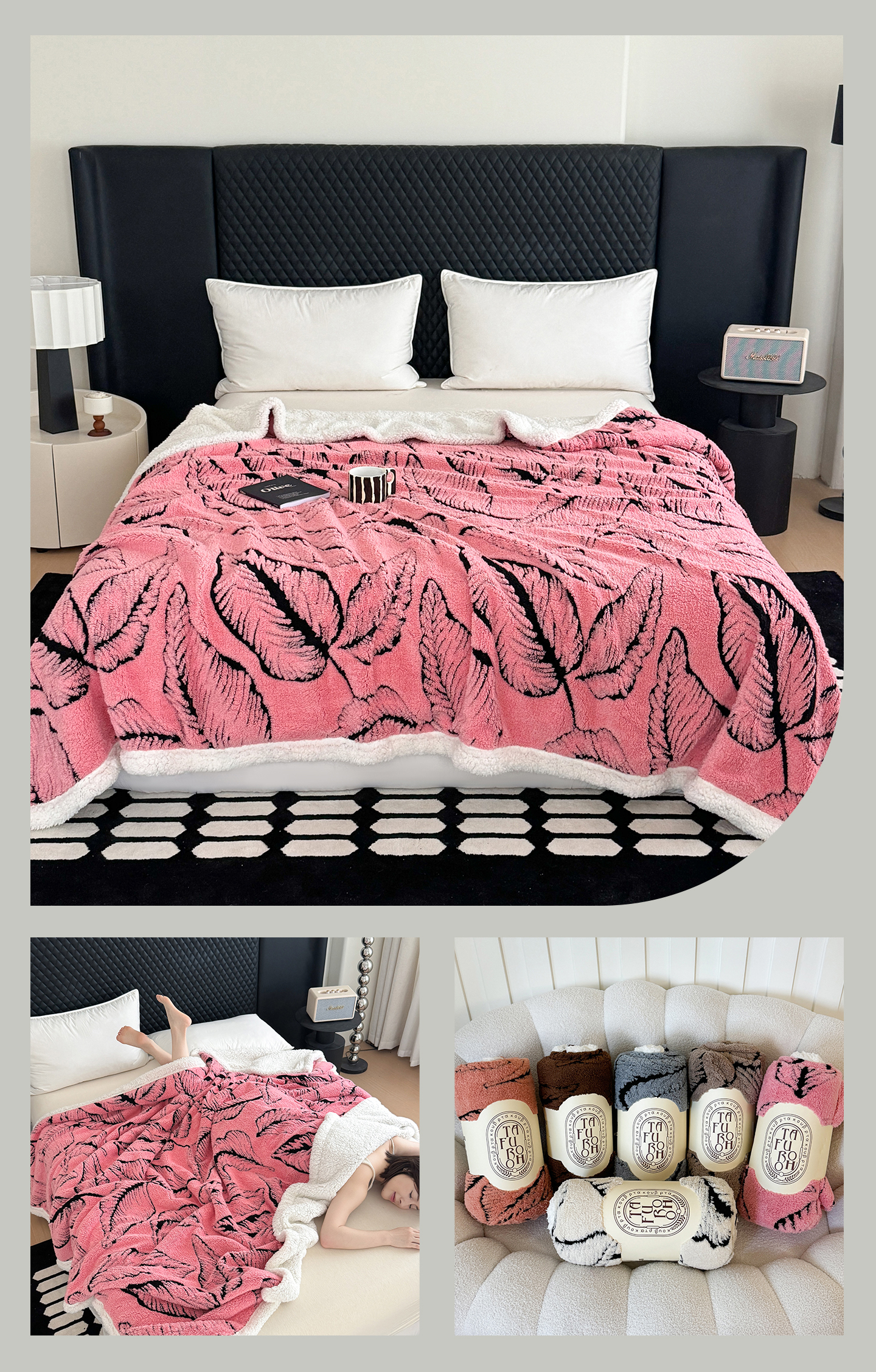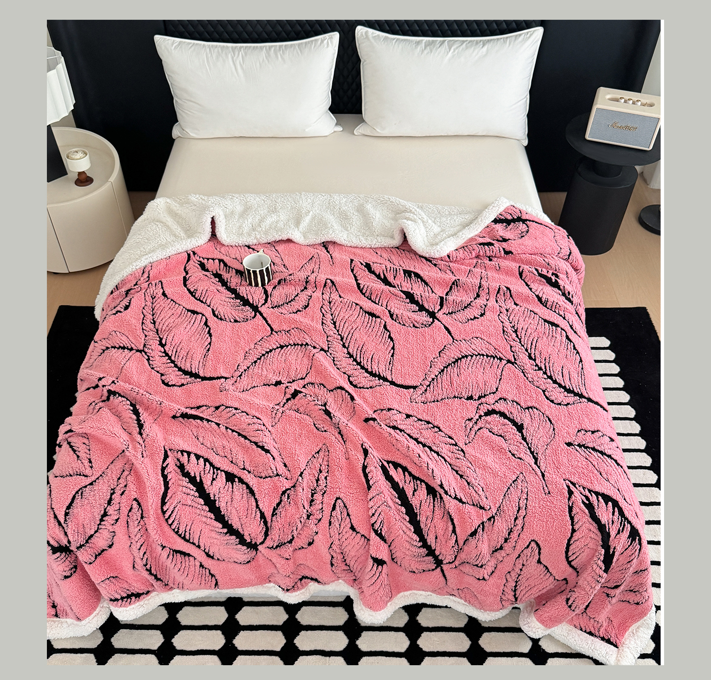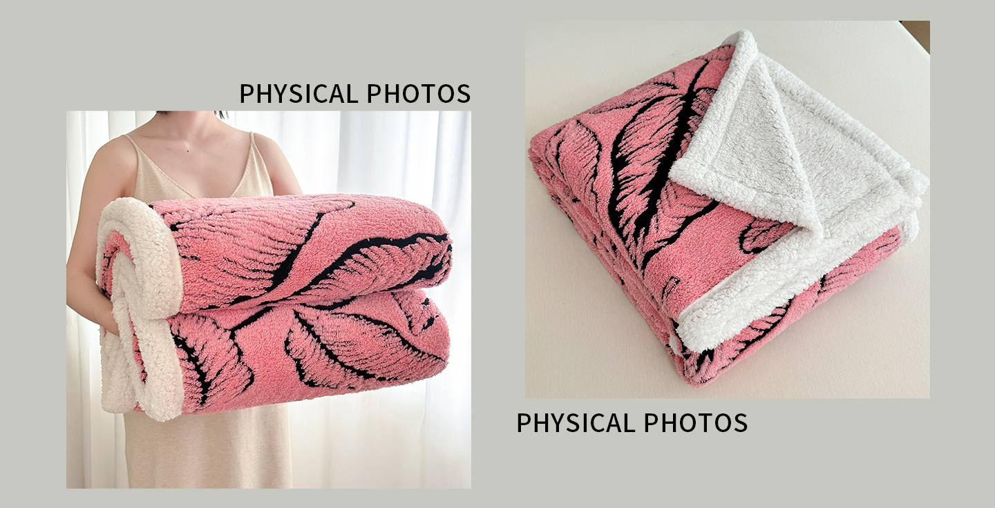 商品名称:丹本家纺 2025新款双层阳离子叶子提花塔芙绒羊羔绒跨境双层毛毯盖毯毯子 叶子粉色