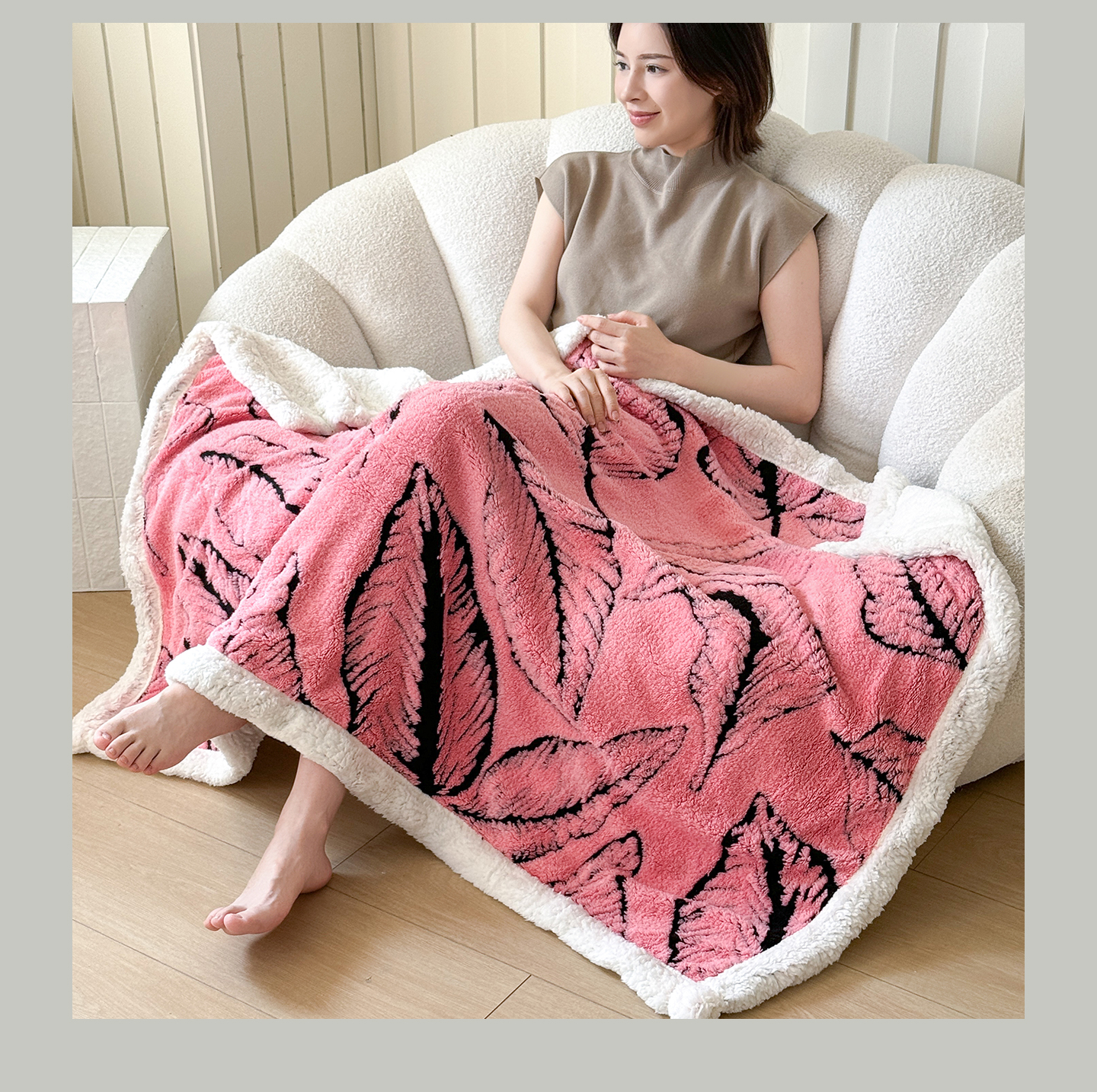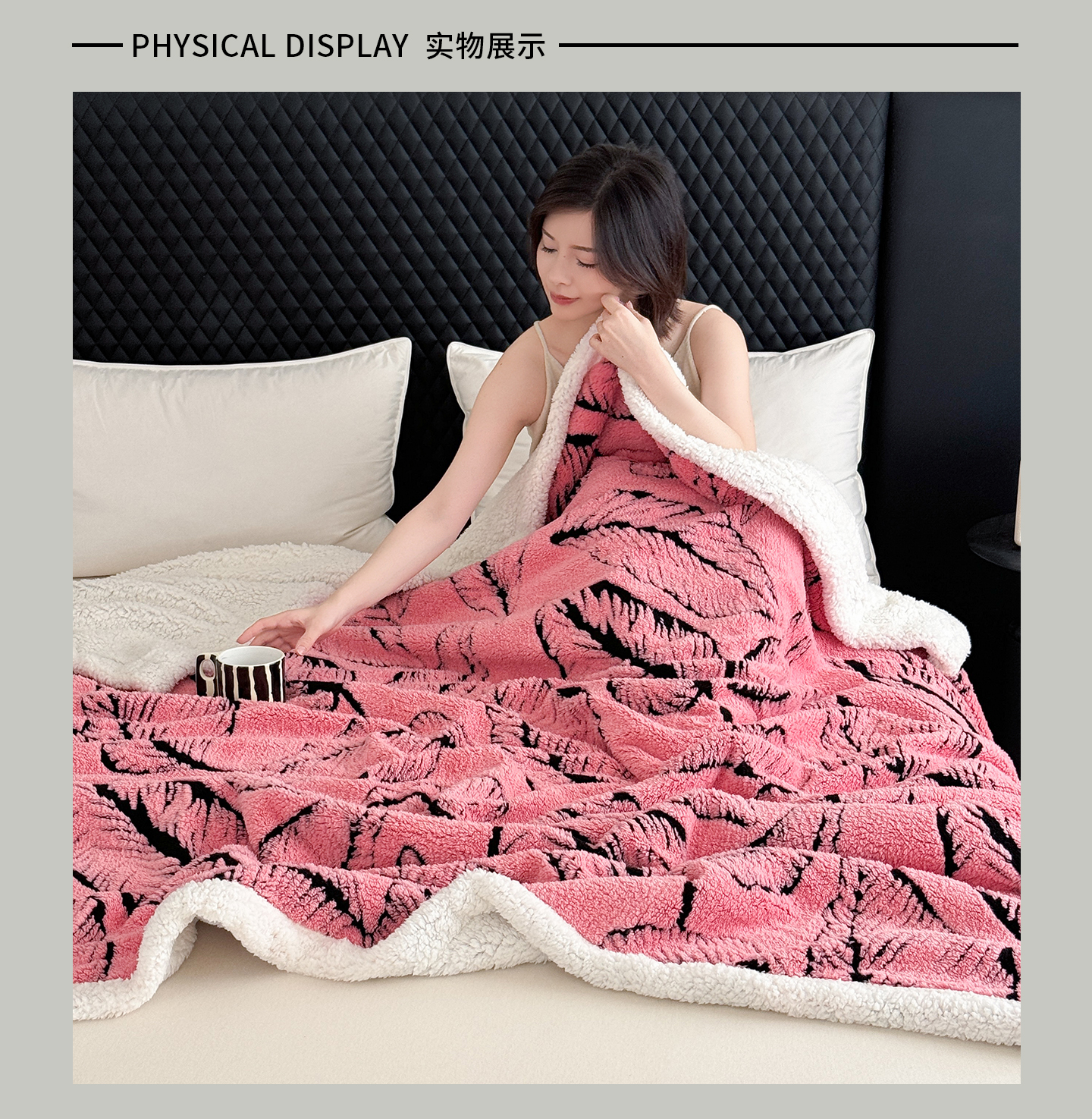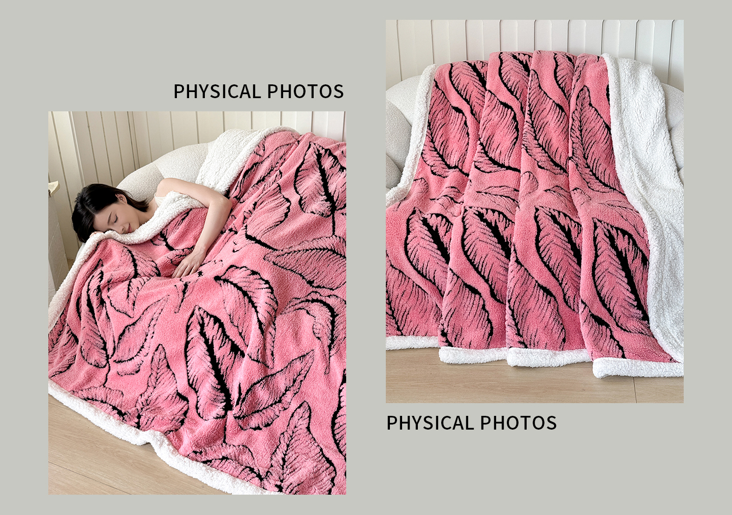 商品名称:丹本家纺 2025新款双层阳离子叶子提花塔芙绒羊羔绒跨境双层毛毯盖毯毯子 叶子粉色