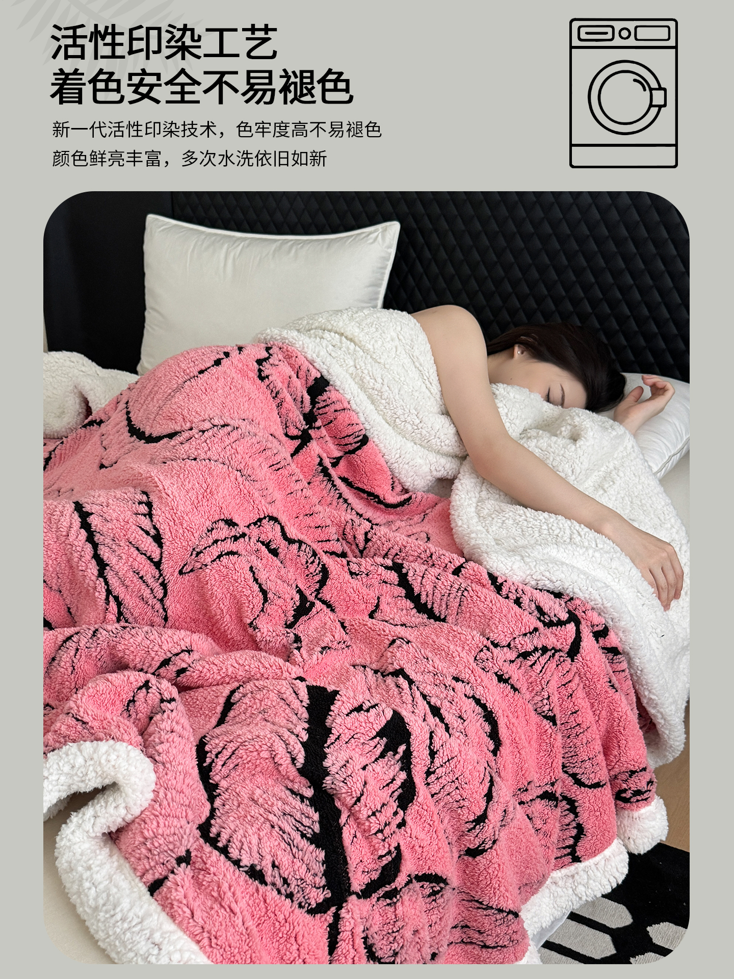 (总)丹本家纺 2025新款双层阳离子斑马纹提花塔芙绒羊羔绒跨境双层毛毯盖毯毯子,白斑马纹,粉斑马纹,灰斑马纹,绿斑马纹,驼斑马纹