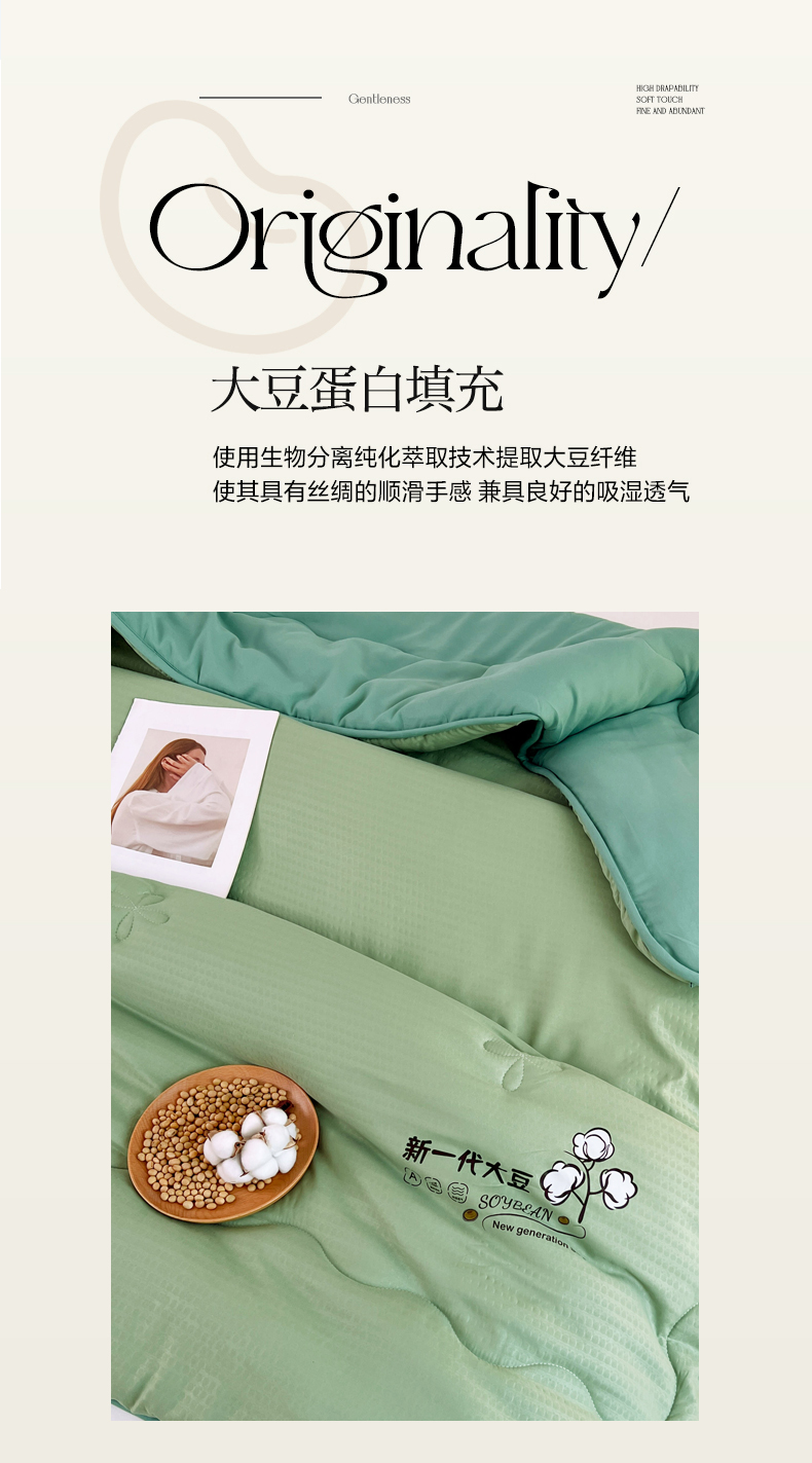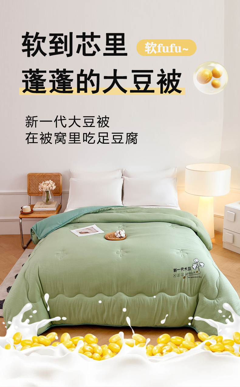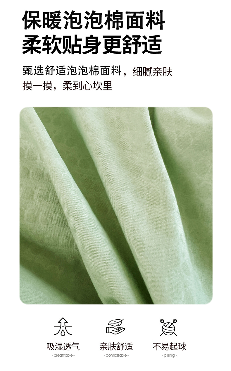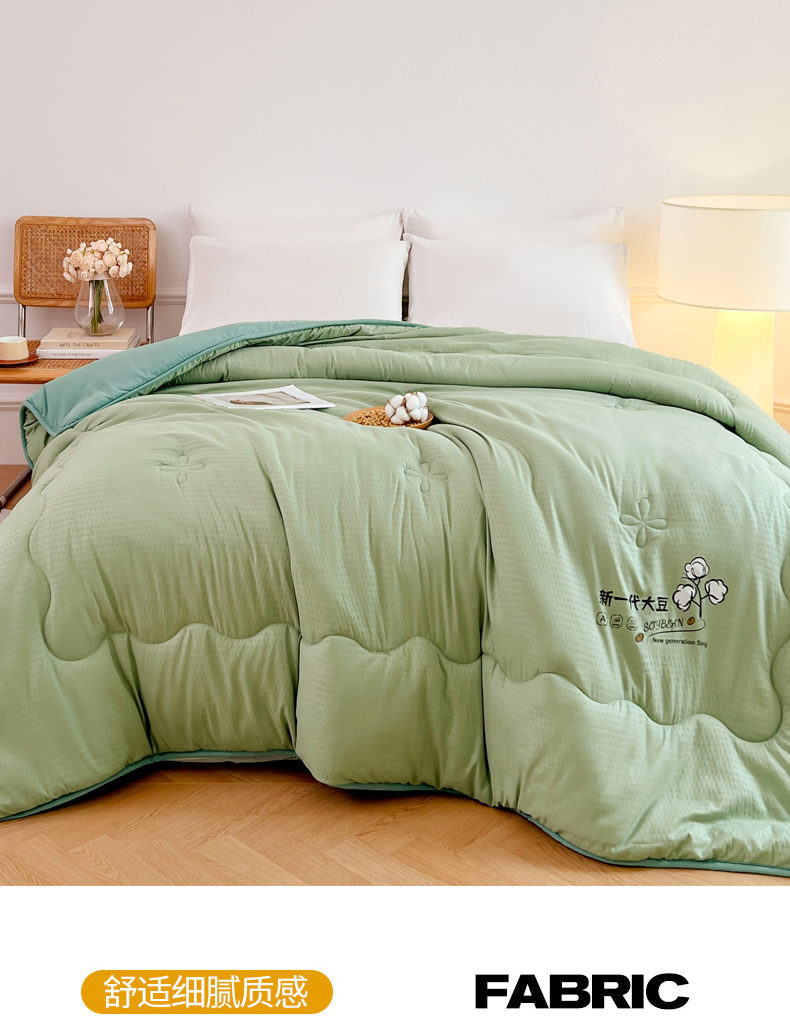 • 91家纺网 家纺一手货源 找家纺 VIP被业 2025新款简约新一代泡泡棉大豆被冬被被子被芯 草绿