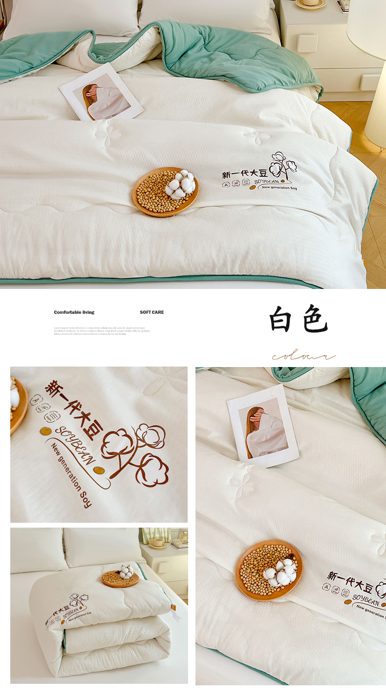 (总)VIP被业 2025新款60S立体全棉大豆被子被芯,白色,粉色,灰色