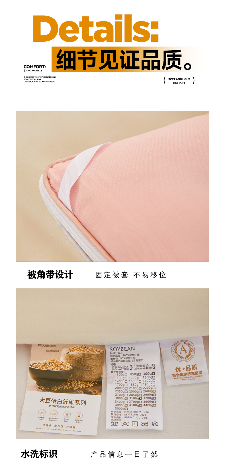 (总)VIP被业 2025新款60S立体全棉大豆被子被芯,白色,粉色,灰色