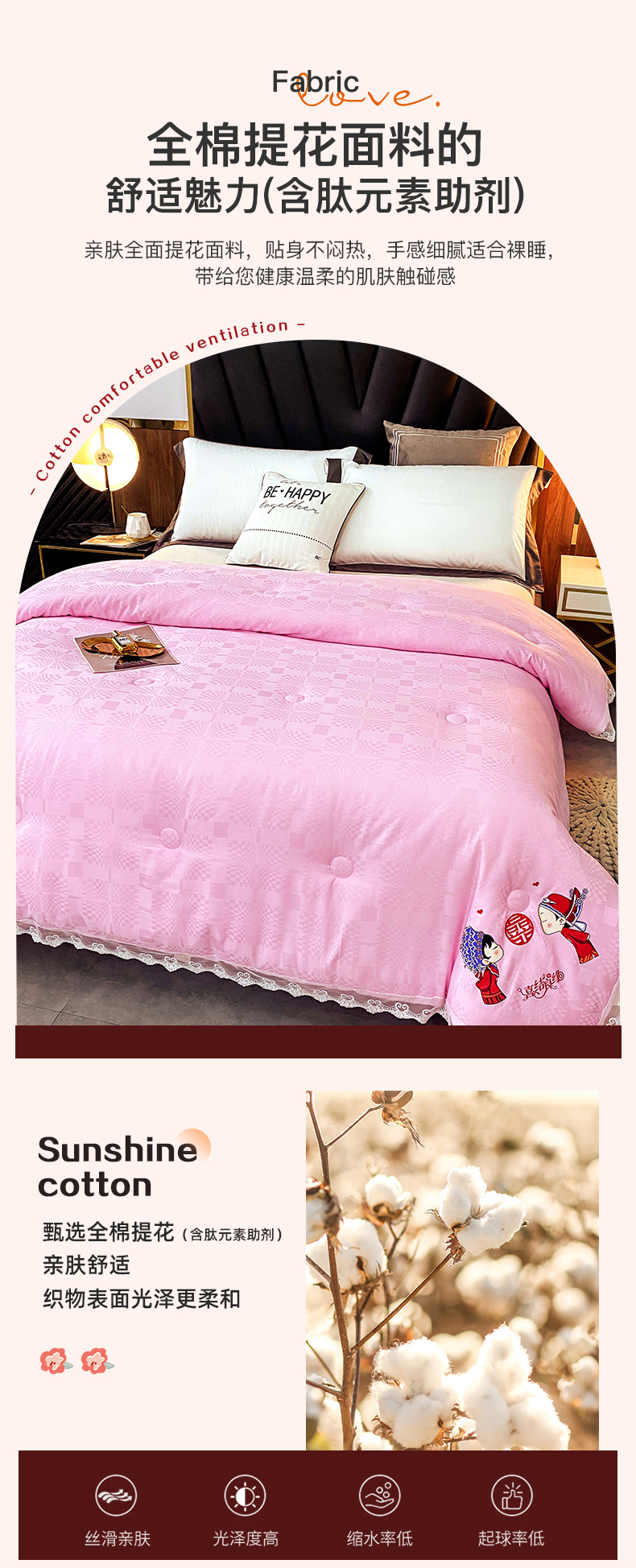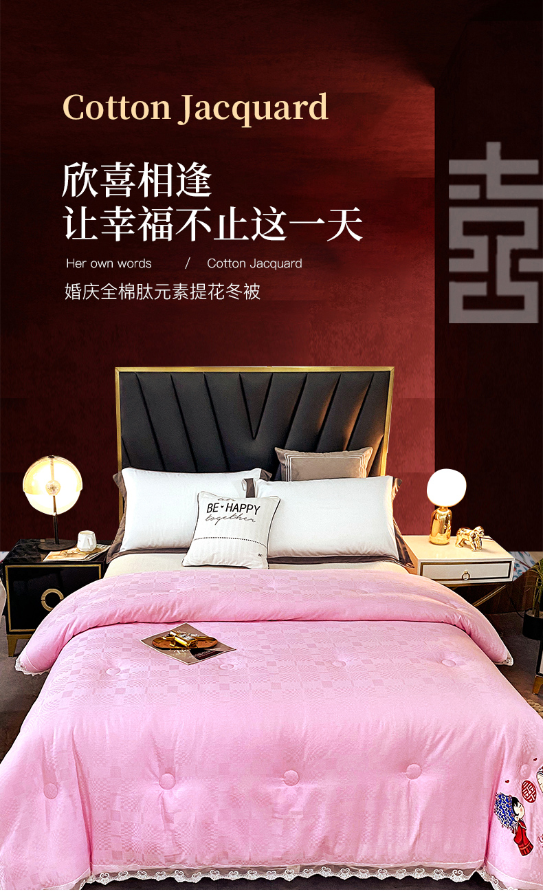 VIP被业 2025新款婚庆全棉纯棉肽元素提花冬被被子被芯 粉色