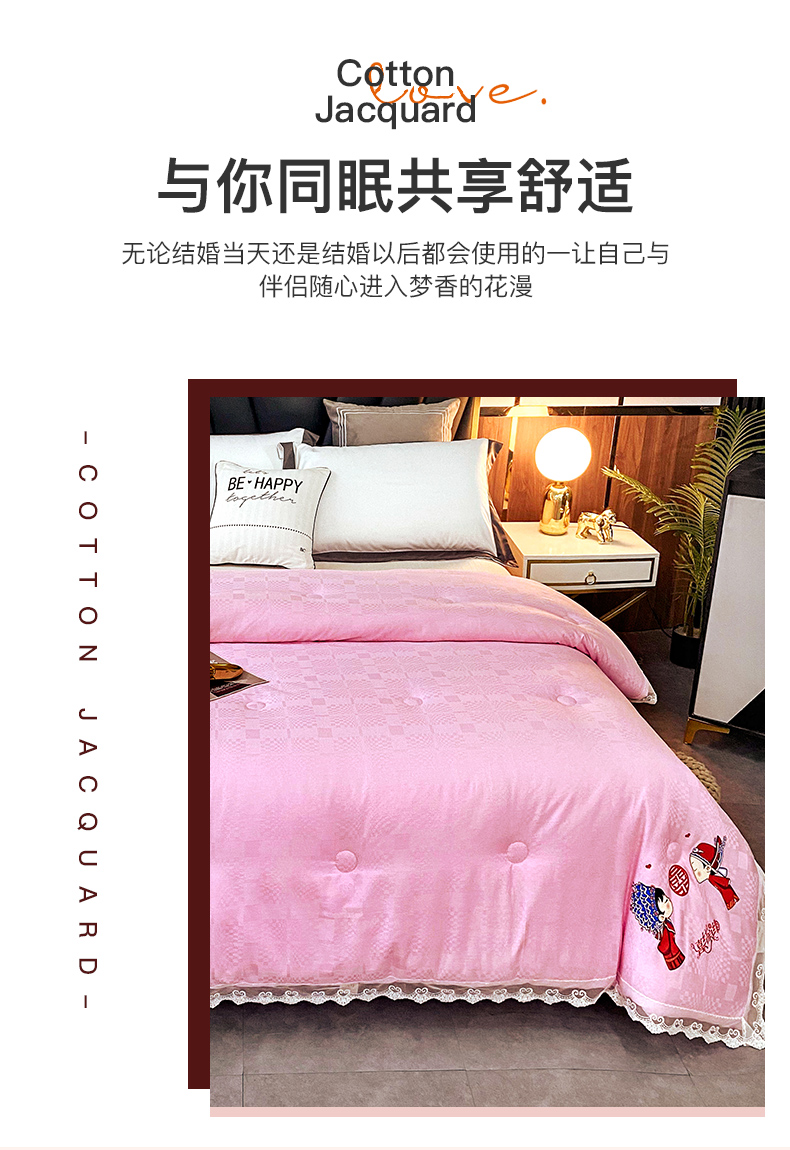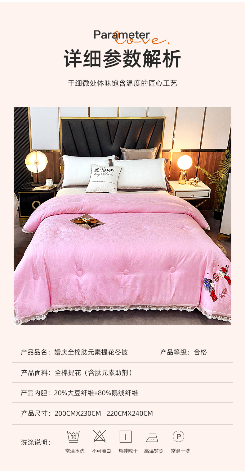 商品名称:VIP被业 2025新款婚庆全棉纯棉肽元素提花冬被被子被芯 粉色