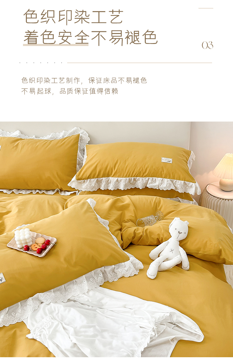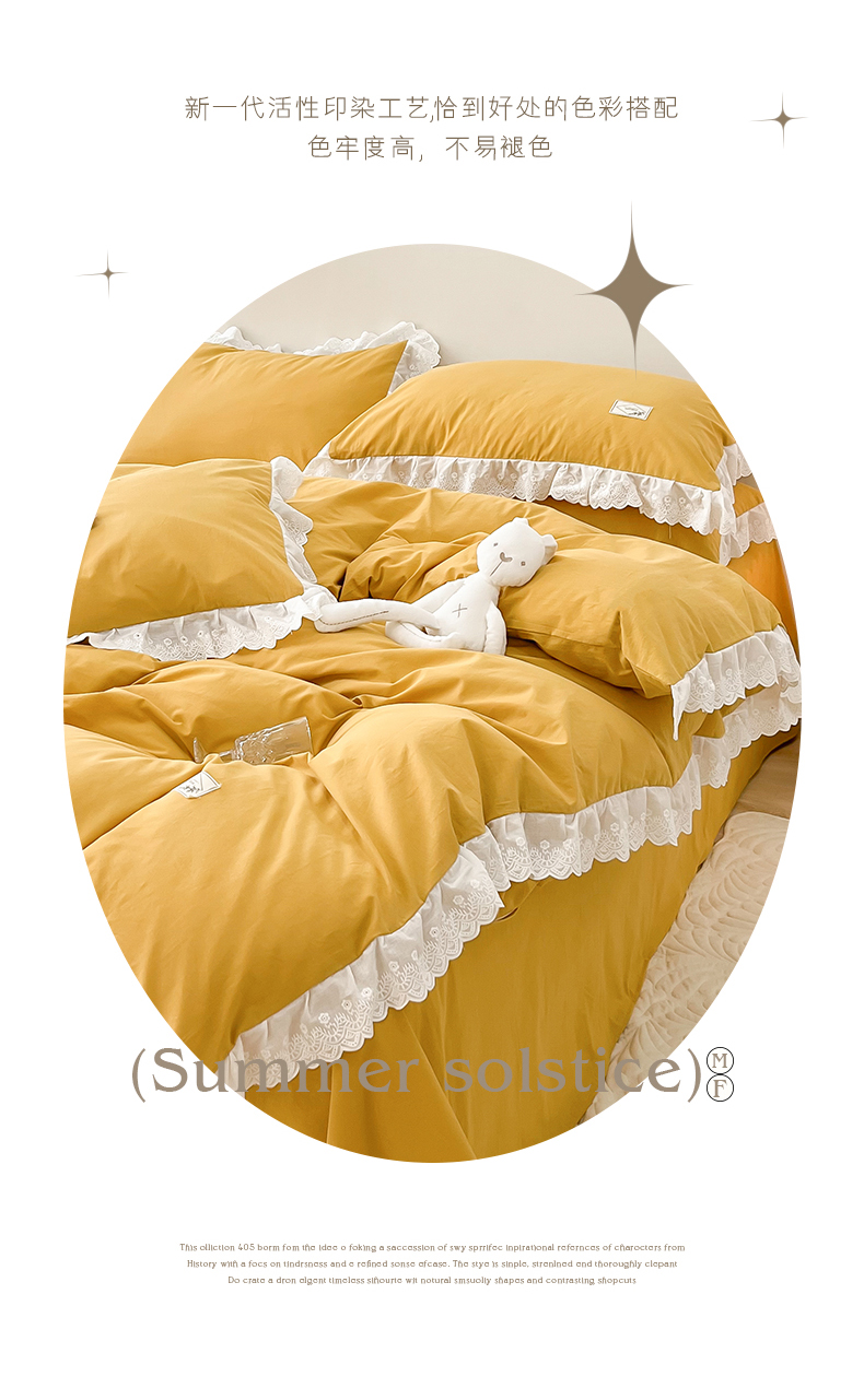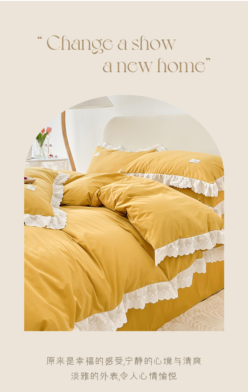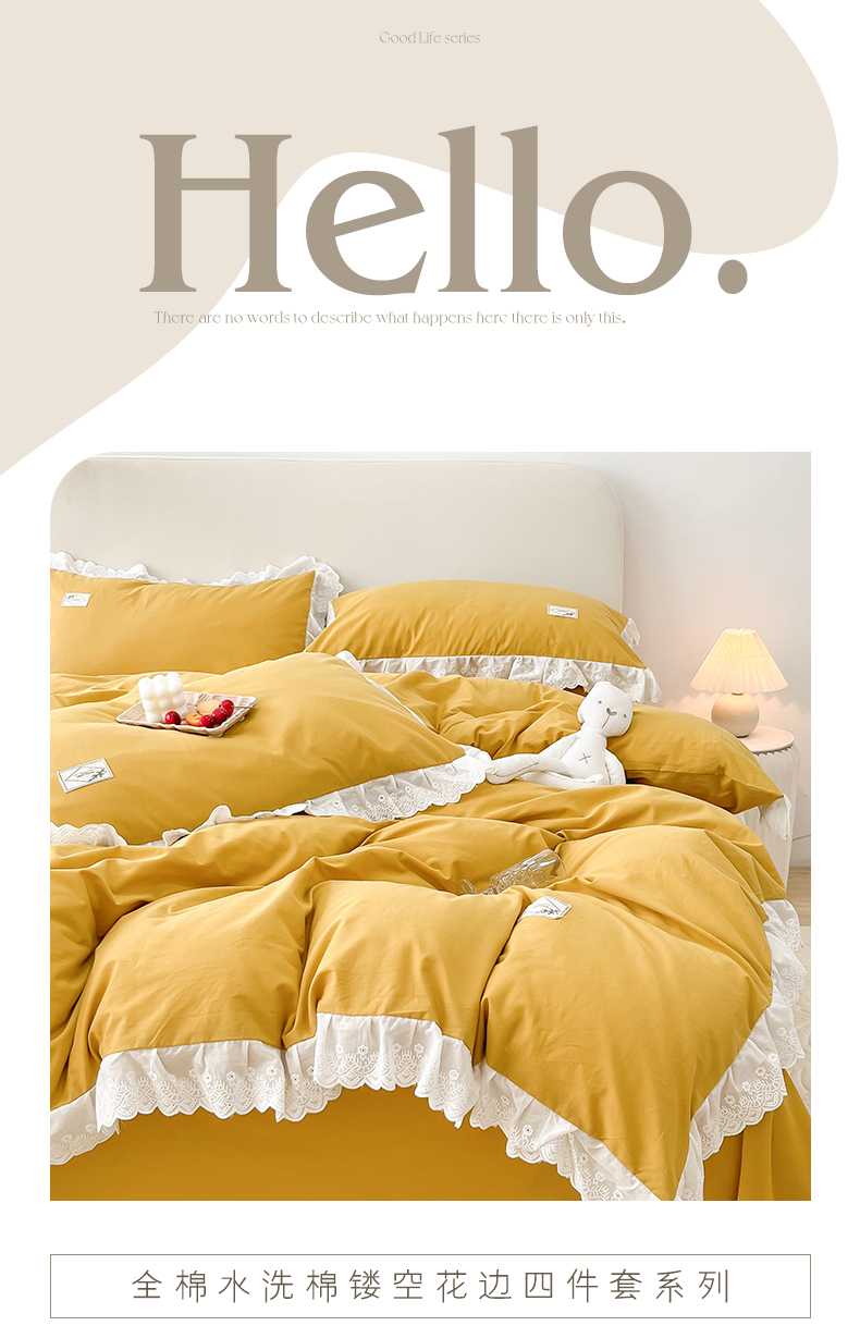 贝尔 PELLHOME 全棉水洗棉宽花边镂空刺绣四件套床单床笠场景一春节不打烊(可抖音代发) 麦穗黄