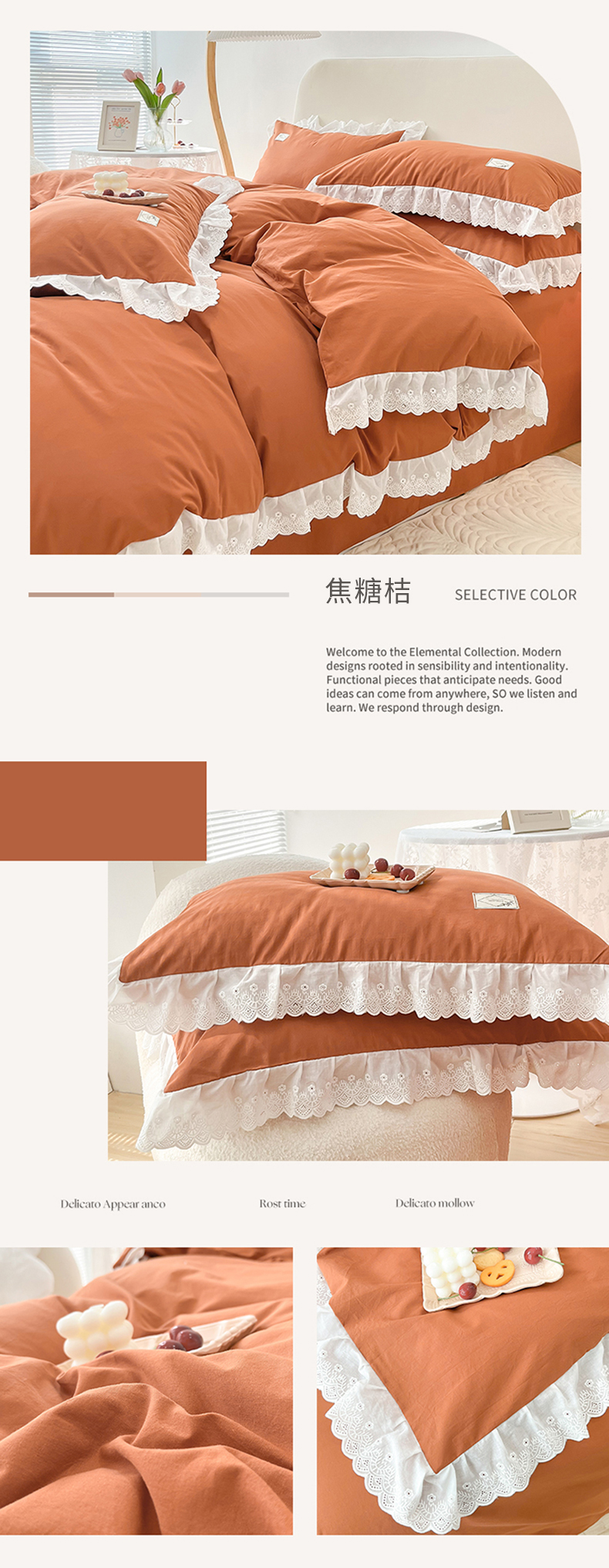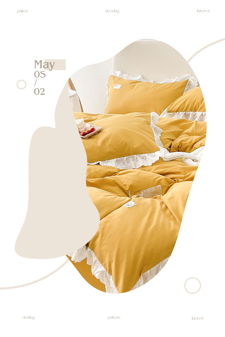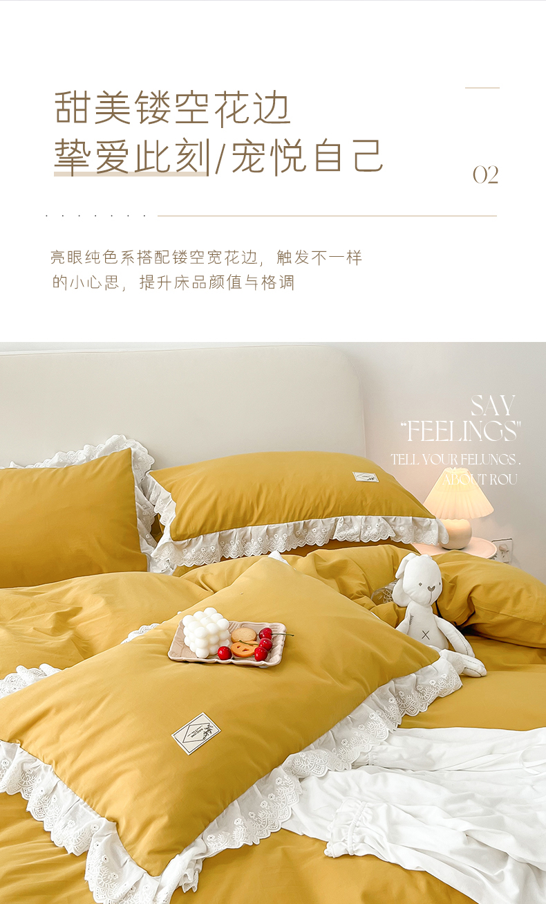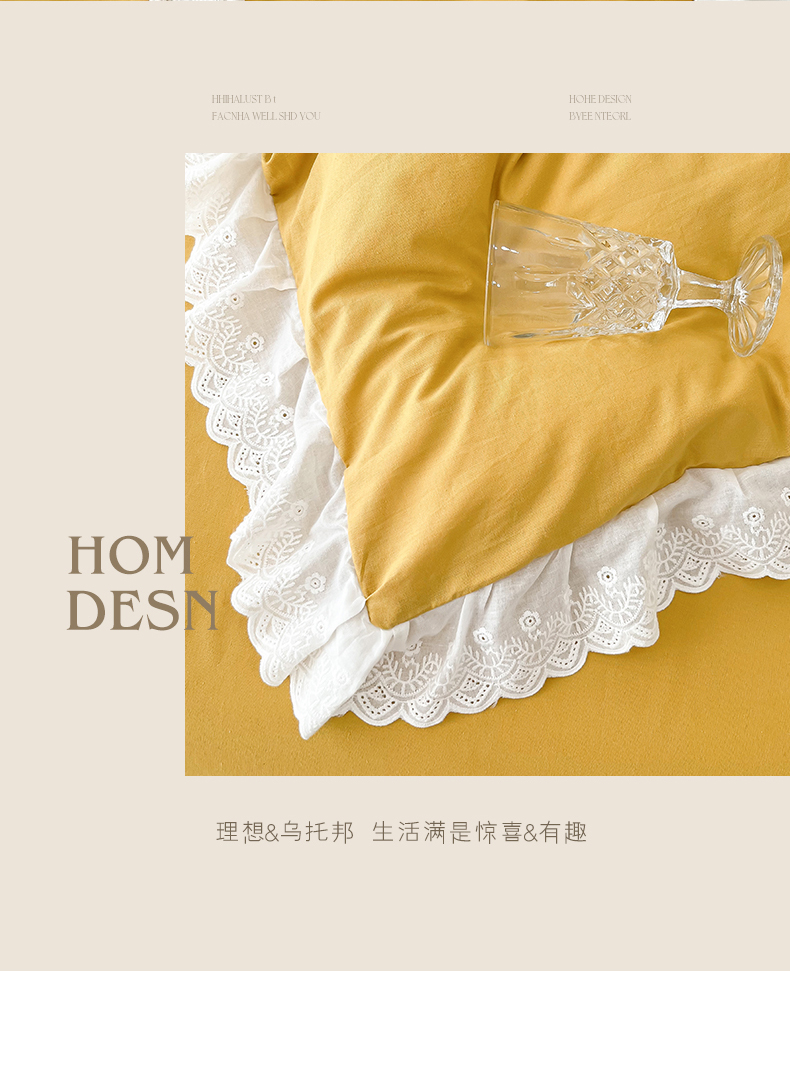 贝尔 PELLHOME 全棉水洗棉宽花边镂空刺绣四件套床单床笠场景一春节不打烊(可抖音代发) 麦穗黄