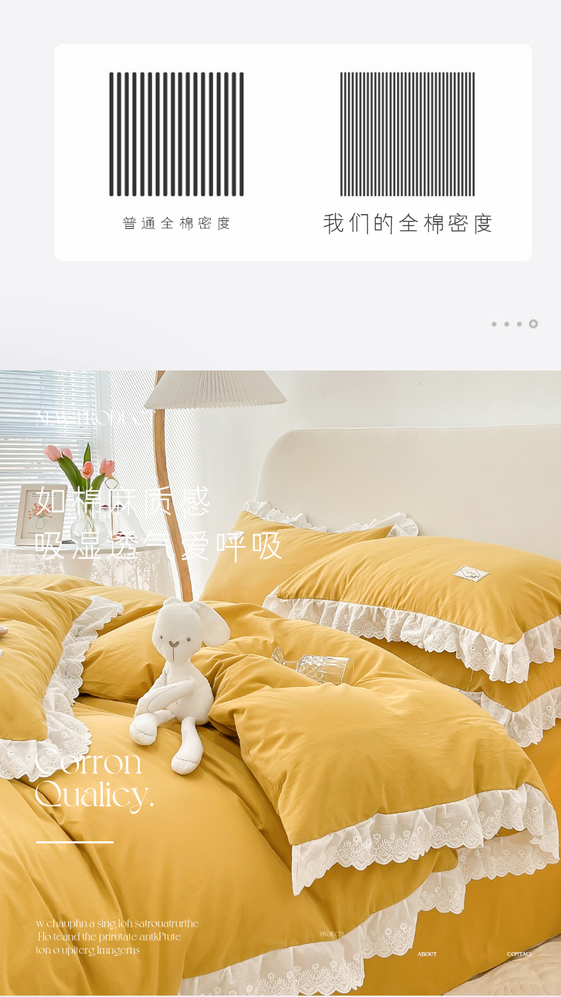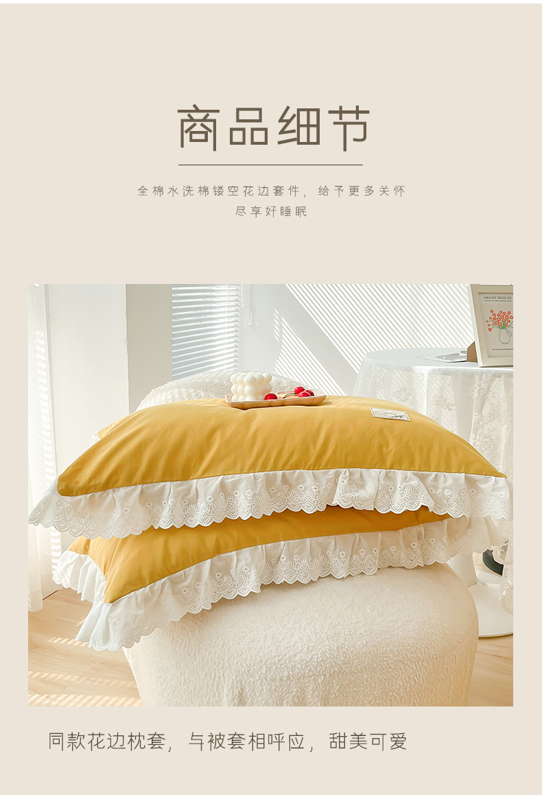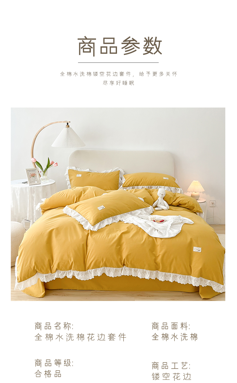 商品名称:贝尔 PELLHOME 全棉水洗棉宽花边镂空刺绣四件套床单床笠场景一春节不打烊(可抖音代发) 麦穗黄