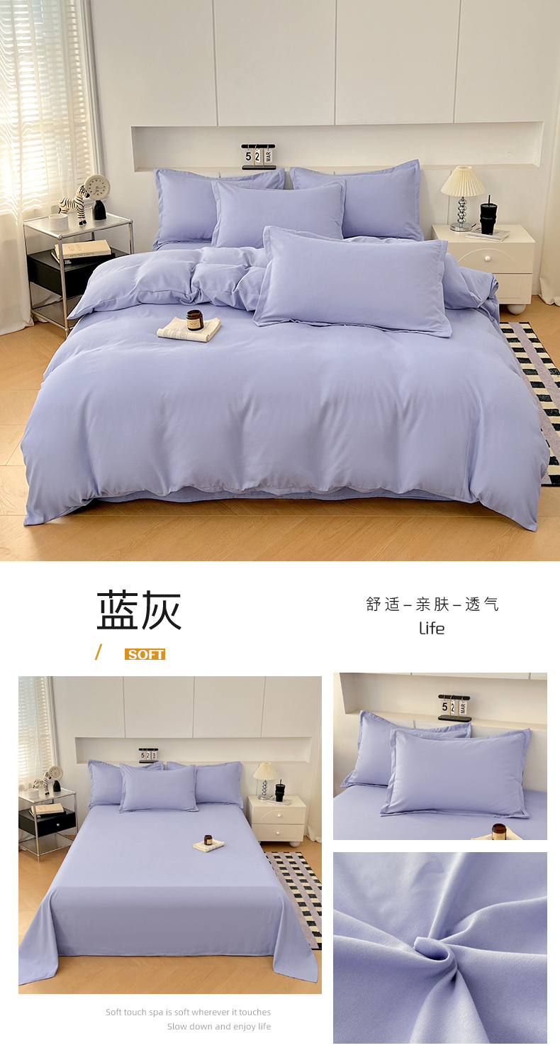 当前位置: 91家纺网 > 商品网购 > 床品套件 > 四件套 > 其它四件套 > 世爵 2025新款热款轻奢简约风高克重纯色140克水洗磨毛四件套 蓝灰
