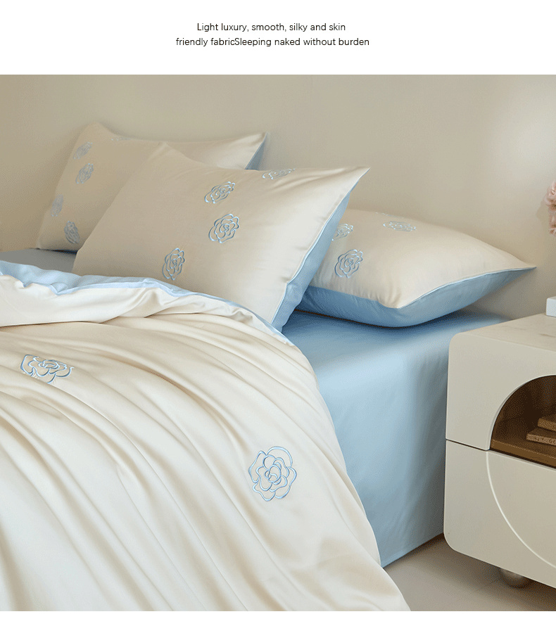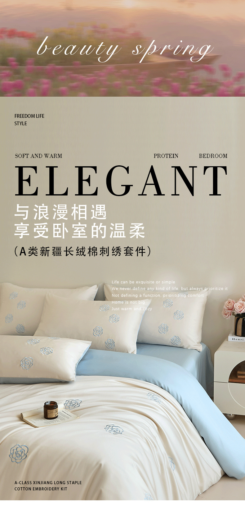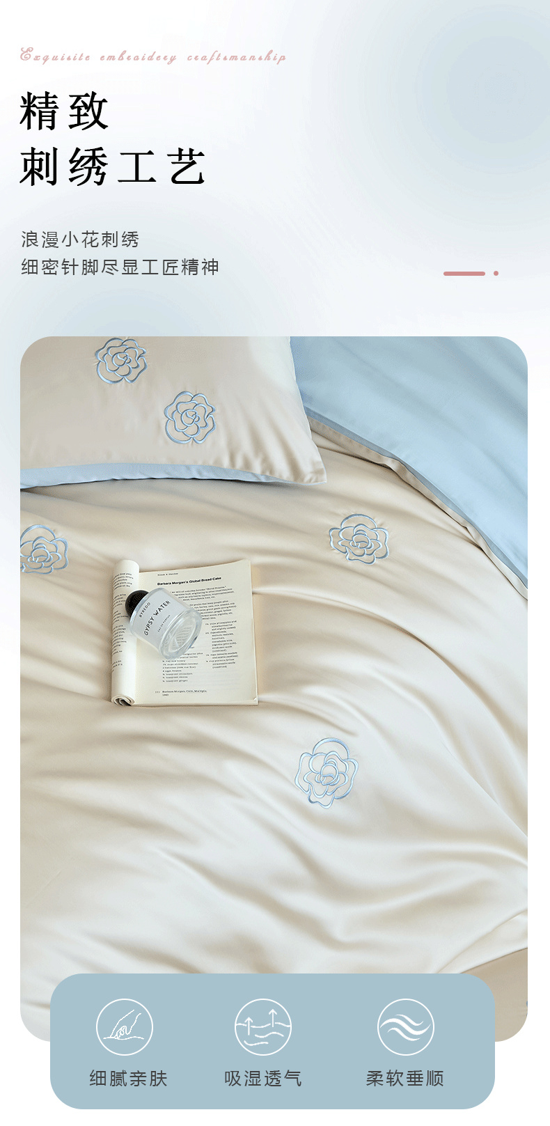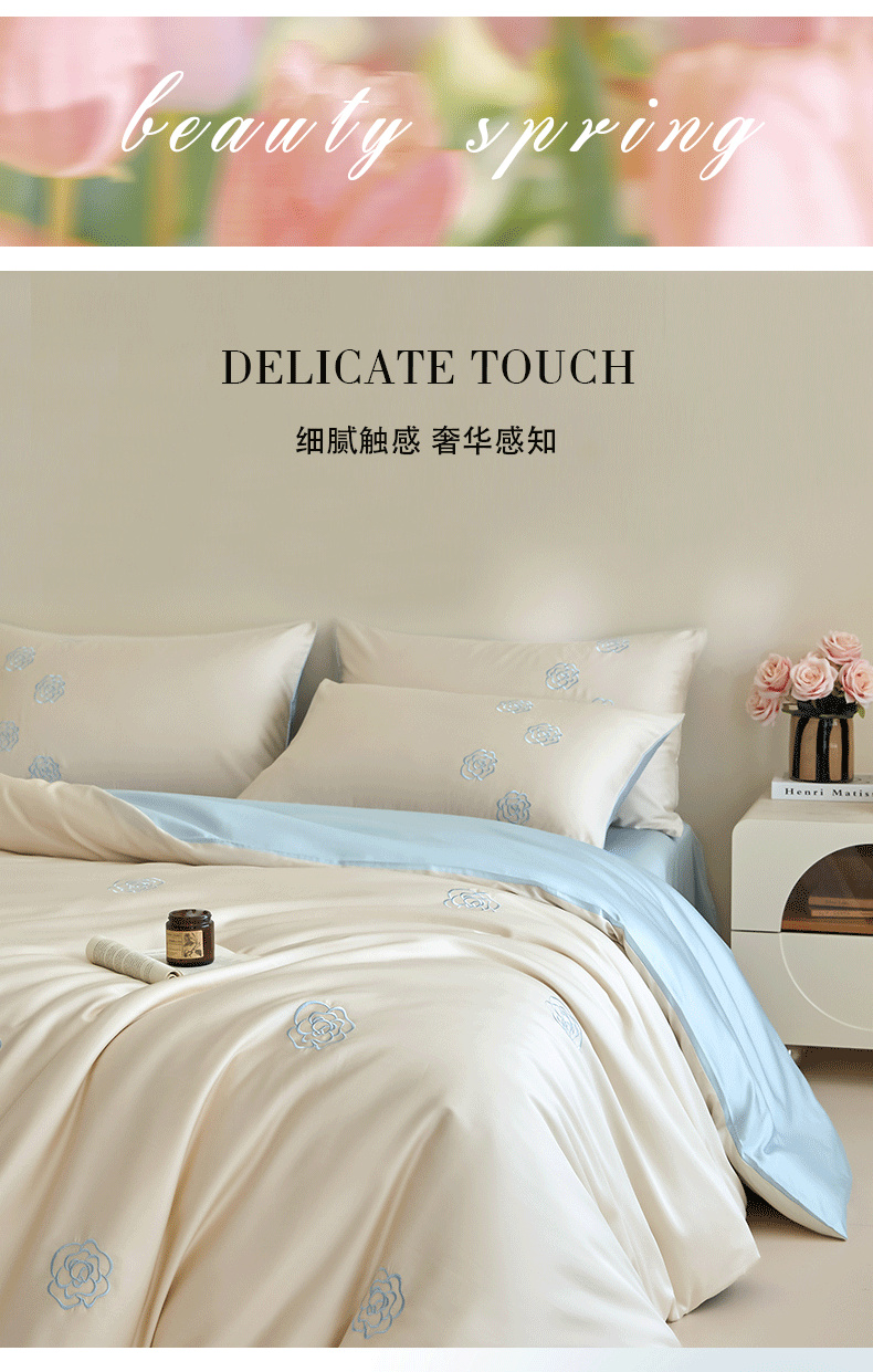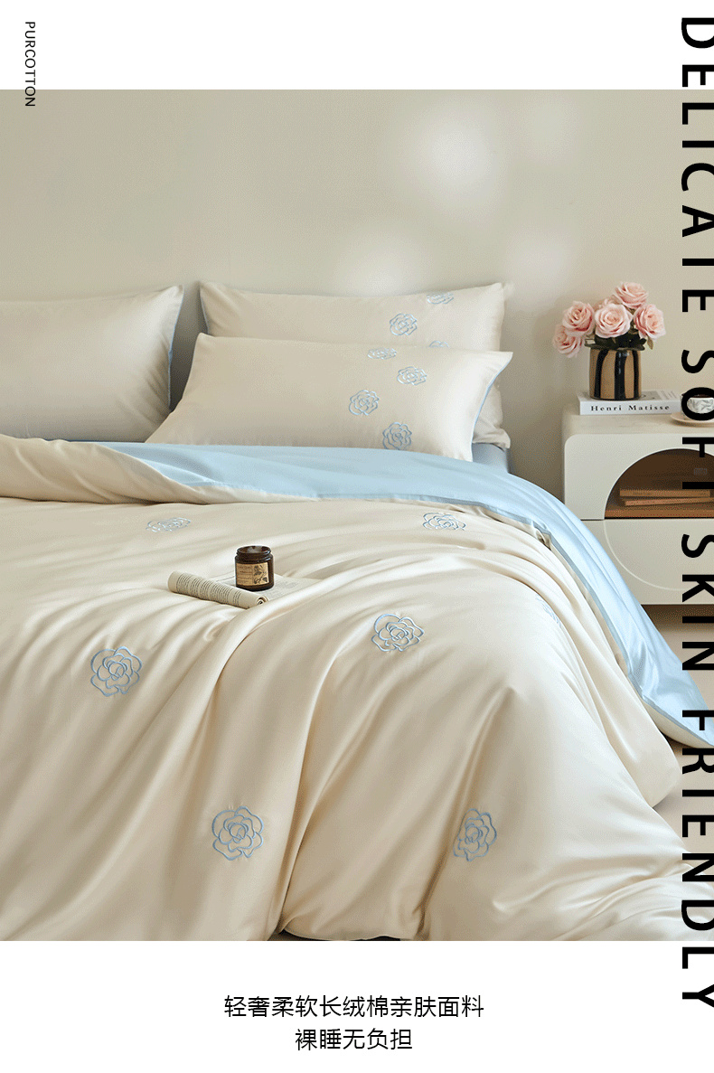 当前位置: 91家纺网 > 商品网购 > 床品套件 > 四件套 > 长绒棉四件套 > 618家纺 2025新款A类新疆长绒棉四件套--邂逅山茶 邂逅山茶蓝