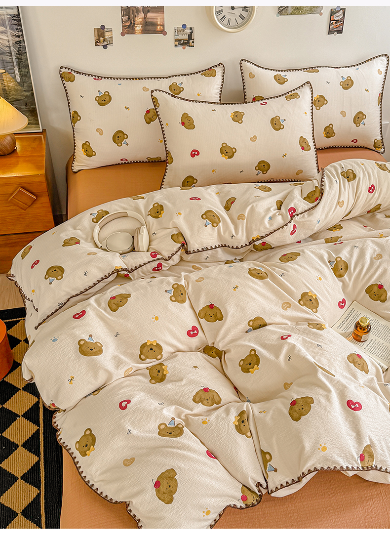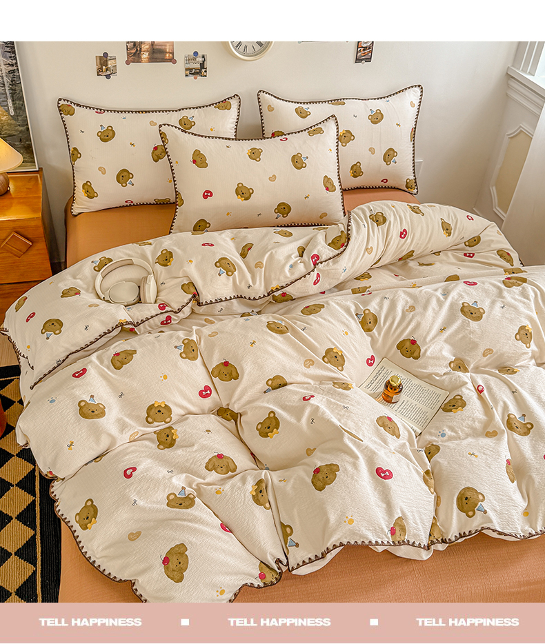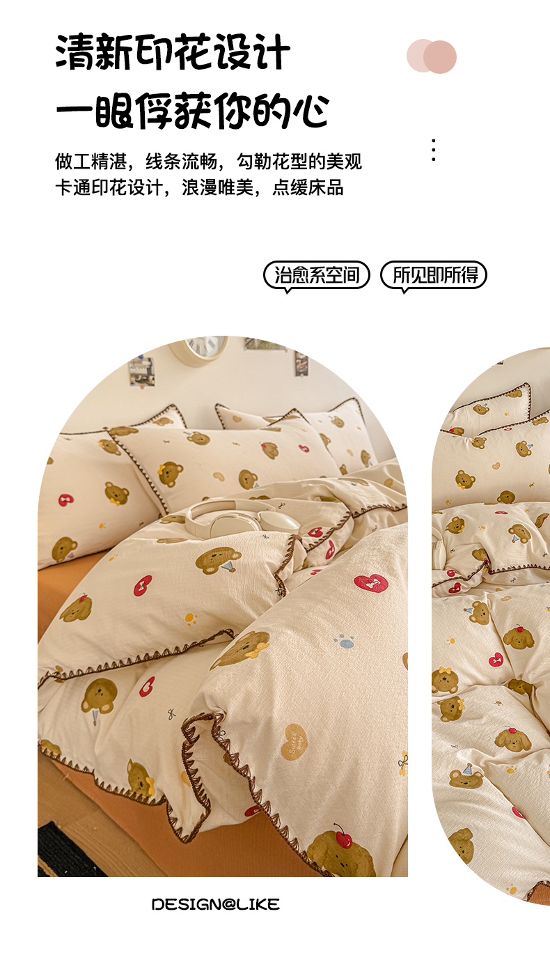 (总)晚爱家纺(原晚安家居) 2025新款超柔水洗棉四件套卡通小清新学生宿舍三件套,爱心熊,冰淇淋,波点咖,粉色猫咪,卡皮巴拉,腊肠狗,蓝色波点,萌宠,晚安熊,粉色狗狗,复古小熊,蝴蝶结,幸福狗狗,芝士碎,紫韵