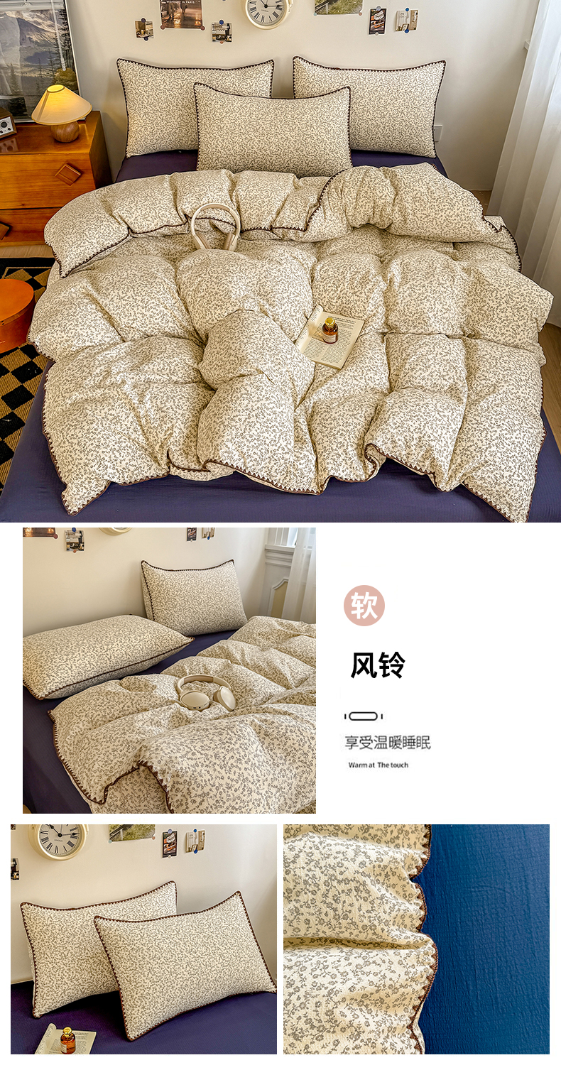 晚爱家纺(原晚安家居) 2025新款云感双层纱贝壳边三角针工艺卡通小清新小碎花四件套 爱如星辰