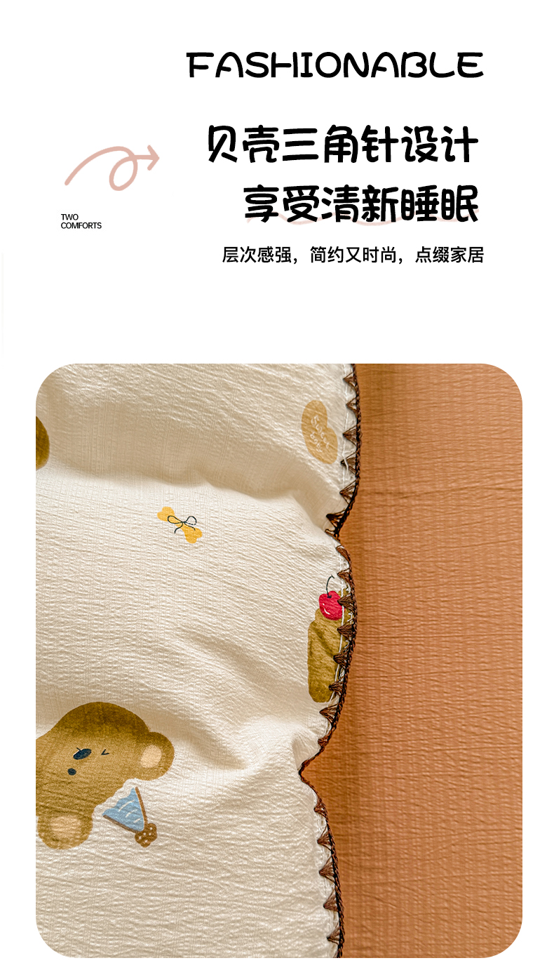 (总)晚爱家纺(原晚安家居) 2025新款云感双层纱贝壳边三角针工艺卡通小清新小碎花四件套,爱如星辰,波点黄,草莓甜心,粉色玫瑰,风铃,海象森林,花语蓝,兰亭序,蓝色蝴蝶结,玫瑰情书,奇妙小熊,倾心咖,小爱心,紫菊梗,紫色小兔