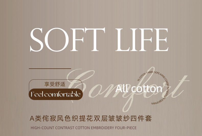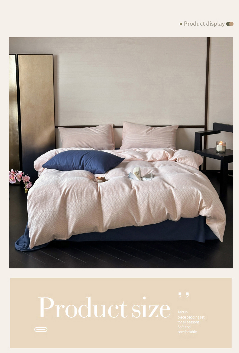 当前位置: 91家纺网 > 商品网购 > 床品套件 > 四件套 > 色织四件套 > (总)玛奇朵 2024新品韩国A类侘寂风色织提花双层皱皱纱四件套-流光溢彩系列