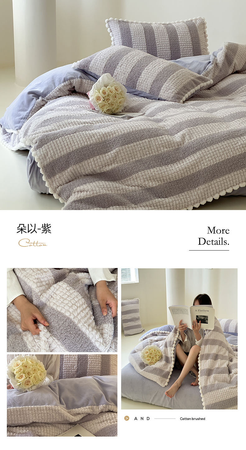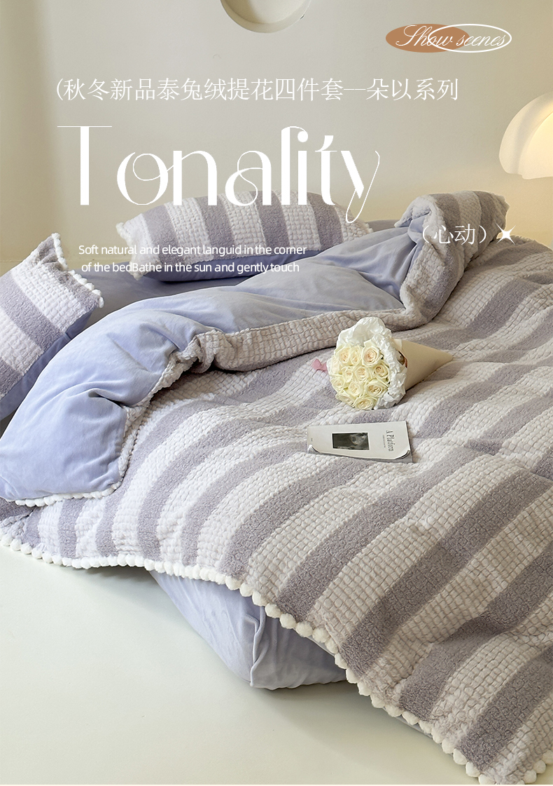 玛奇朵 2024秋冬新品泰兔绒提花四件套-朵以系列 朵以-紫