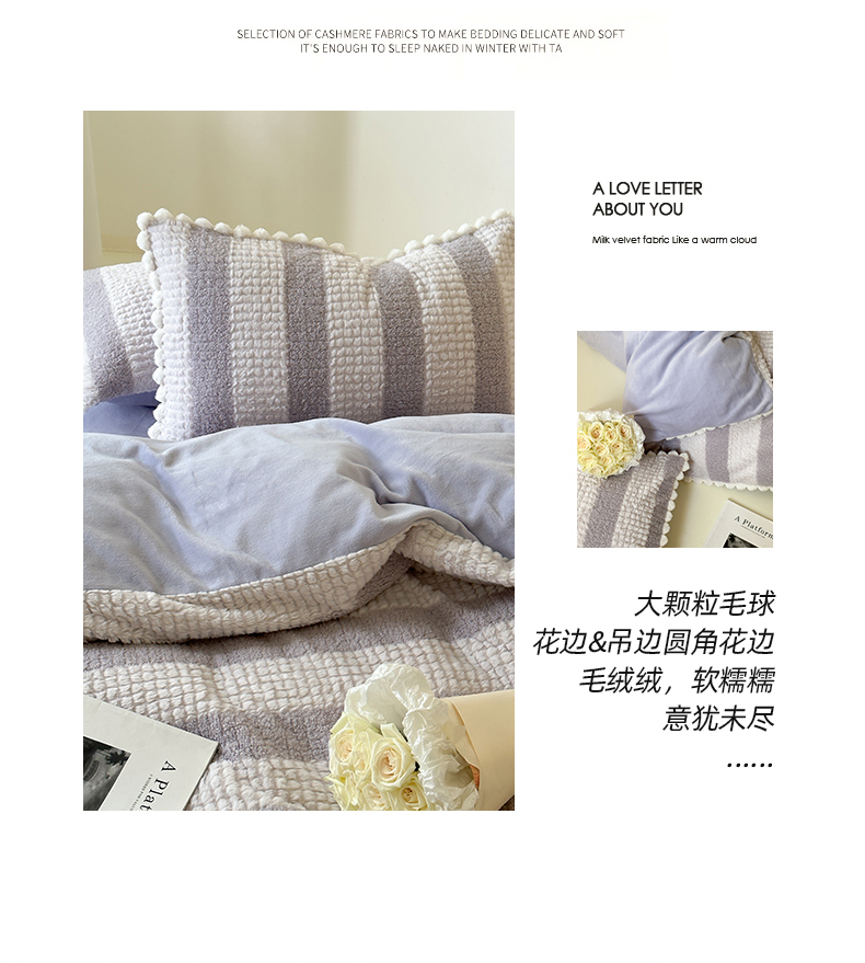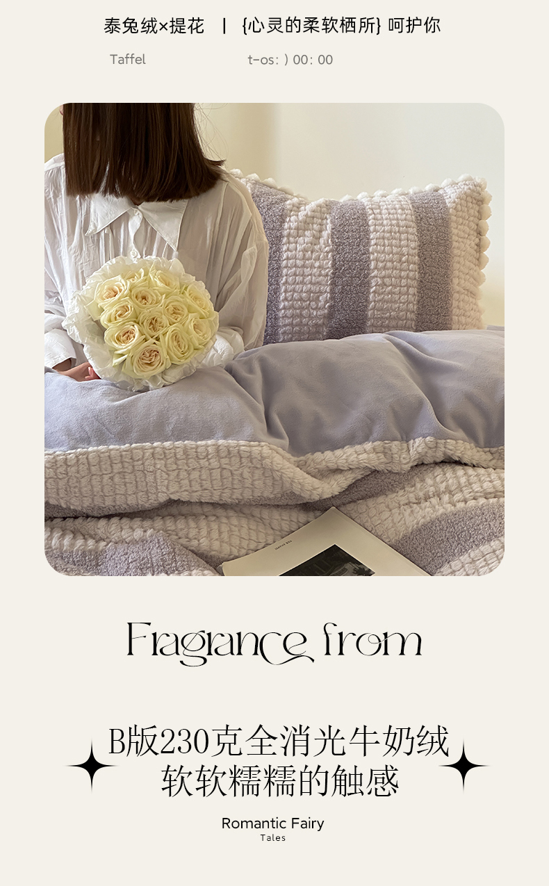 商品名称:玛奇朵 2024秋冬新品泰兔绒提花四件套-朵以系列 朵以-紫