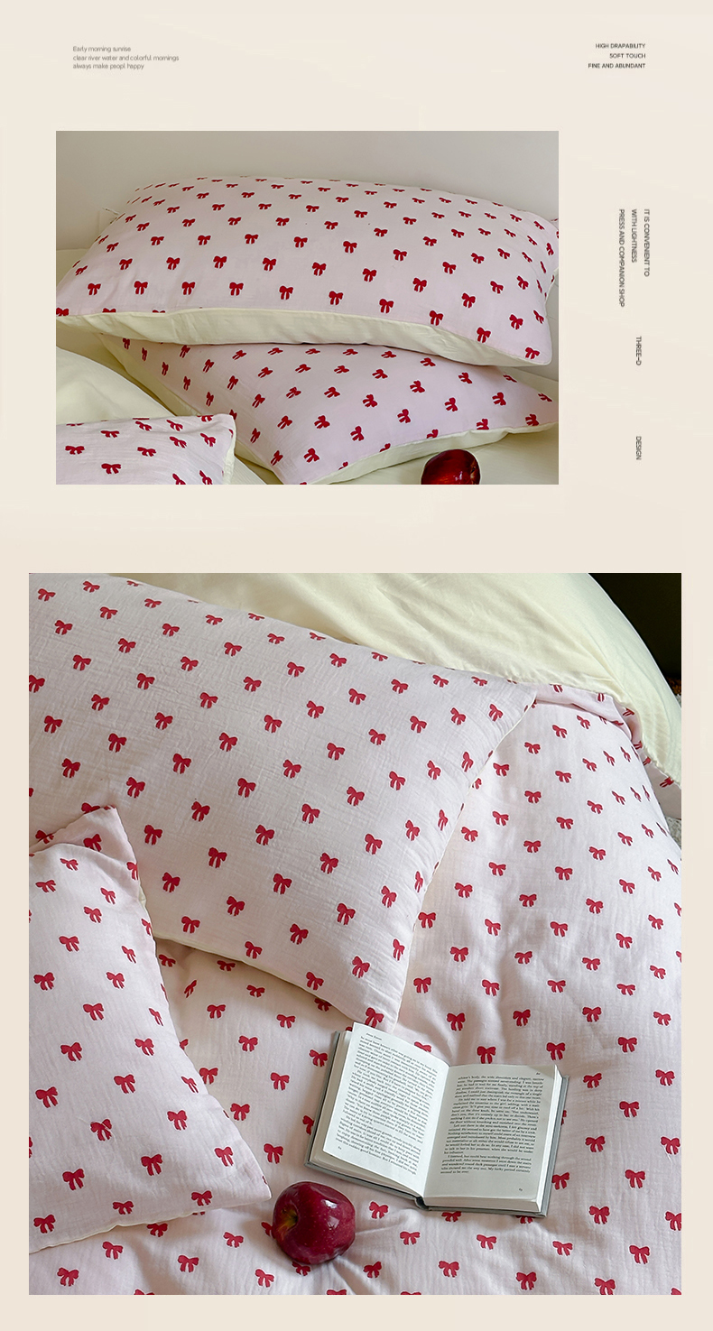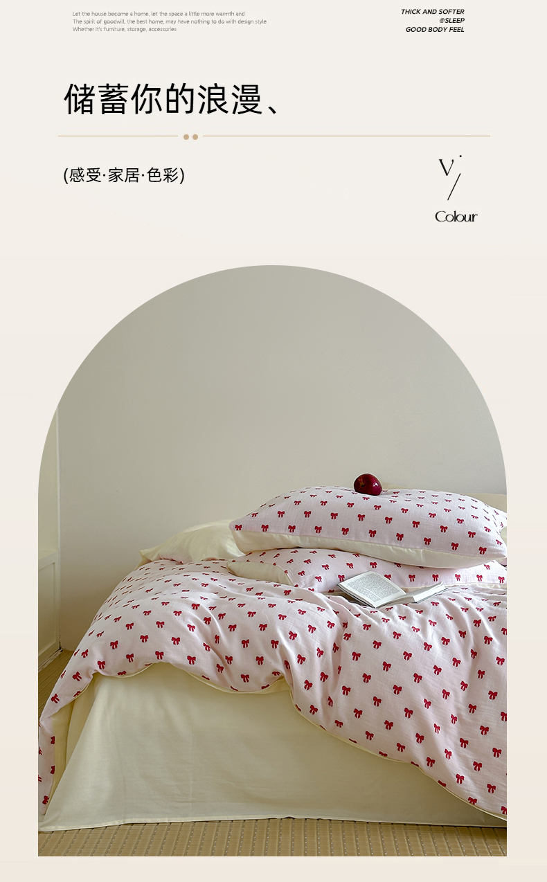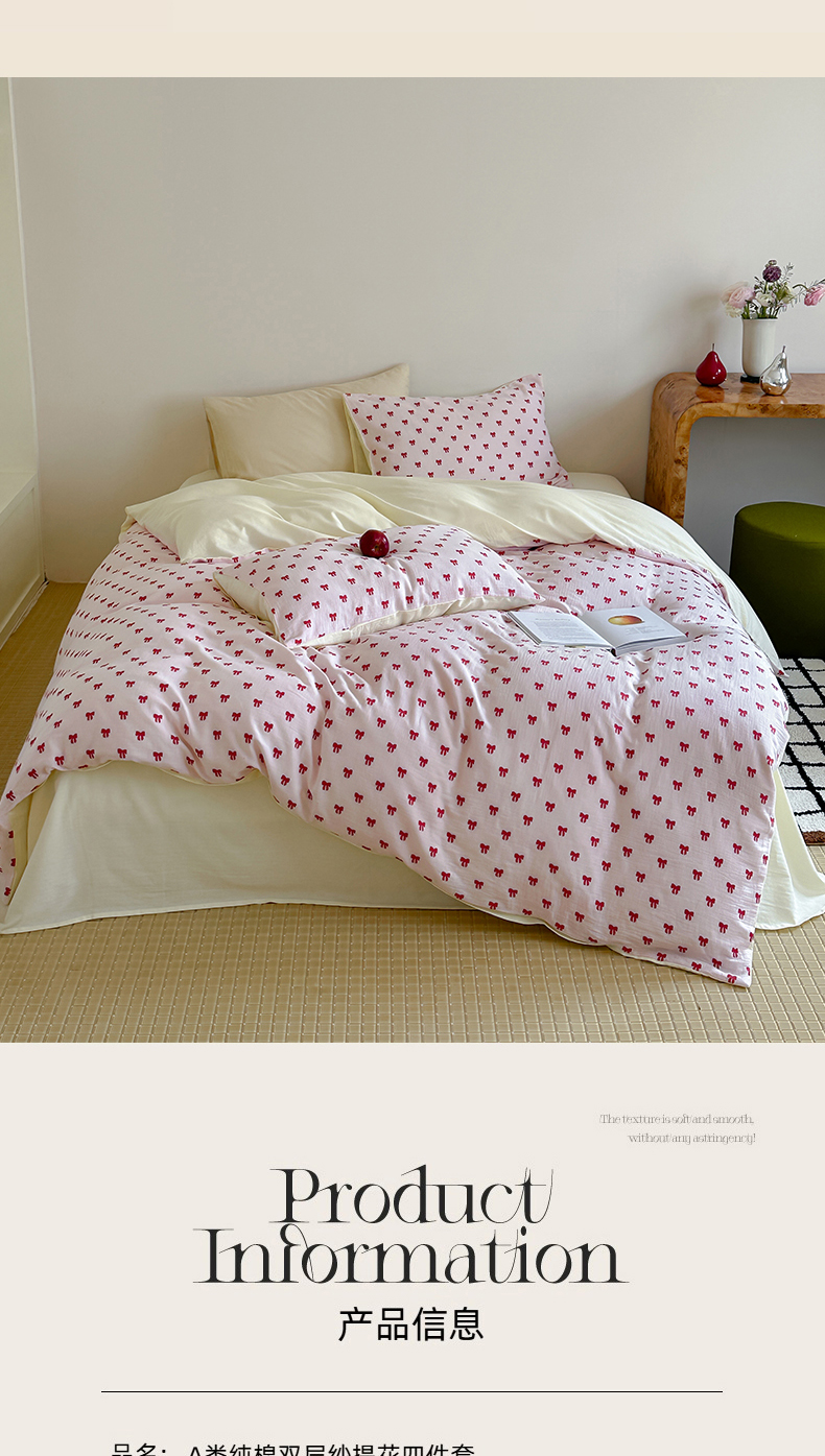 商品名称:玛奇朵 2025新款A类全棉双层纱提花四件套 莓莓奶糖