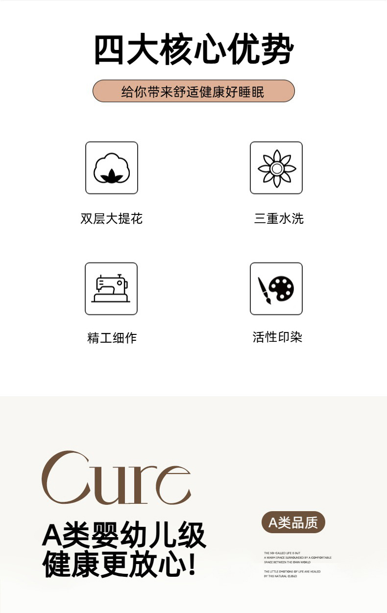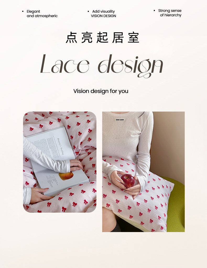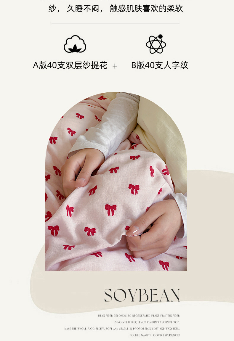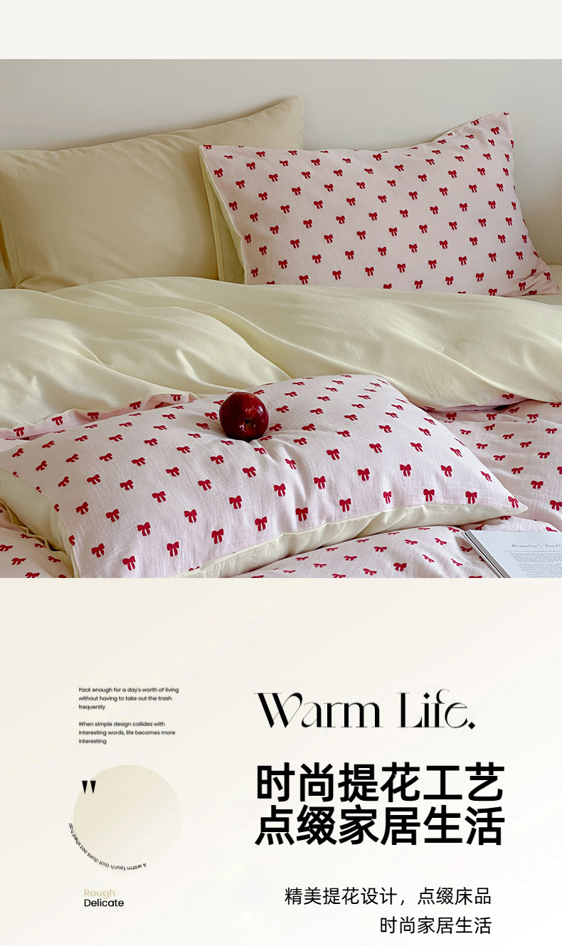 商品名称:玛奇朵 2025新款A类全棉双层纱提花四件套 莓莓奶糖
